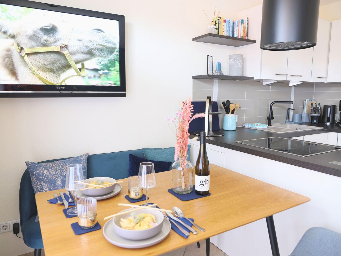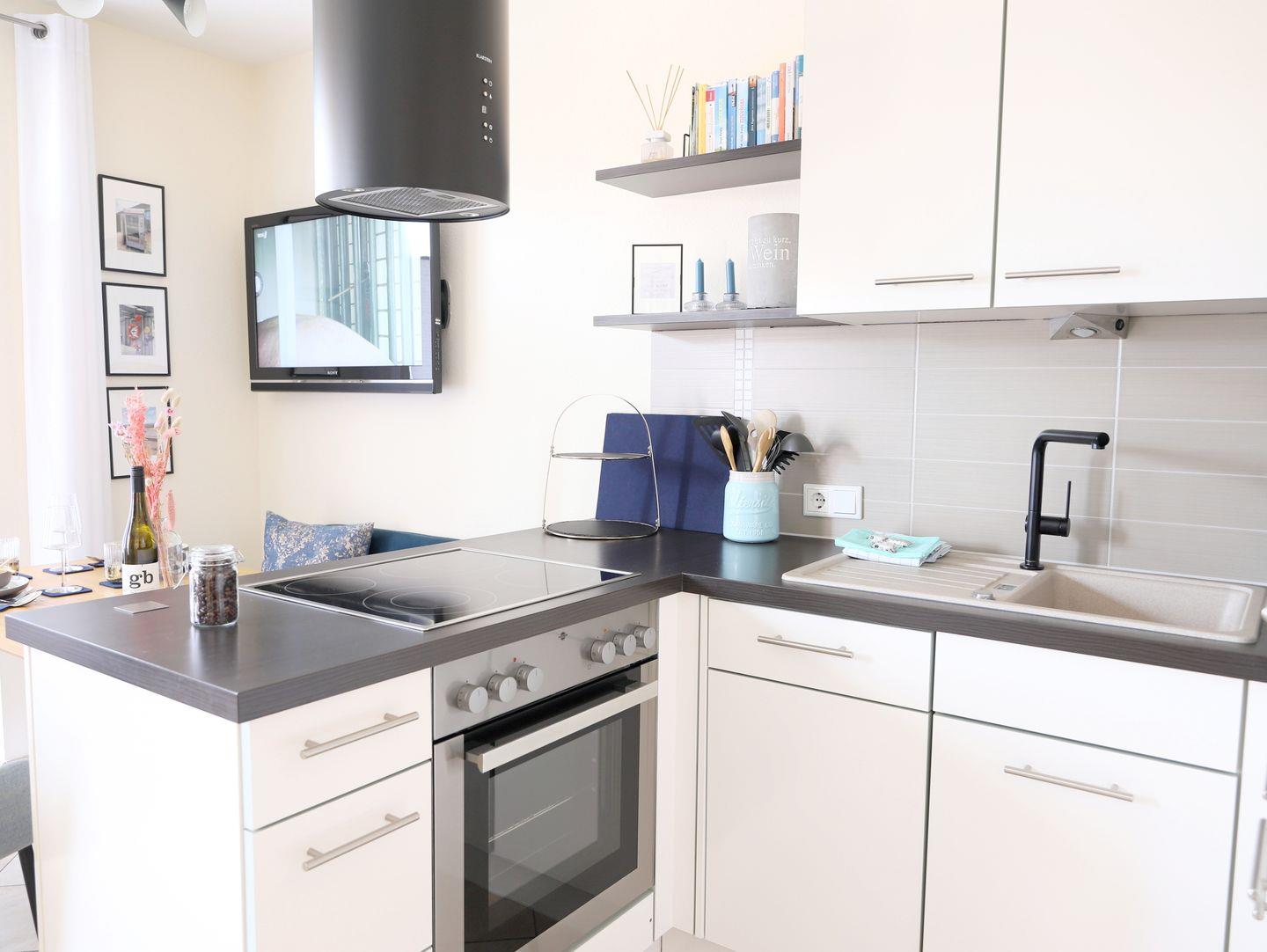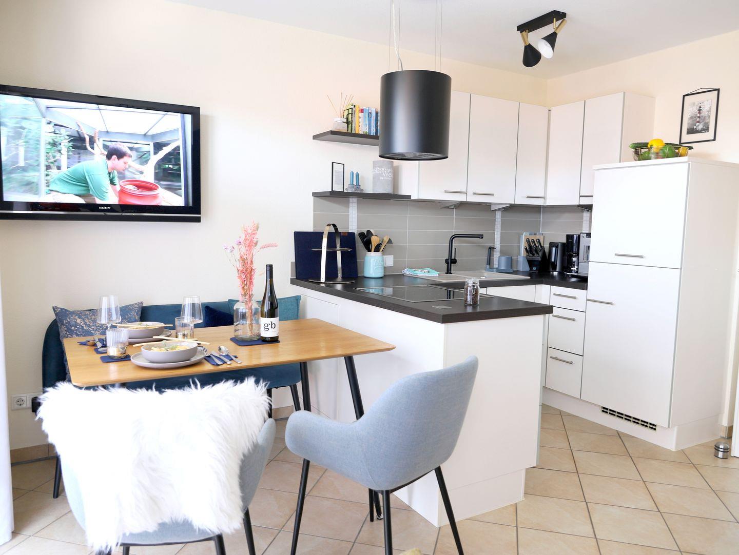 Erleben Sie erholsame Tage in dieser modernen 2-Zimmer-Ferienwohnung in Rantum, Sylt, nur wenige Gehminuten vom Weststrand entfernt. Die helle Wohnung bietet auf ca. 40 m² Platz für bis zu 2 Personen und besticht durch eine stilvolle Einrichtung. Im offenen Wohn-/Essbereich mit gemütlicher Sitzgruppe und Esstisch lädt die Küchenzeile zum Kochen ein. Das Schlafzimmer mit Boxspringbett (160 x 200 cm) sorgt für erholsamen Schlaf. Das elegante Duschbad ist mit einer Walk-In-Regendusche und WC ausgestattet. Auf dem sonnigen Westbalkon können Sie die frische Meeresluft genießen. Ein kostenfreier Parkplatz direkt vor dem Haus sowie WLAN-Anschluss stehen Ihnen zur Verfügung. Fahrradständer befinden sich am Haus; ein Stellplatz für Fahrräder kann jedoch nicht garantiert werden. Der nächste Supermarkt ist ca. 15 Gehminuten entfernt.