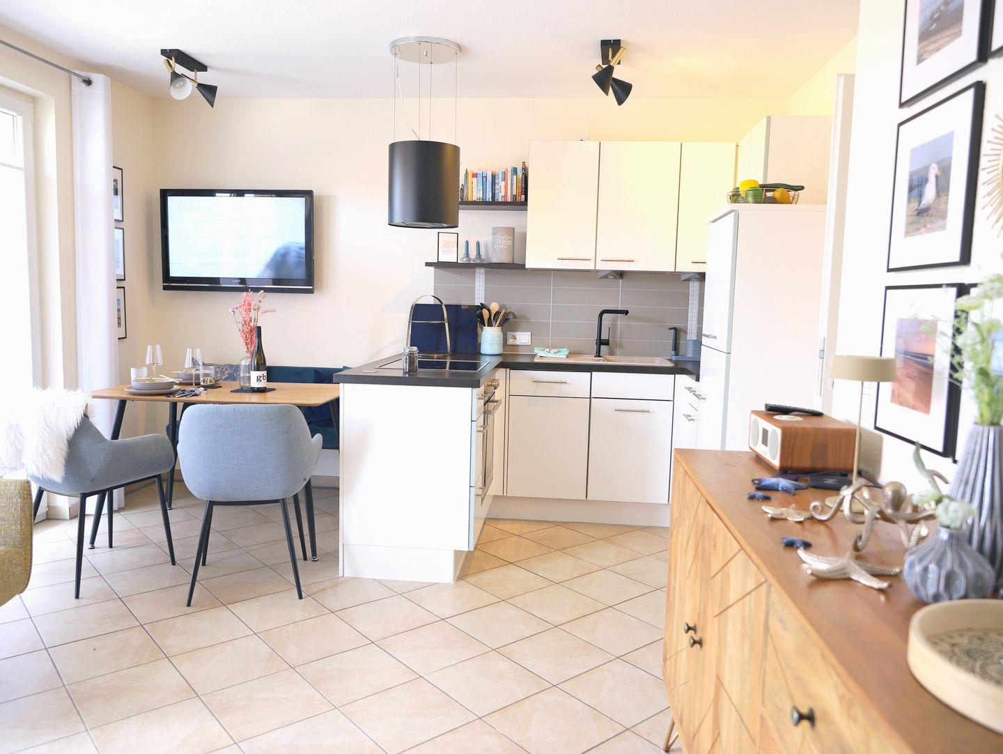 Nur wenige Meter vom Weststrand entfernt liegt diese helle 2-Zimmer-Ferienwohnung in der 1. Etage mit Westbalkon. Modern eingerichtet mit offenem Wohn-/Essbereich, einer praktischen Küchenzeile und einem komfortablen Boxspringbett im Schlafzimmer. Parkplatz direkt am Haus vorhanden, WLAN inklusive.
