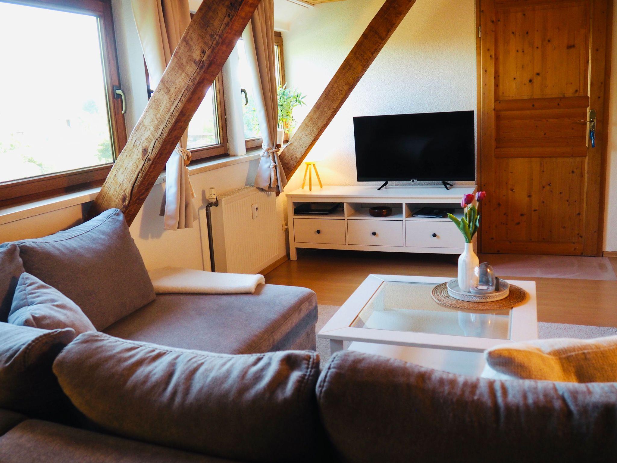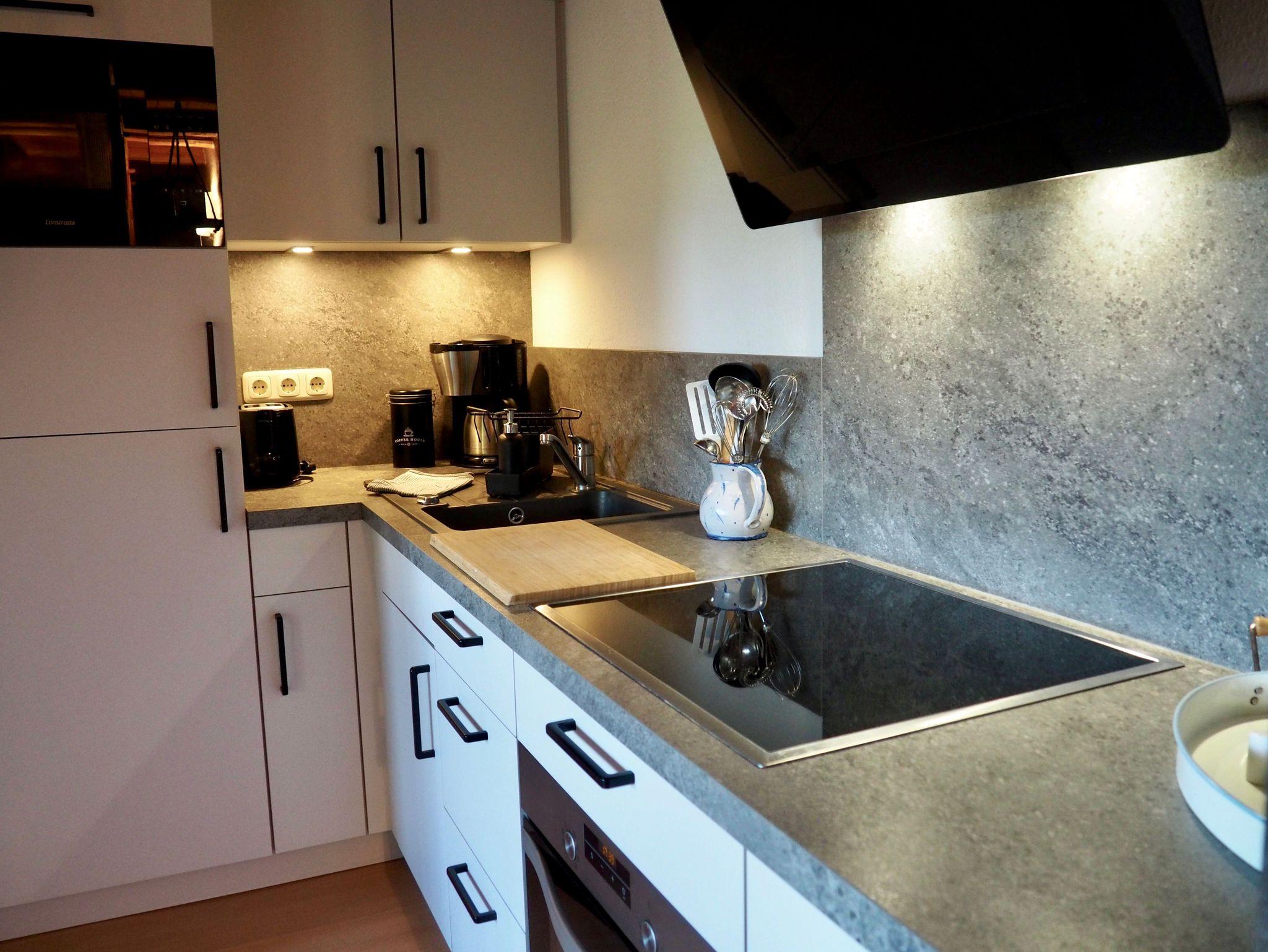 Freuen Sie sich auf ein gemütliches Wohnzimmer mit offener, gut ausgestatteter Küche und einem einladenden Essbereich für bis zu vier Personen ? ideal für gemeinsame Mahlzeiten und entspannte Abende.