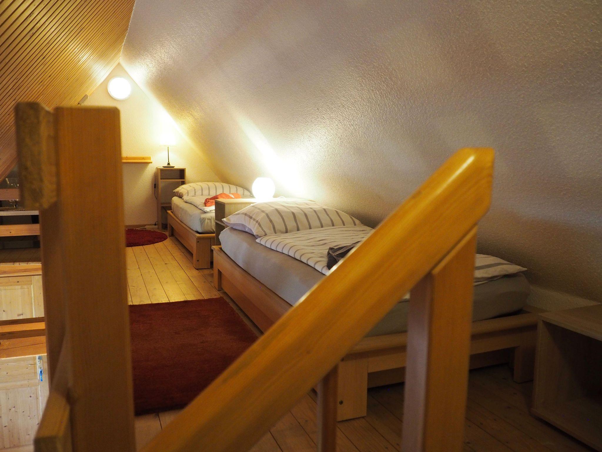 Ein behagliches Schlafzimmer mit komfortablem Doppelbett sorgt für erholsame Nächte. In der offenen Galerie im Dachgeschoss befinden sich zwei weitere Einzelbetten ? ein Lieblingsplatz besonders für Kinder oder junge Gäste.