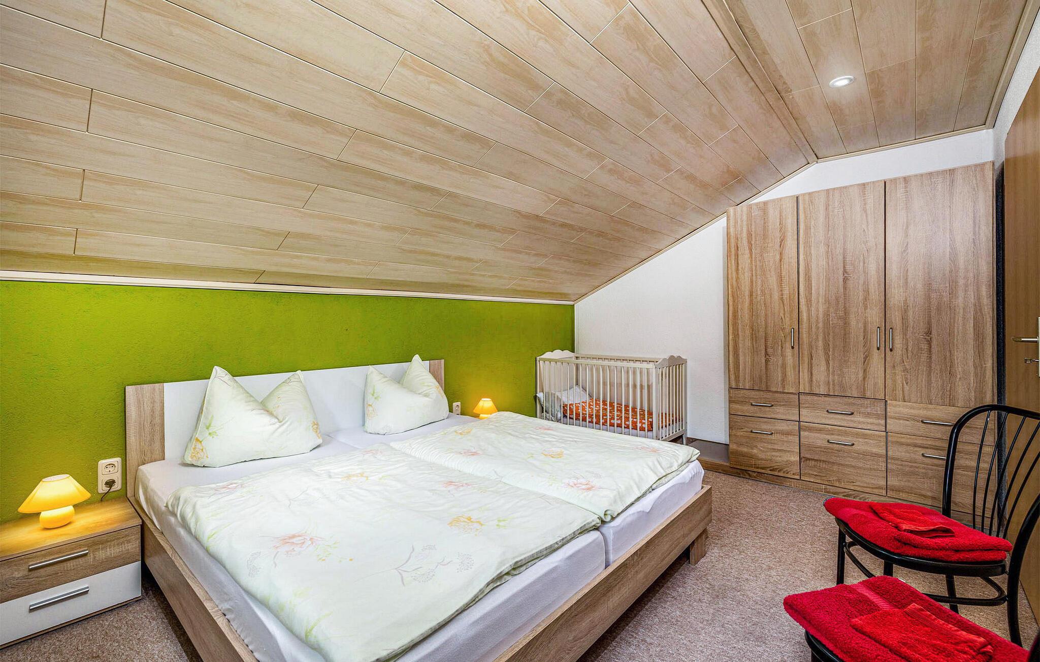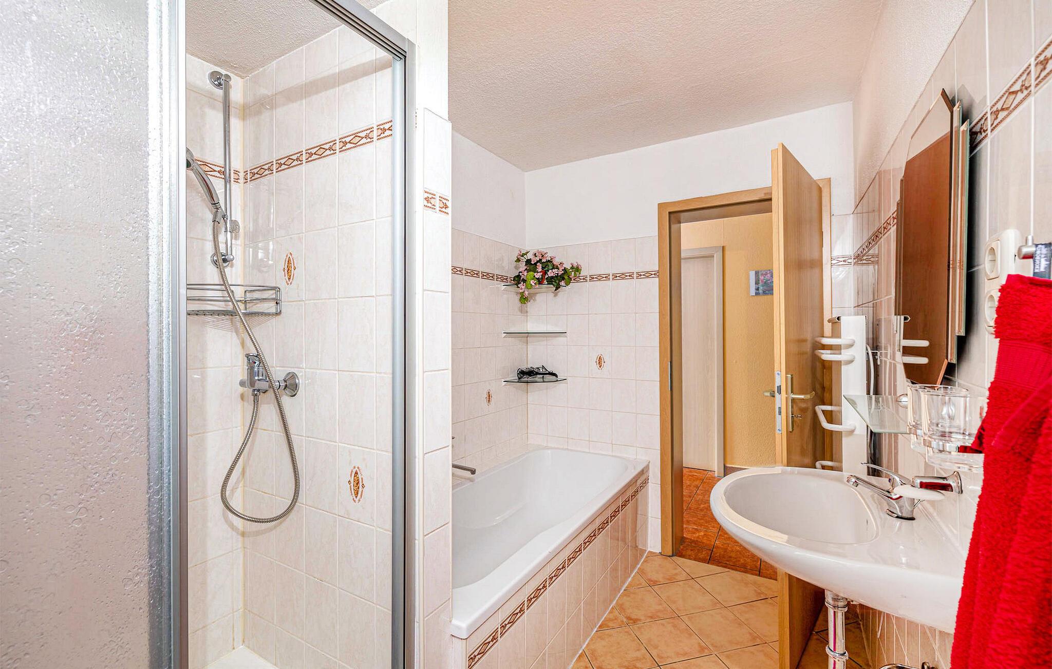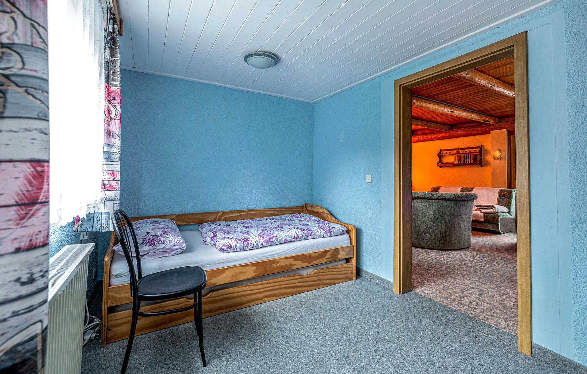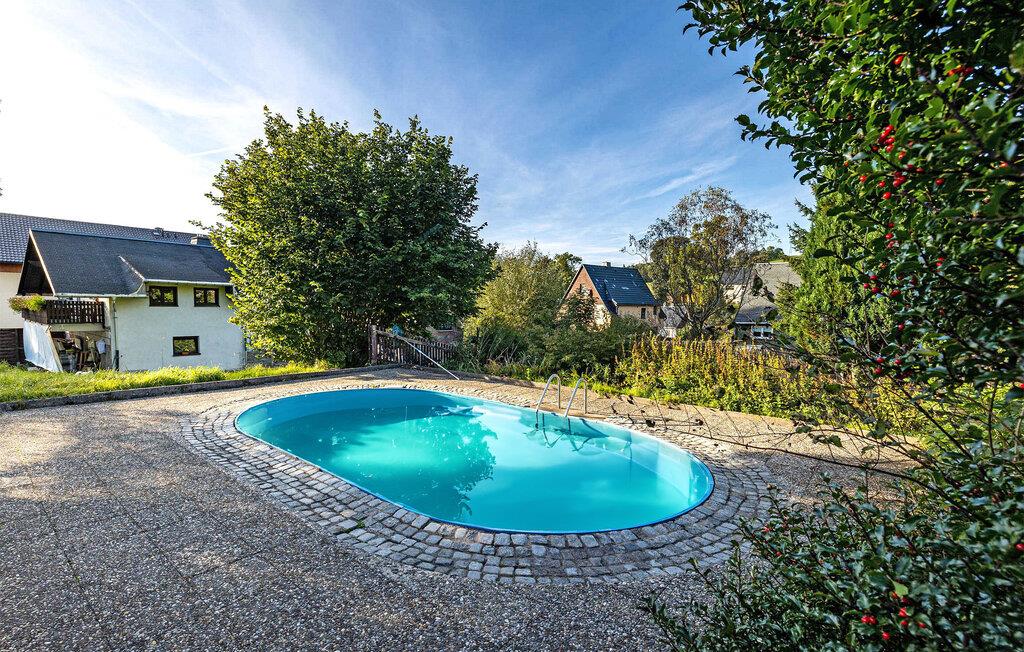 Sommerhuset, der er moderniseret i 2016, ligger separat på ejerens 2.500 kvadratmeter store boligejendom i udkanten af byen. Det er udstyret med en stue (polstrede møbler, fladskærms-tv, radio/cd, dvd, pejs), 2 soveværelser (1 x dobbeltseng, 1 x trilleseng til to personer), køkken (elkomfur med ovn, køleskab med fryser, Mikroovn, opvaskemaskine, diverse køkkenmaskiner), badeværelse med bruser, badekar og hårtørrer samt elvarme. En barneseng og høj stol kan stilles til rådighed for små børn. Tilgængelig: WiFi, balkon eller opholdsområde på ejendommen, udendørs pool, grill, liggestole, cykelrum og parkeringsplads. Den samlede pris inkluderer sengelinned, håndklæder, slutrengøring og vandforbrug. El/energi vil blive faktureret lokalt baseret på forbrug. Markersbach er en kommune i Erzgebirge, cirka 20 km nord for kurstedet Oberwiesenthal. Adskillige grænseovergange til nabolandet Tjekkiet ligger også omkring 20 km væk. Stedet er kendt for sin "Matchstick Bridge", en 40 m høj jernbanebro lavet af en massiv stålkonstruktion, der kan rejses over på en spændende måde med damplokomotiver. Markersbach er også hjemsted for et af de største pumpekraftværker i Europa. Ture gennem det imponerende anlæg glæder ikke kun teknologifans. Der er adskillige langrendsløjper og alpinbakker med lifter til rådighed for vintersportsentusiaster. Udstyret kan nemt lejes på stedet.