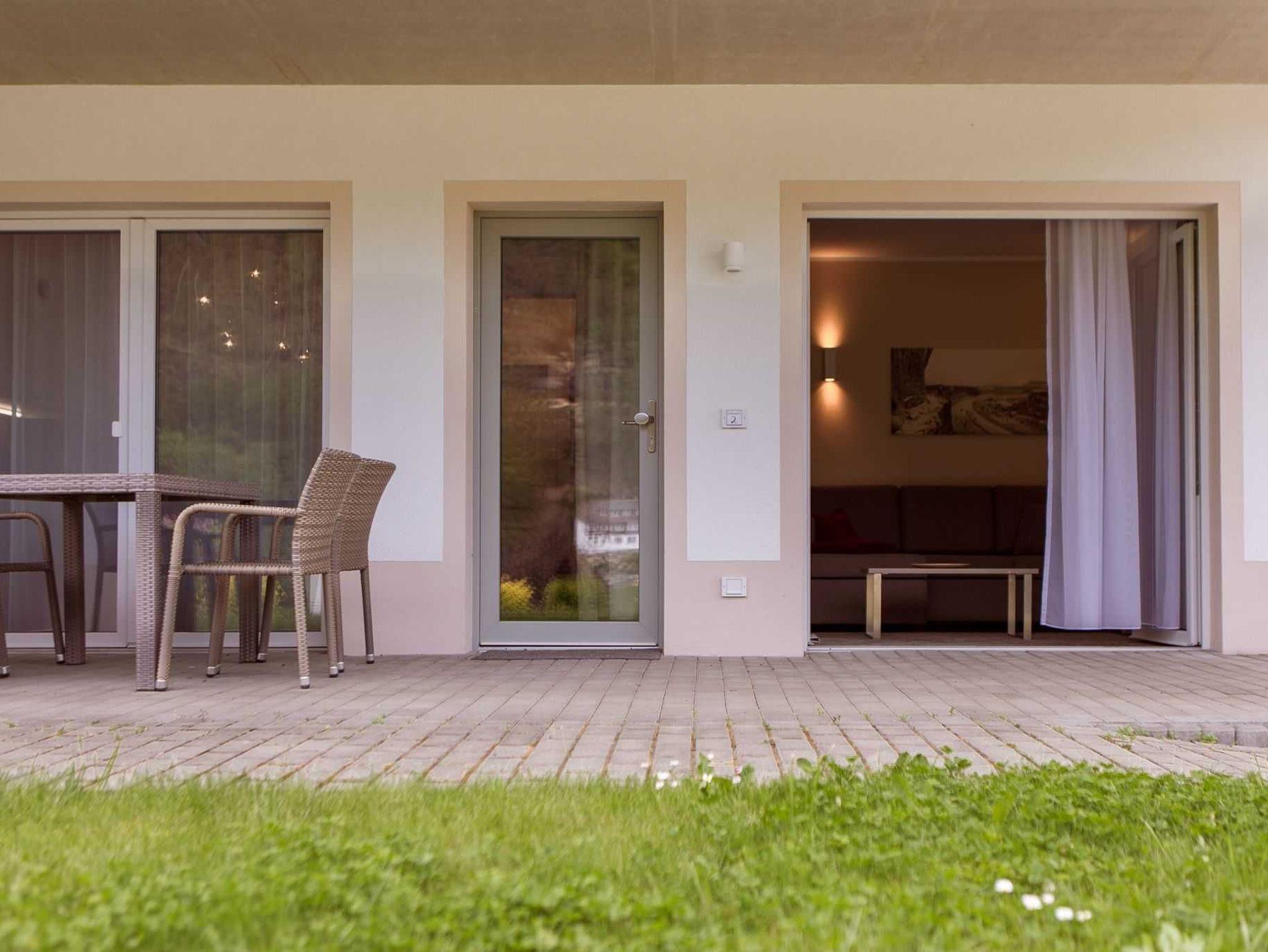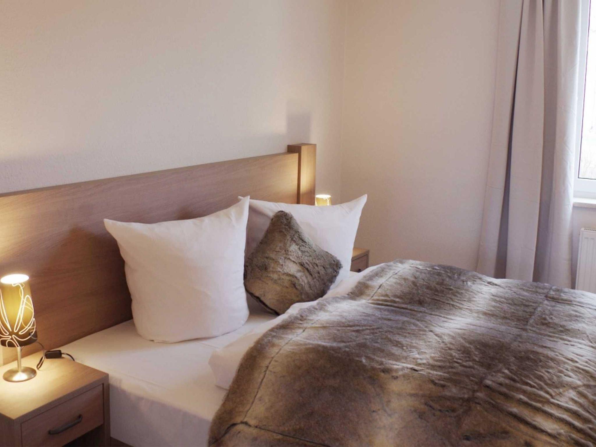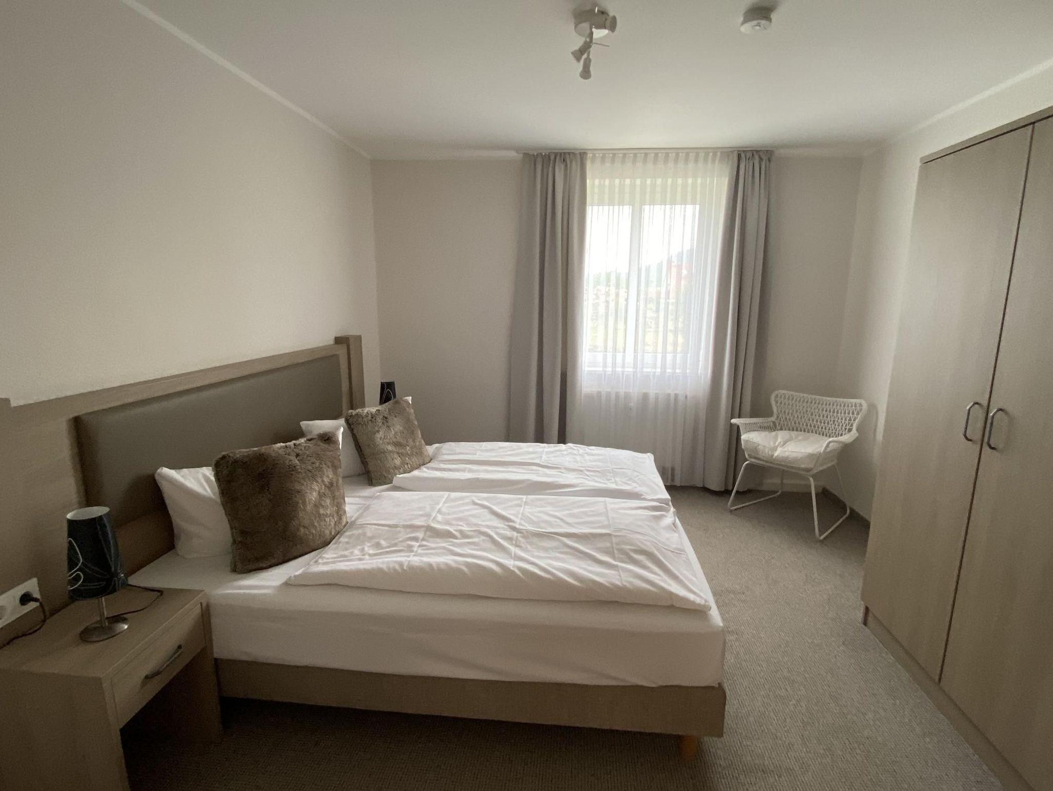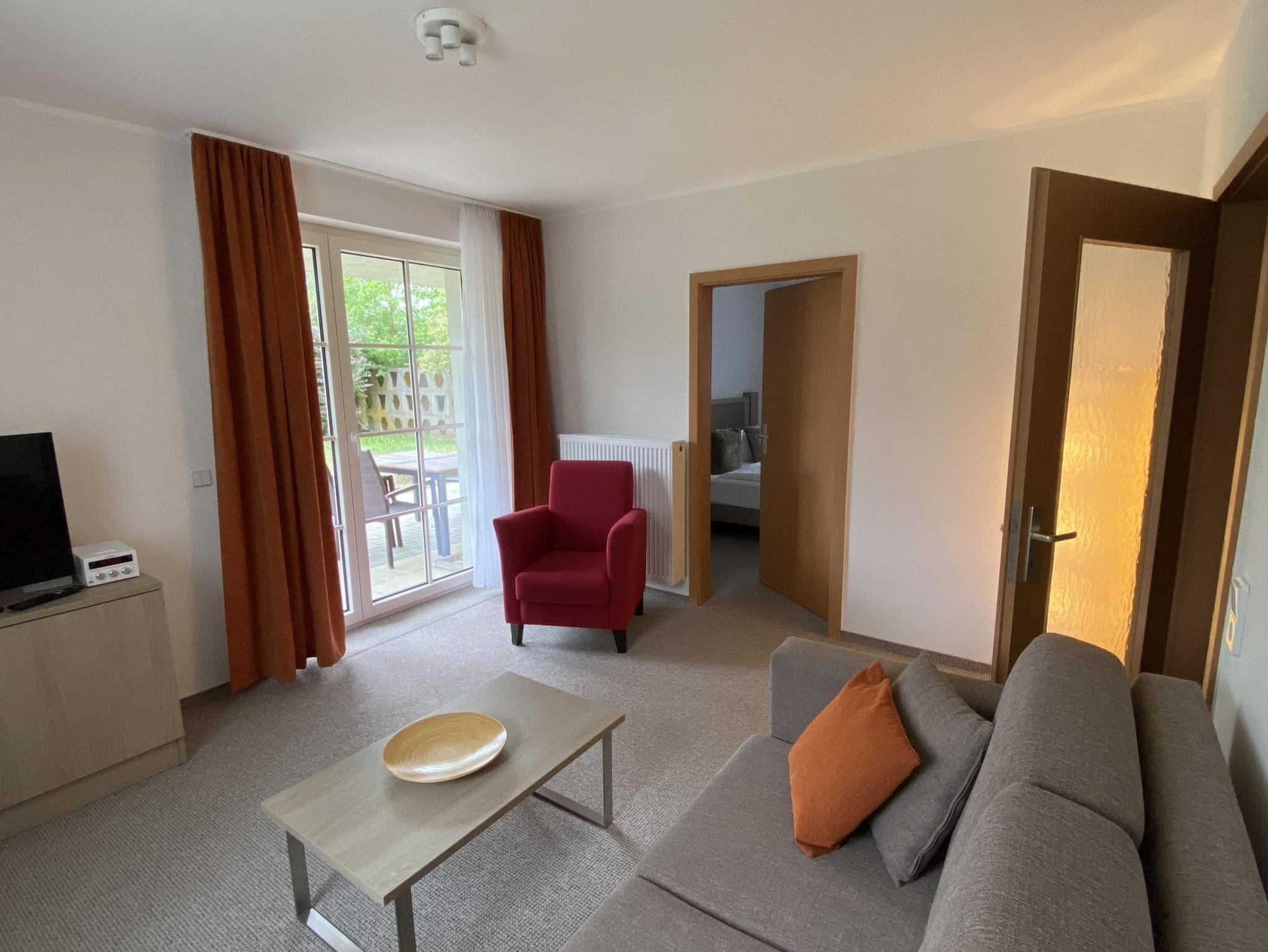 Die Ferienwohnung mit Gartenblick im Paterre ist mit 2 Schlafzimmern, einem Wohnzimmer, Küche, Badewanne, WC, TV, WLAN und einer Terrasse ausgestattet.
