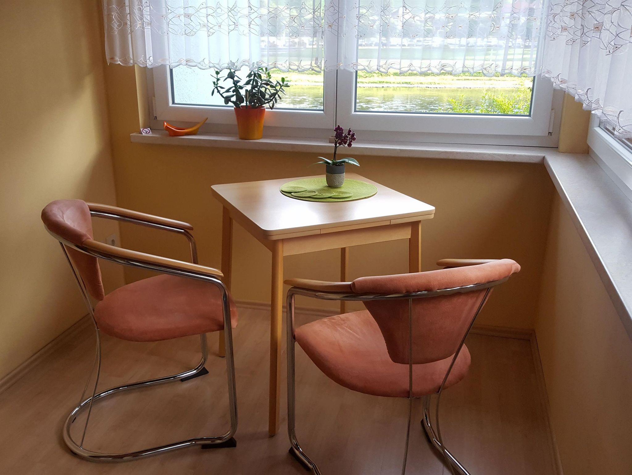 Die Ferienwohnung »TALWÄCHTER« ist über einen separaten Eingang im 1. Obergeschoss zu erreichen. Im ruhigen Schlafraum mit Doppelbett (1,80 x 2,00 m) werden Sie entspannt schlafen. Der liebevoll eingerichtete Wohnraum bietet Platz für gemütliche Abende mit wunderbarem Blick auf die Elbe. Eine komplett ausgestattete Küche mit Kühlschrank, 2 Herdplatten, Wasserkocher, Kaffeemaschine und Toaster steht Ihnen zur Verfügung. Genießen Sie Ihr Frühstück im Wintergarten oder auf der eigenen Terrasse mit Blick auf den Fluß.