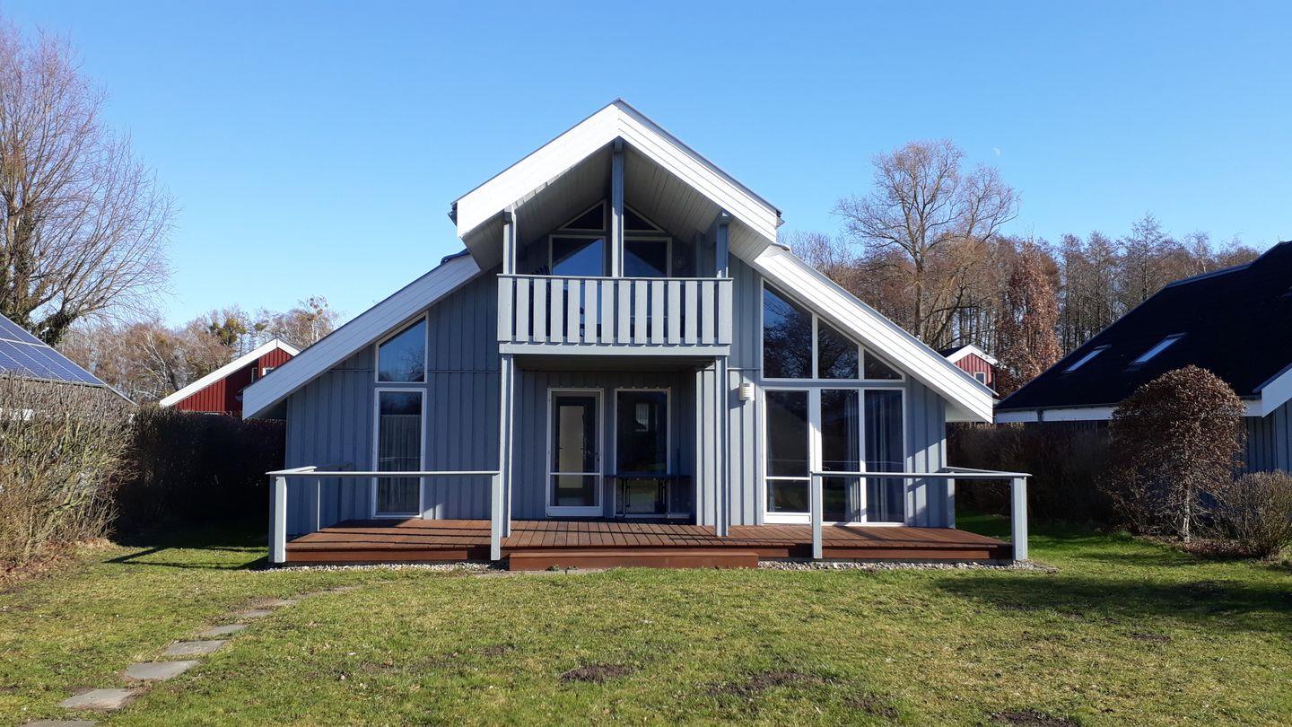 Das Ferienhaus im skandinavischen Stil bietet Platz für bis zu 6 Personen auf 2 Etagen mit 2 Schlafzimmern und offener Schlafgalerie, Wohn-/Essbereich, Einbauküche, Badezimmer mit Sauna und Whirlpool, Pkw-Stellplatz und Terrasse.
