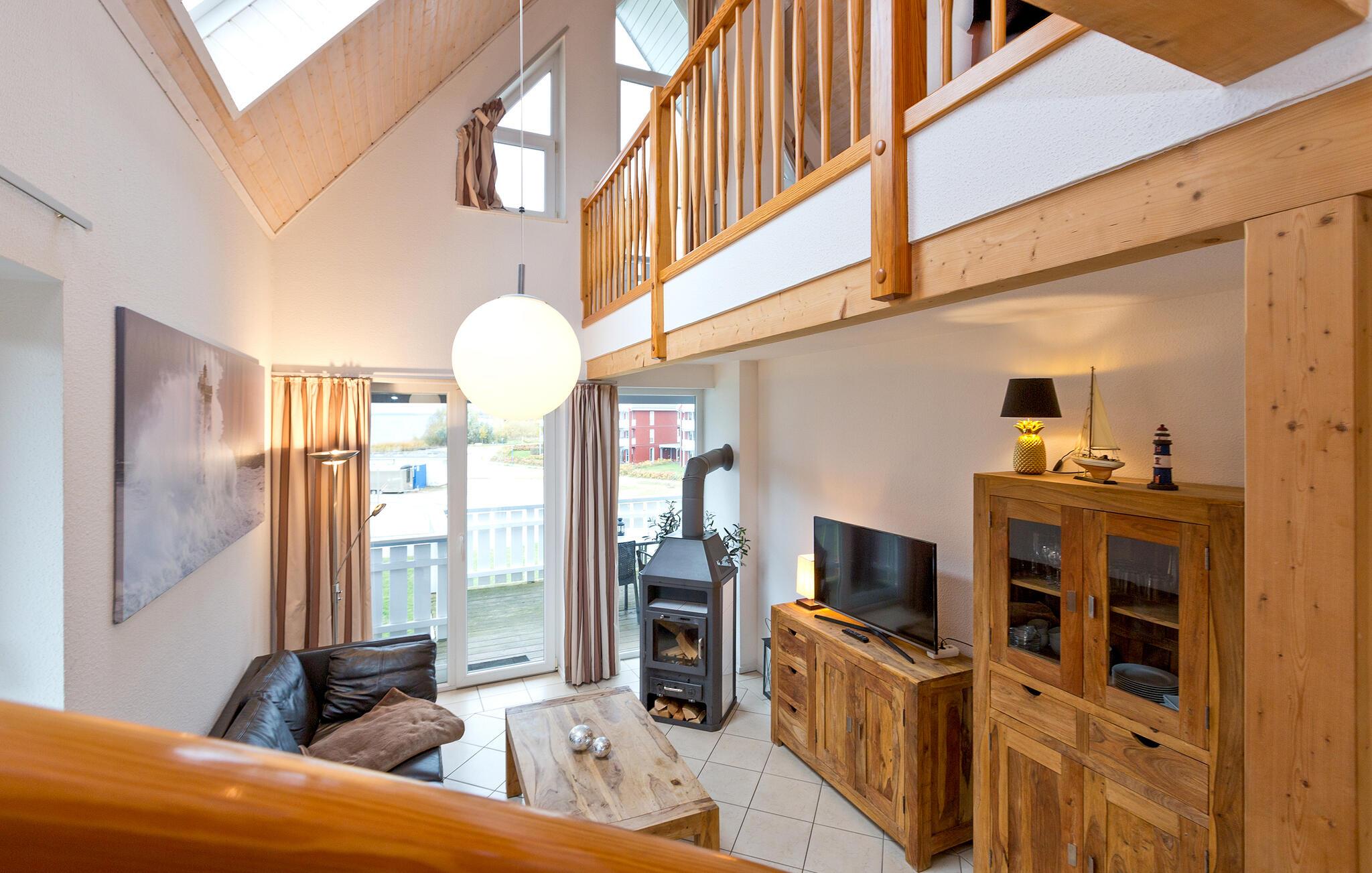 Denne lejlighed ligger i første række ved vandet og tilbyder uhindret panoramaudsigt over Müritz-søen. Møbleret med masser af varmt træ, rustikke møbler og pejs inviterer lejligheden jer til at tilbringe afslappende timer med at nippe til kaffe, lytte til musik eller læse. Uanset hvordan I vælger at tilbringe jeres dag, finder I fred og ro her.