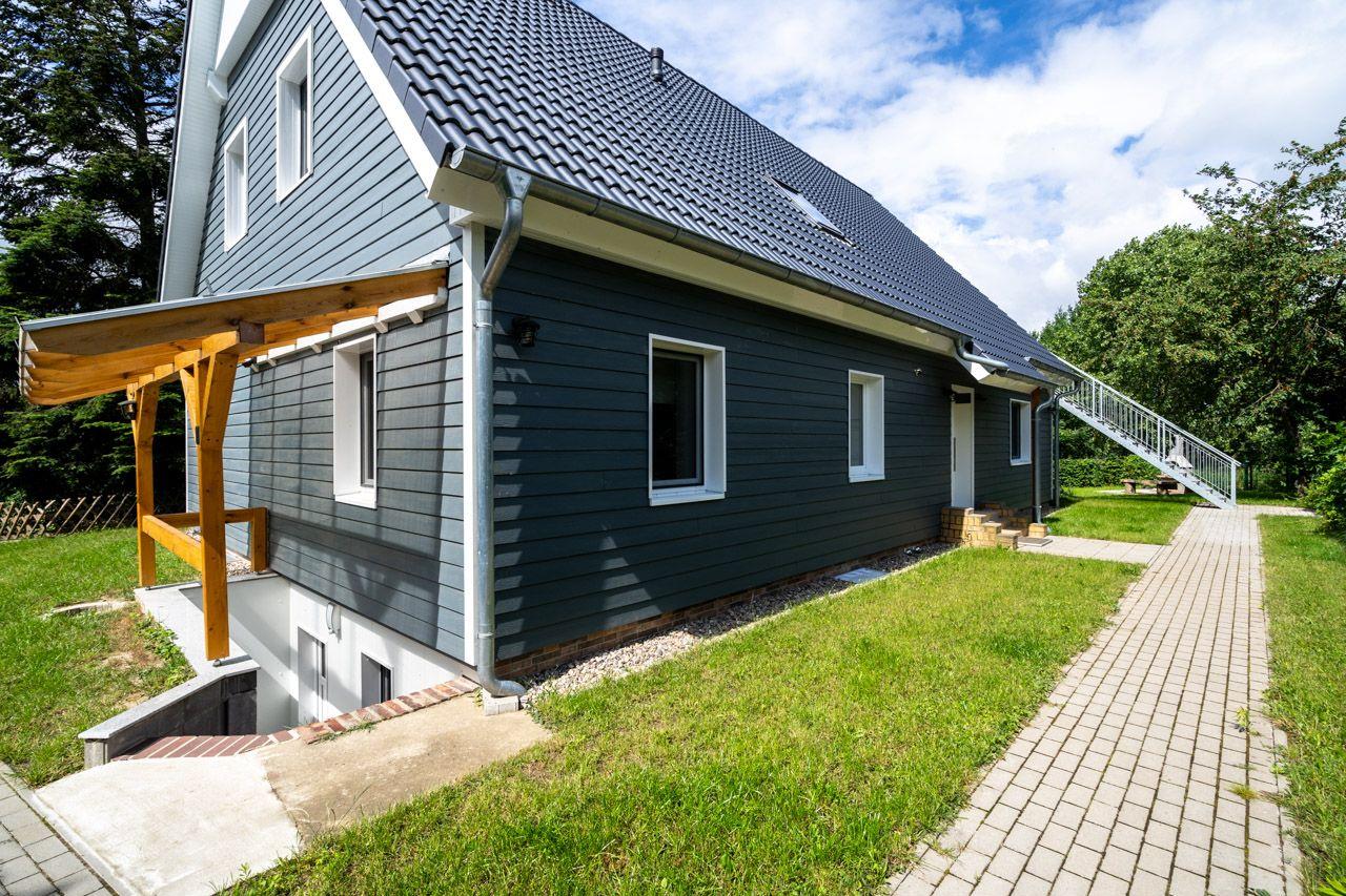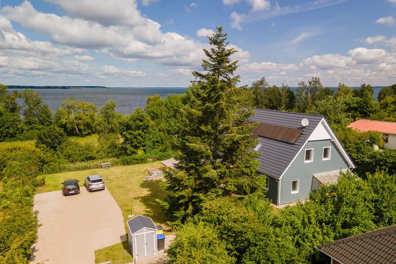 In den 3 Schlafzimmern finden Sie gemütliche Betten, in denen Sie erholsame Nächte verbringen können. Das 3. Schlafzimmer im Dachgeschoß ist über eine Raumspartreppe zu erreichen. Das große Wohnzimmer mit offener komplett ausgestatteter Küche lädt zum gemeinsamen Kochen und Entspannen ein. Der Elektrokamin sorgt für eine wohlige Atmosphäre, besonders an kühleren Abenden. Der Grillplatz ist für alle Parteien zu nutzen. Das neu erbaute Ferienhaus ist modern und stilvoll eingerichtet, und das abgeschlossene Grundstück bietet Ihnen die nötige Privatsphäre, um Ihren Urlaub in vollen Zügen zu genießen. Die Sauna kann gegen Aufpreis gebucht werden, um nach einem aktiven Tag richtig zu entspannen, was dieses Ferienhaus mit Sauna besonders attraktiv macht. Eine Außendusche sorgt für eine erfrischende Abkühlung an warmen Tagen. Bitte beachten Sie, dass die Ferienwohnung nur über eine Treppe erreichbar ist (die Stufen sind für 4-Beiner extra abgeklebt). Lassen Sie sich von der herrlichen Aussicht auf die Müritz verzaubern und genießen Sie Ihren Urlaub in vollen Zügen auf der möblierten Terrasse mit Blick über die Müritz. Ihre Fahrräder können Sie sicher auf dem Grundstück anschließen/ abstellen.