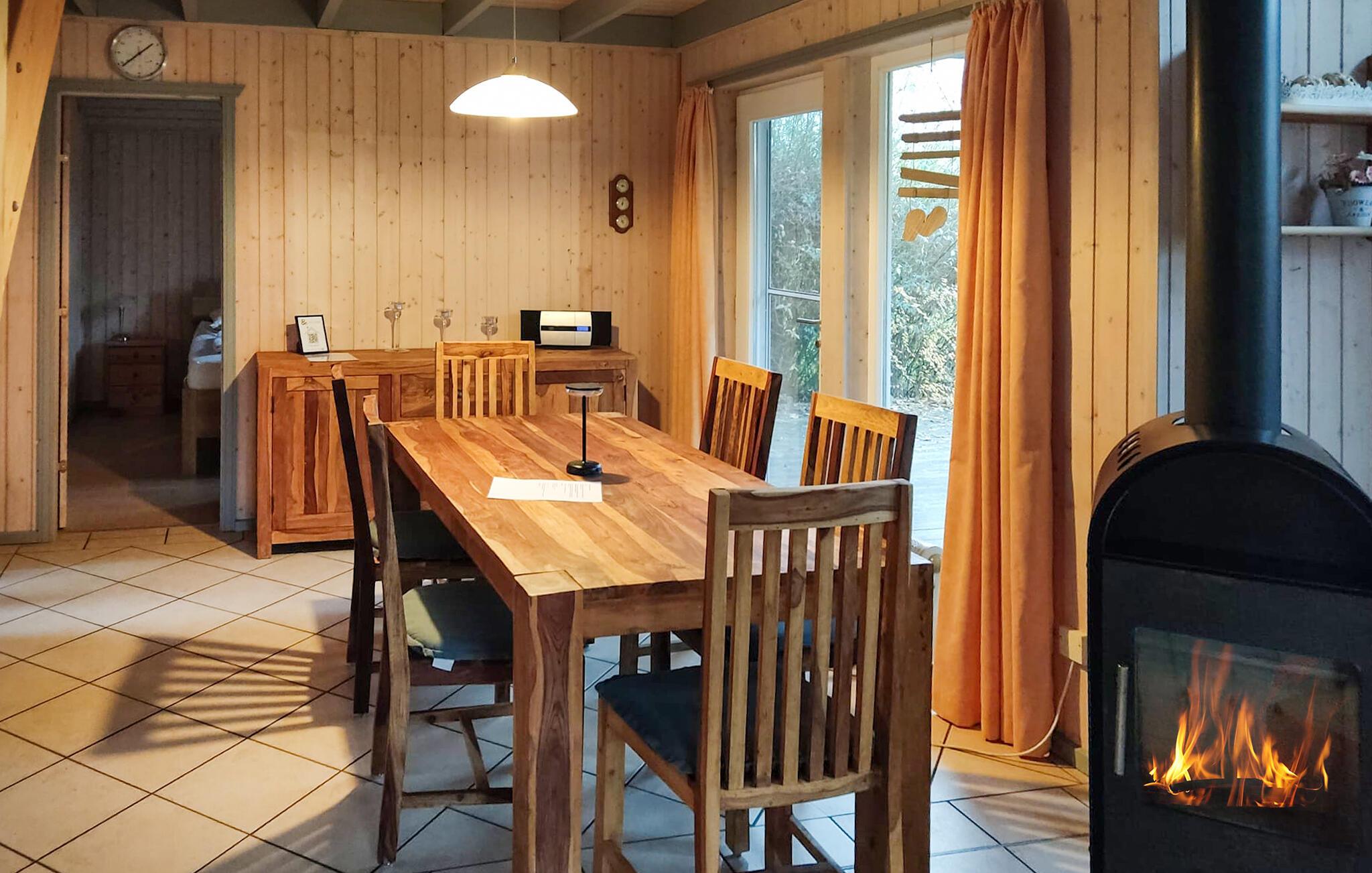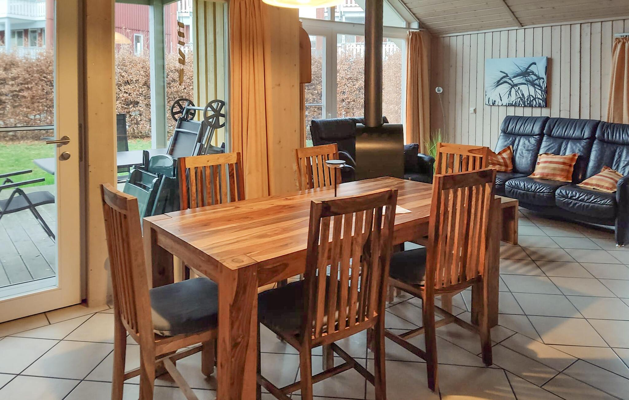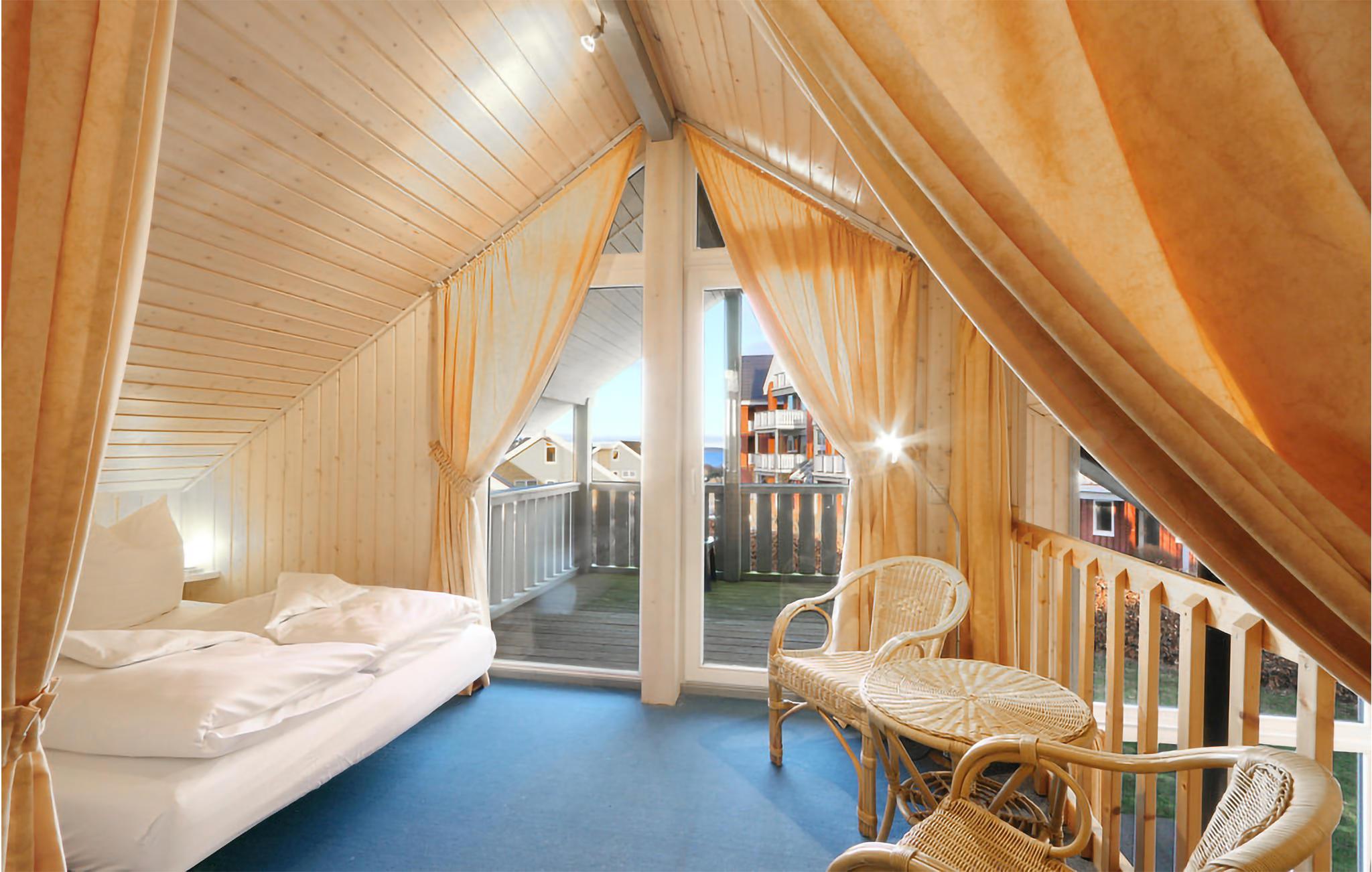 Det moderne feriehus ’Seeschwalbe Classic’ har plads til seks personer. I den lyse opholdsstue er der dejlig brændeovn, som kan varme hele rummet op på kolde dag. Kommer I hjem efter en lang spadseretur, kan I endda se frem til at sætte jer i saunaen eller spabadet og få varmen. Der er myggenet for vinduerne.