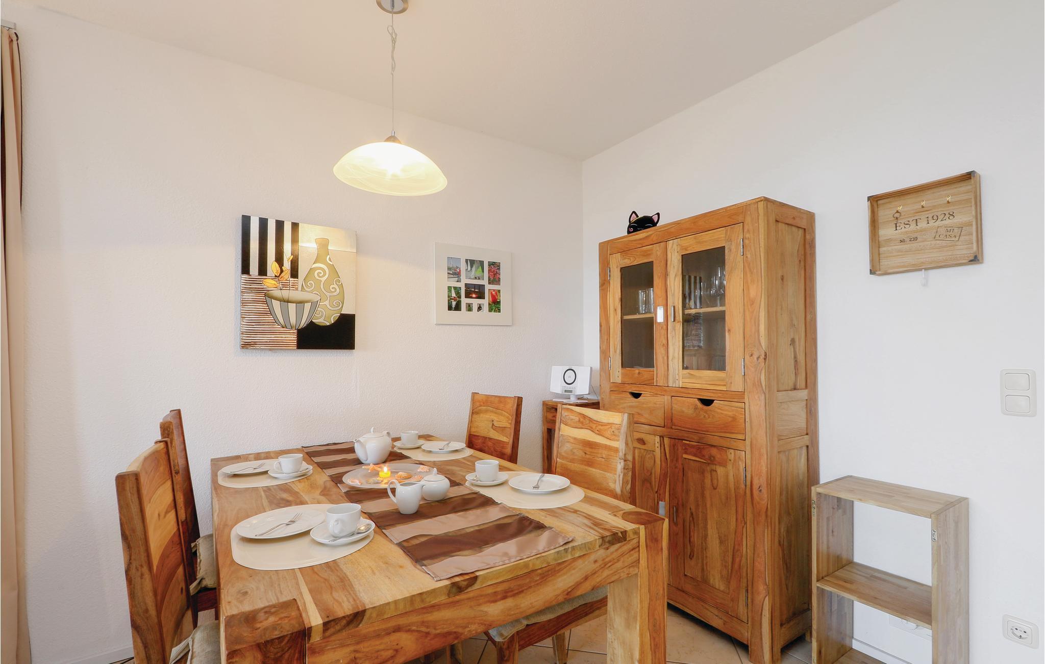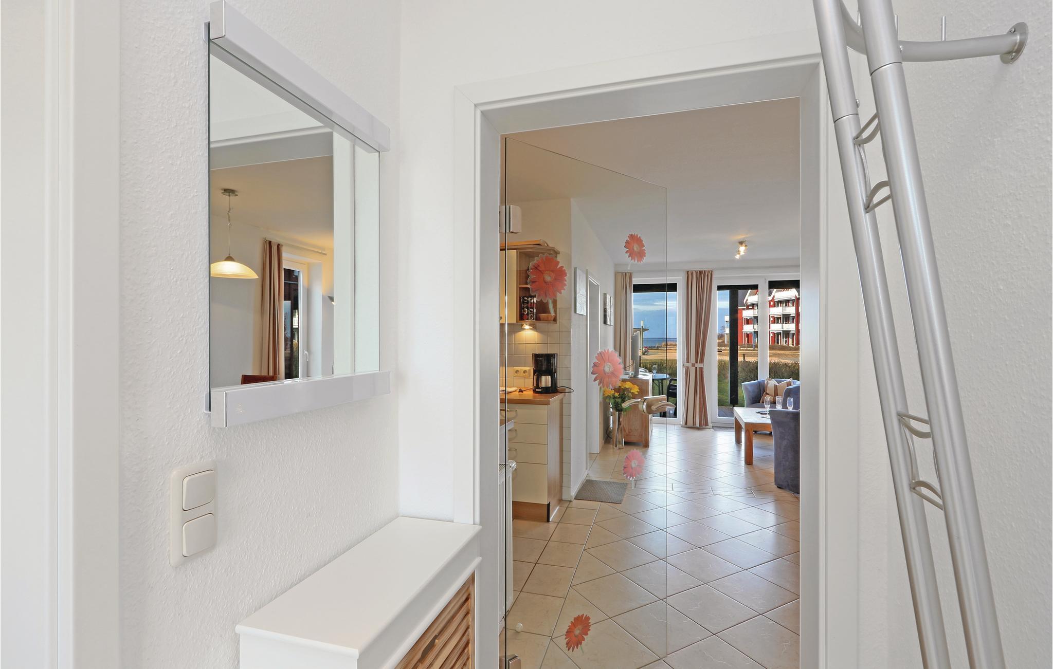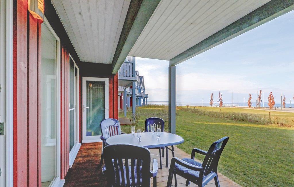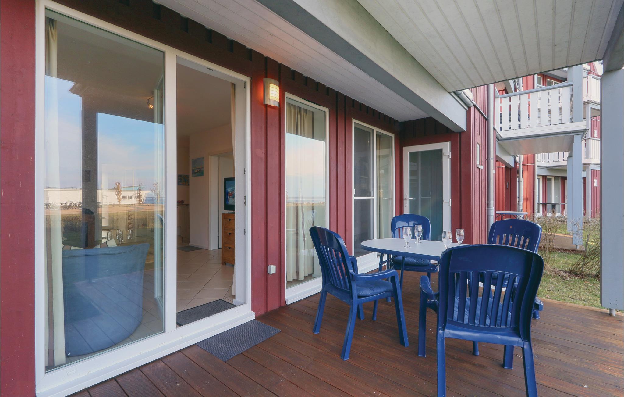 Denne ferielejlighed hedder Gartendeck og ligger i ferieparkens kaptajnshus i stueetagen. Her er der god plads til fire personer, og fra terrassen er der udsigt til søen og haven hvor ungerne kan lege uforstyrret mens I slapper af. Der er adgang til terrassen fra det ene soveværelse. I har også jeres egen sauna i huset og det store køkkenalrum er lyst og veludstyret. Der er føntørrer og bidet i badeværelset.