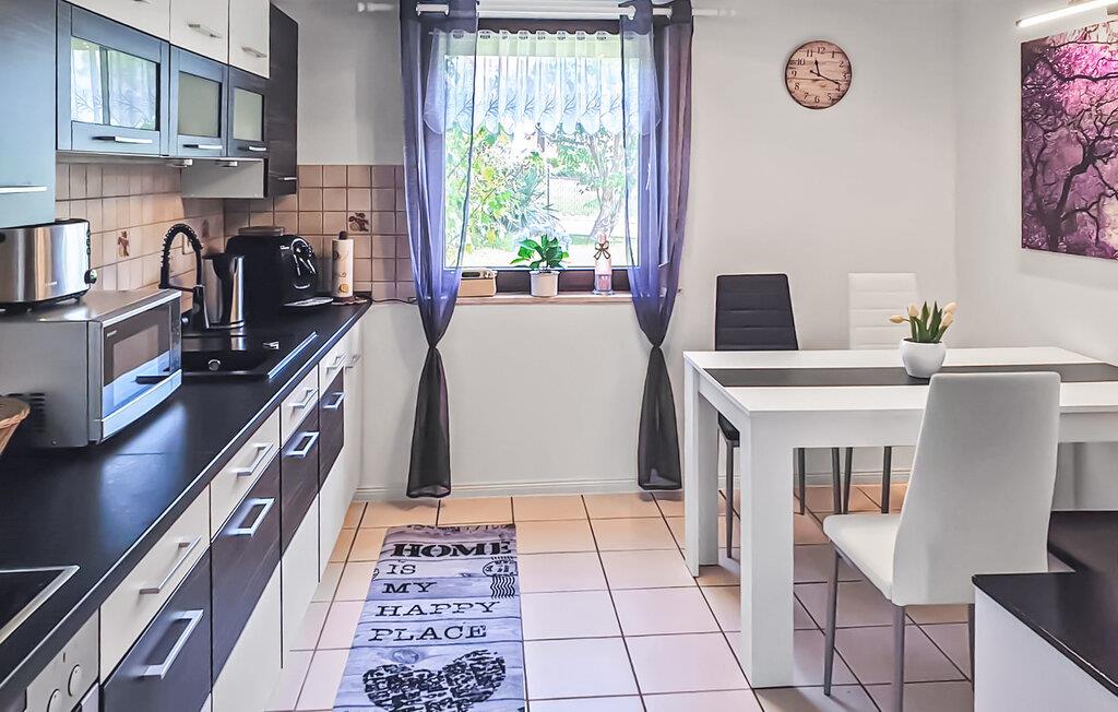 Det 100 kvm store sommerhus til 2 voksne og 2 børn ligger hver for sig på en 755 kvm beboelsesejendom lokalt. Det blev fuldstændig moderniseret og omudstyret i 2020. Der er stue (polstrede møbler, fladskærms-tv, hi-fi system, spiseplads, pejs), køkken (elkomfur med ovn, køleskab med fryser, mikroovn, spisebord, diverse køkkenmaskiner), 1 soveværelse (dobbeltseng), 1 børneværelse (køjeseng, gennemgangsrum til badeværelset) og badeværelse med brus/toilet. I det udendørs område er der møbleret opholdsområde, grill, lille. Legeplads og parkeringsplads. En barneseng og en høj stol er til rådighed for små børn. Boligen kan kun opvarmes via kakkelovn og pejs. Den samlede pris inkluderer slutrengøring, sengelinned, håndklæder samt vand- og energiforbrug. Reetzow er en landsby i de naturskønne omgivelser i det såkaldte Thurbruch, et af de største fenområder i Østtyskland. Omgivet af søen Gothensee og søen Kachliner og krydset af talrige floder og dræningsgrøfter, er området ideelt til vandreture, cykling og fiskeri. På grund af sin nærhed til Østersøferiestedet Bansin (ca. 4 km) med en meget god turistinfrastruktur, tilbyder Reetzow sine gæster en god blanding af landlig idyl og livlig turisme.