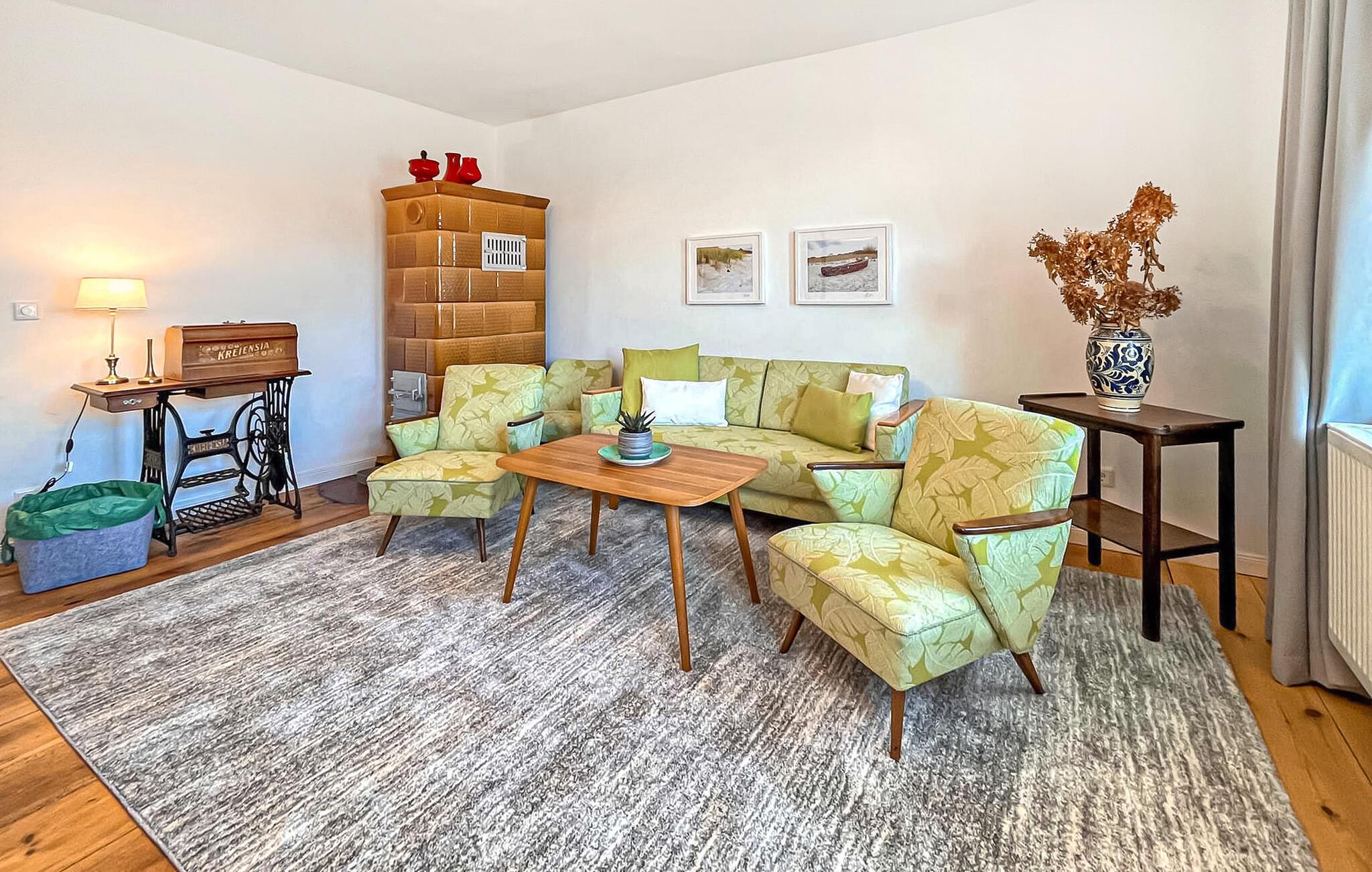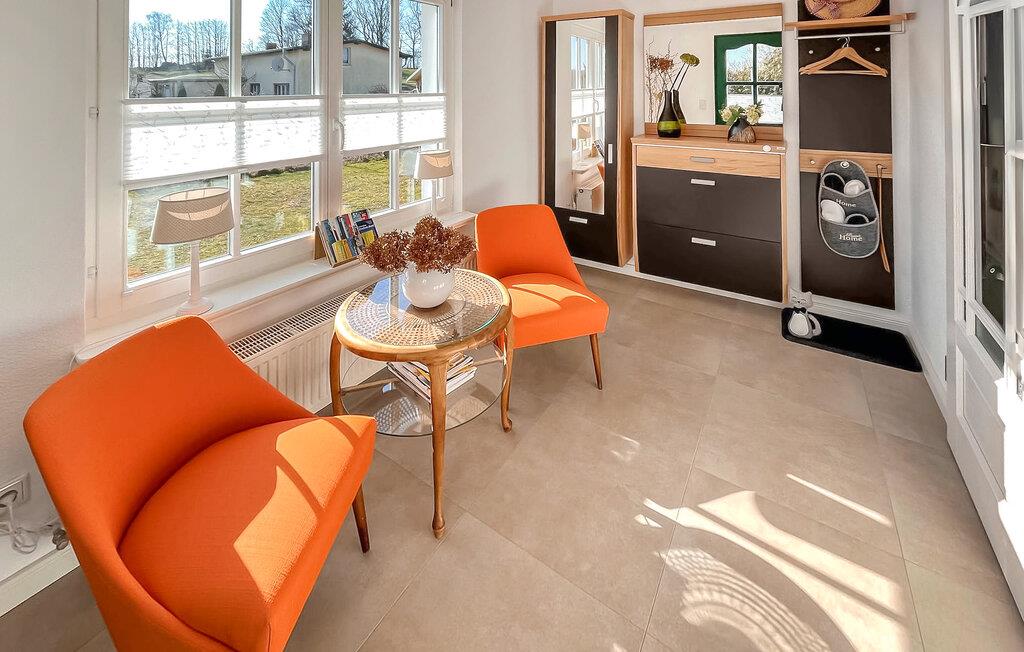 Det cirka 75 kvm store dobbelthus til maks. 2 personer ligger på en 2000 kvm grund (til eksklusiv brug). Det tidligere stuehus fra det 19. århundrede blev omfattende renoveret og indrettet til en høj standard i 2021. Der er en stue (polstrede møbler, fladskærms-tv, kakkelovn), et stort stue-køkken (spisebord, tv, el-komfur med ovn, køleskab med fryser, opvaskemaskine, mikroovn, diverse køkkenmaskiner), et soveværelse (dobbeltseng) og et badeværelse med brus/toilet og vaskemaskine. Boligen opvarmes med centralvarme. Der er overdækket og møbleret terrasse, grillfaciliteter, cykelkælder, parkeringsplads og WiFi til rådighed. To cykler kan lejes på stedet (5 EUR/cykel og dag). Den samlede pris inkluderer slutrengøring, sengelinned, håndklæder samt vand- og energiforbrug. Reetzow er en landsby i de naturskønne omgivelser i det såkaldte Thurbruch, et af de største fenområder i Østtyskland. Omgivet af søen Gothensee og søen Kachliner og krydset af talrige floder og dræningsgrøfter, er området ideelt til vandreture, cykling og fiskeri. På grund af sin nærhed til Østersøferiestedet Bansin (ca. 4 km) med en meget god turistinfrastruktur, tilbyder Reetzow sine gæster en god blanding af landlig idyl og livlig turisme.