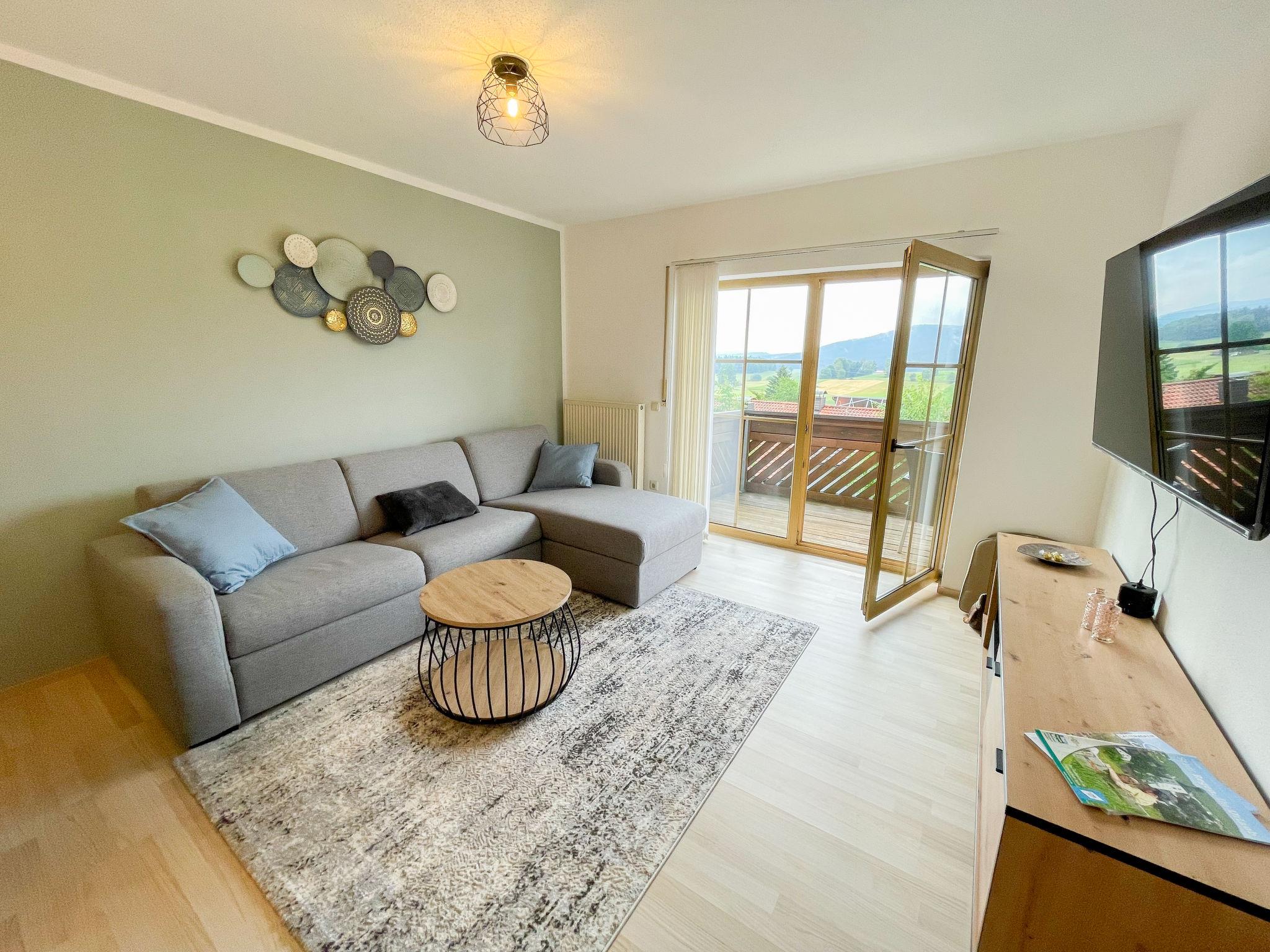 Apartment house, 3 storeys. In the district of March 7 km from the centre of Regen, 9 km from the centre of Bischofsmais, 25 km from the centre of Deggendorf, on a slope, in a cul-de-sac. Steep footpath to the house. Parking (limited number of spaces). Grocery 400 m, supermarket 6 km, restaurant, bakery 400 m, bus stop "Triefenried" 1.3 km, railway station "Regen" 8 km. Children's playground 200 m. Well-known ski regions can easily be reached: Geißkopf 6 km. Hiking paths: Geißkopf 6 km. E-charging station 200 m.