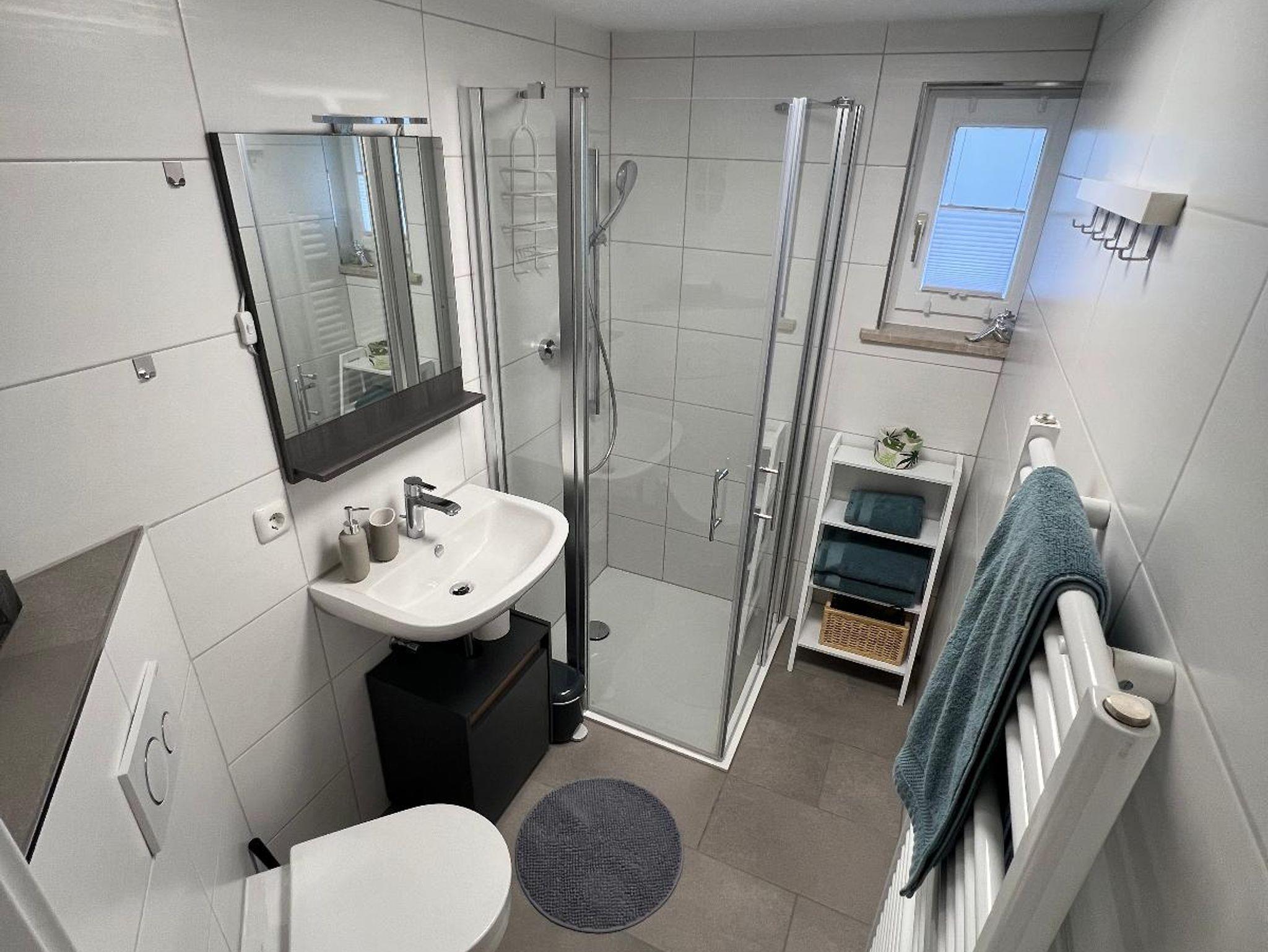 Bad mit Dusche, WC, Fön und je 1xDusch-/Handtuch-Set pro Person;