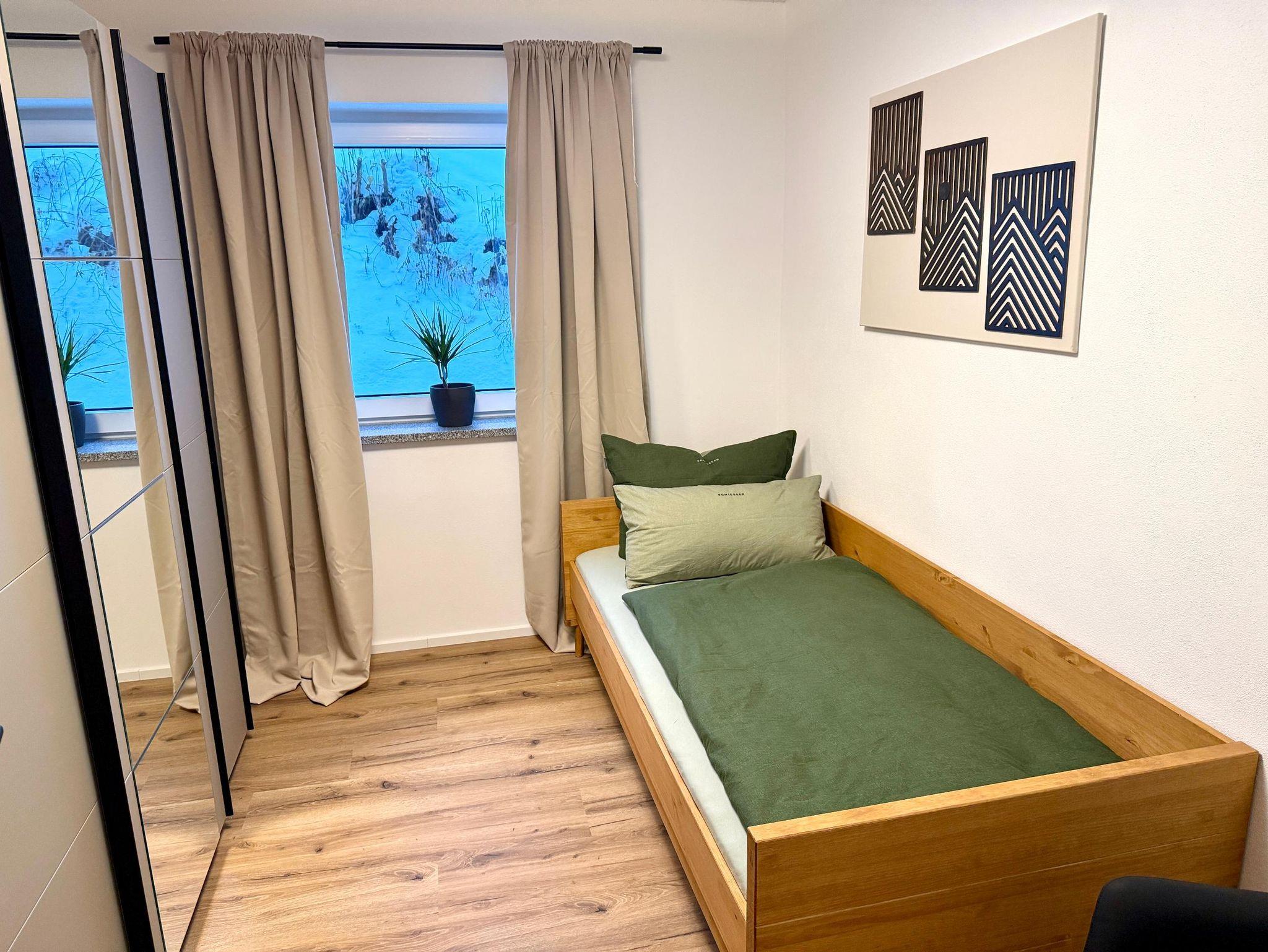 Die moderne, großzügige Ferienwohnung mit ca. 120 qm Wohnfläche bietet Platz für bis zu sechs Personen. Sie verfügt über drei Schlafzimmer, darunter ein Schlafzimmer mit Doppelbett und TV, ein weiteres Schlafzimmer mit Doppelbett und einem Einzelbett sowie ein Schlafzimmer mit einem Einzelbett. Der Wohnbereich mit gemütlichem Sofa und TV ist offen zur Küche und zum Essbereich gestaltet und bietet viel Raum für gemeinsames Beisammensein. Ein Badezimmer mit Dusche und WC rundet die Ausstattung ab. Diese Wohnung ist ideal für größere Familien oder Gruppen, die Komfort und ausreichend Platz wünschen.