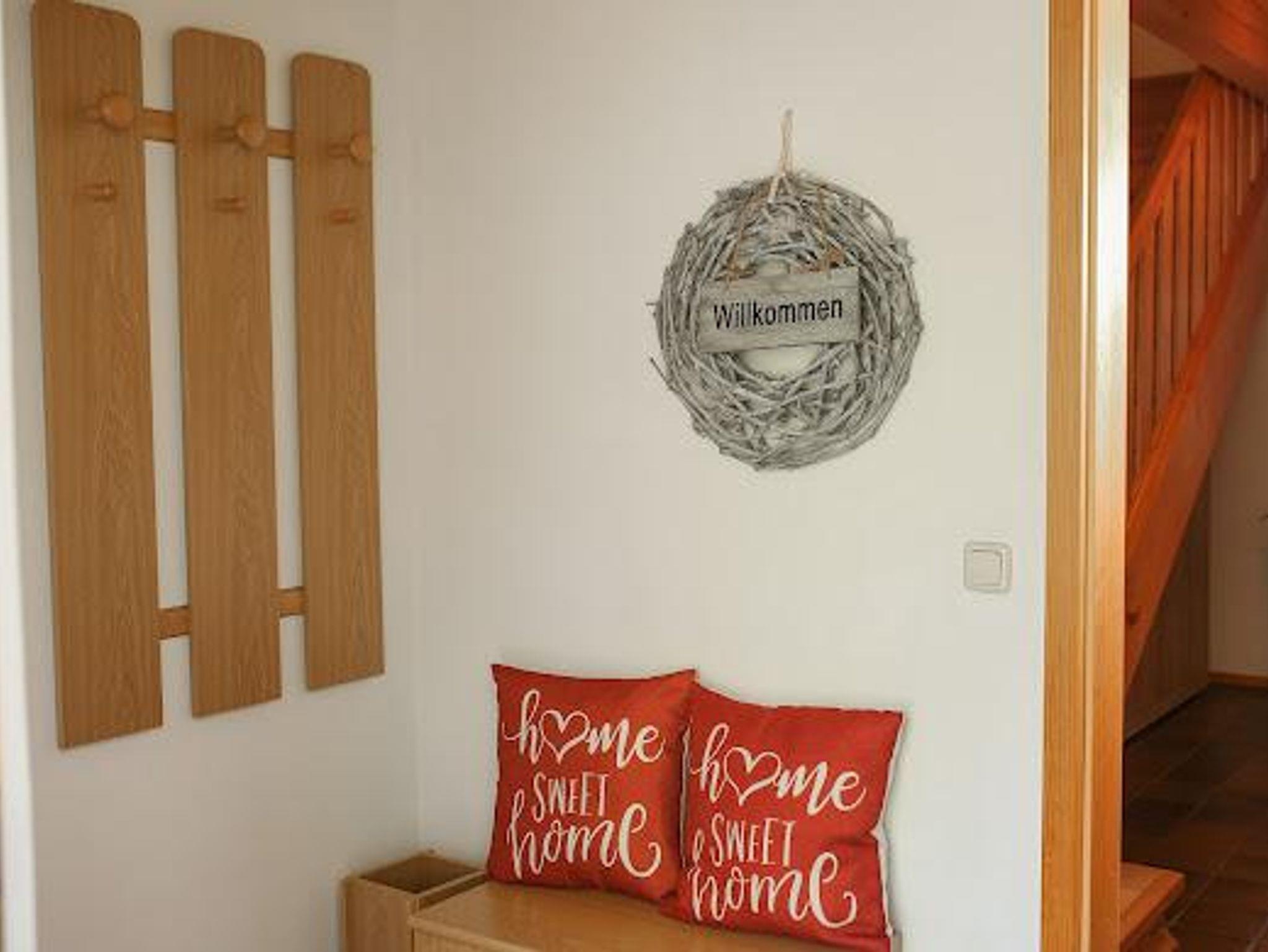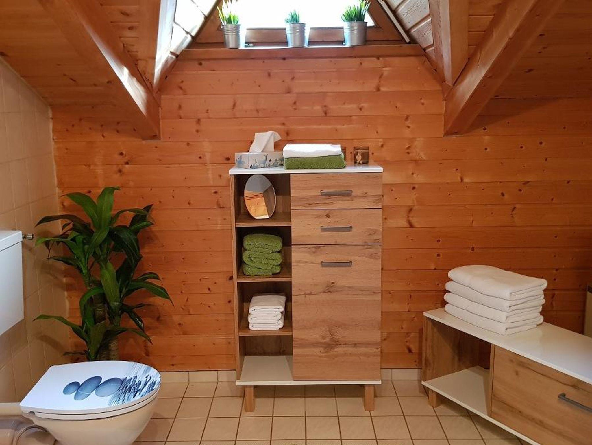 Im Erdgeschoss befinden sich das gemütliche Wohnzimmer mit einem Kaminofen, den man selbst befeuern kann. Brennholz inklusive. Im Wohnzimmer gibt es einen großen Flachbildschirm, der besten Fernsehgenuss über TV-Magenta, zum Teil in HD-Qualität, bietet. Auch ein CD-Player steht zur Verfügung.