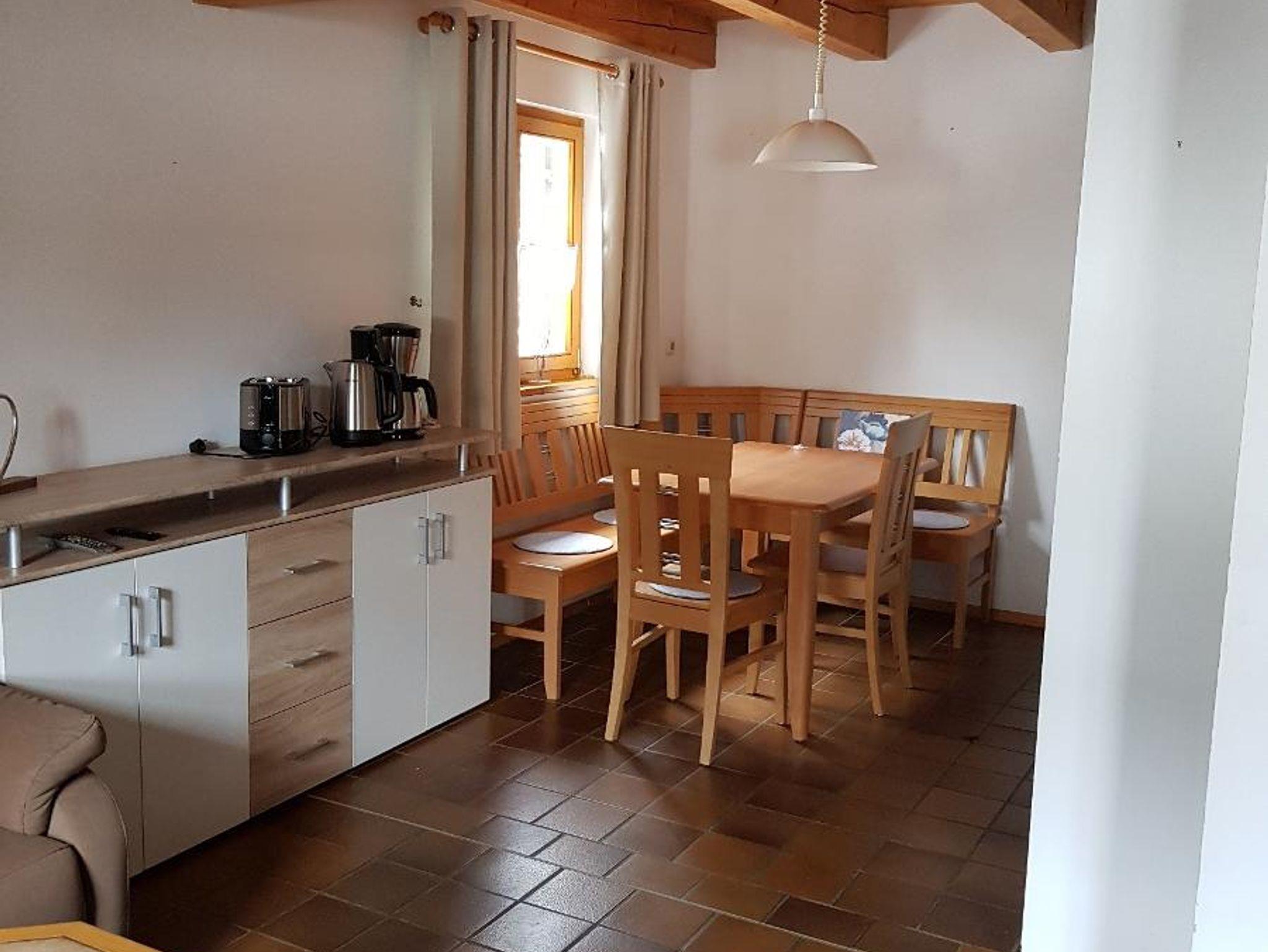 Räume sind hell und haben Sichtbalken, was dem Haus seine besondere Note