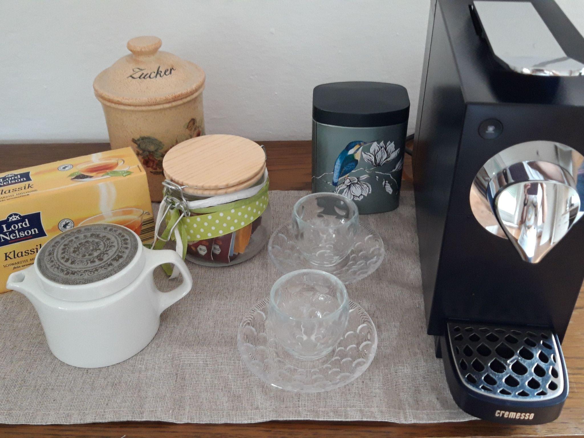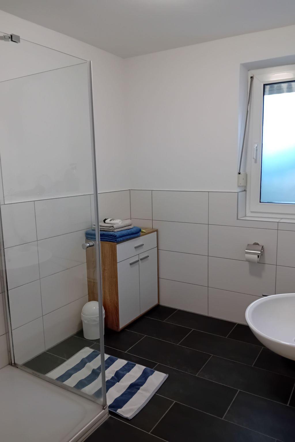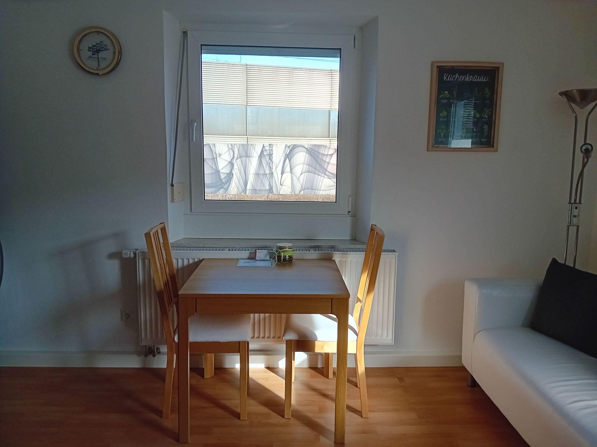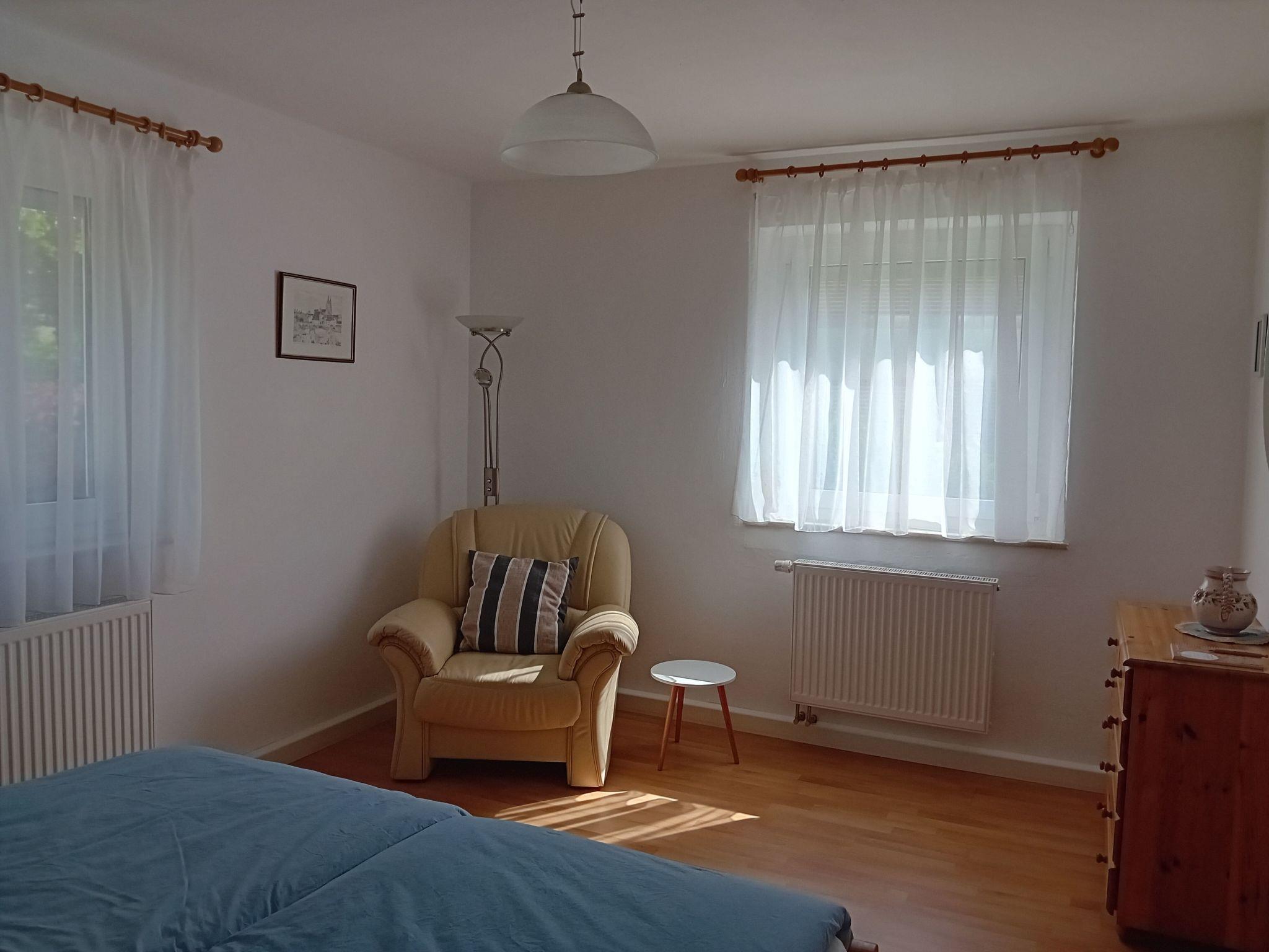 The holiday flat is located on the ground floor of the detached house occupied by the landlady. The flat was completely renovated in spring 2023, new flooring throughout the flat, new bathroom with underfloor heating and a new fitted kitchen await you. The bedroom is approx. 16 sqm, a double bed (180x200), bed linen is provided. The kitchen is approx. 17 square metres and is equipped with a new fitted kitchen with ceramic hob, oven, extractor fan, fridge, coffee machine and kettle. Towels and cleaning materials are provided. The bathroom is approx. 6 square metres in size and is equipped with a shower, washbasin and toilet as well as underfloor heating. Towels, cleaning products and toilet paper are provided.