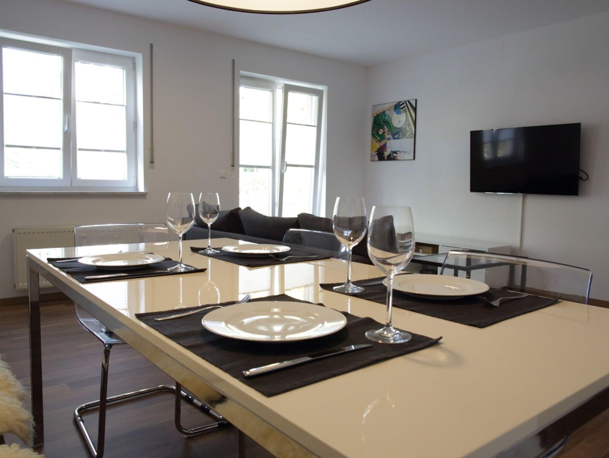 Der Mindestaufenthalt beträgt 5 Tage. Die Wohnung ist exklusiv ausgestattet und hate eine Wohnfläche von 60 qm. Sie liegt in zentrumsnaher Lage von Regensburg. Es gibt ein Schlafzimmer, welches ein gemütliches Doppelbett, einen geräumigen Schrank, einen LED-TV, ein Bügelbrett, ein Bügeleisen beinhaltet. Das Wohnzimmer bietet eine gemütliche Lounge-Couch, die ausklappbar ist, einen 47 Zoll smart LED-TV (internetfähig) und WLAN. Die Küche ist ebenso gut mit einem Essplatz, einer Spülmaschine, einem Backofen, einem Kühlschrank, einer Mikrowelle, einem Wasserkocher, einem Toaster und diversen Küchenutensilien ausgestattet. Das Bad umfasst eine Badewanne, eine Dusche, ein WC, multiple Badmöbel. Die Ferienwohung bietet ebenso eine Terrasse.