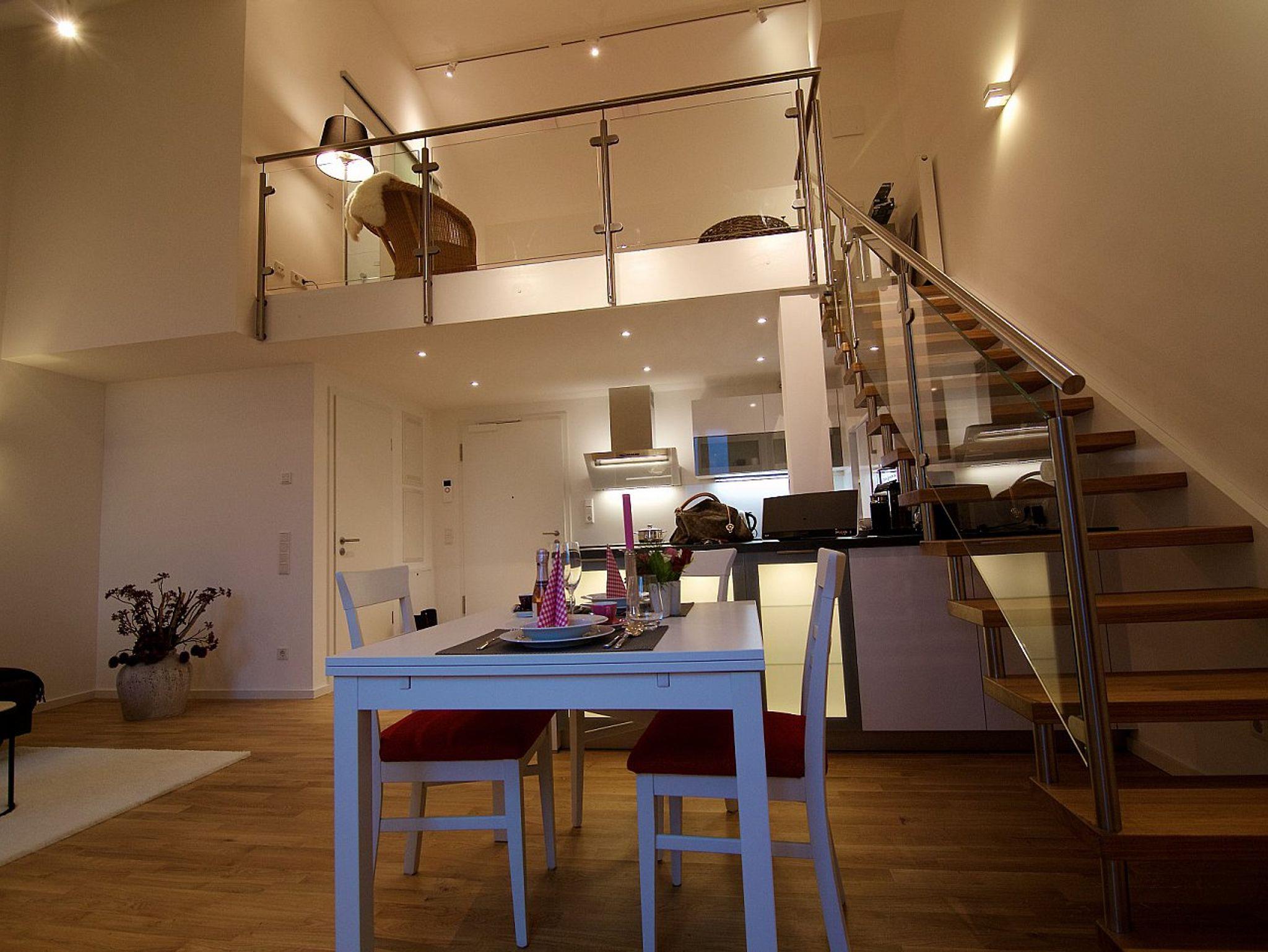 Für Ihre Urlaubs- oder Geschäftsreise, während eines Klinikaufenthalts von Angehörigen sowie als Serviced Appartement für längere Aufenthalte ist die Galeriewohnung/55qm für 1-4 Personen bestens geeignet.Zwischenreinigung, Handtücherwechsel (wöchentlich) und Bettwäschewechsel(14-tägig) ist inklusive.