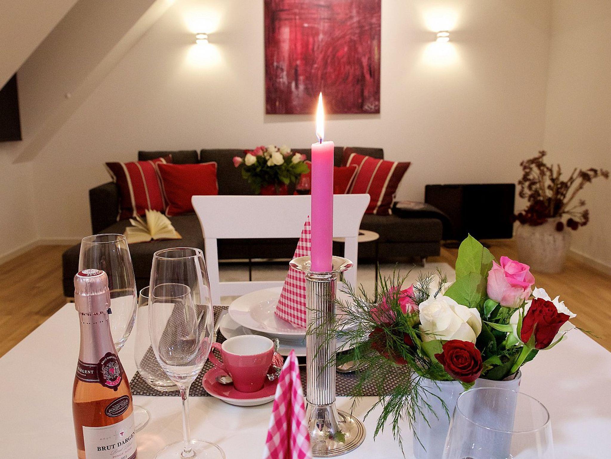 Ihr Auto parkt sicher in der hauseigenen Tiefgarage (8,00 € pro Tag) und von dort gelangen Sie direkt mit dem Aufzug in die Ferienwohnung im obersten (5.) Stockwerk. Die Klassifizierung bezieht sich auf eine Belegung mit maximal 2 Personen.