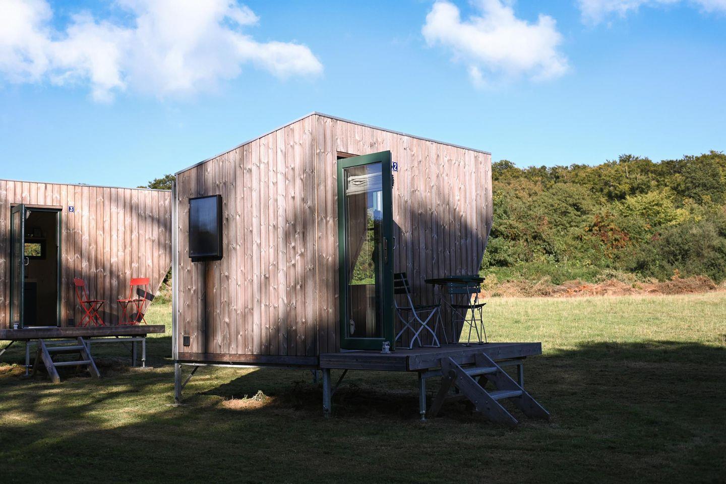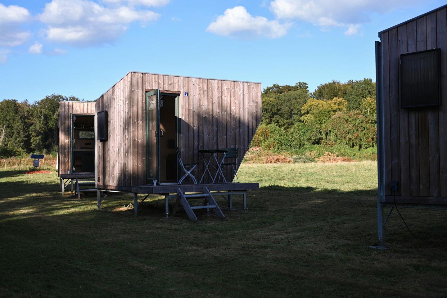 Das Sleep Space 2 am Green&Tiny Spot Rehburg an der Schafweide ist dein kleiner Rückzugsraum in der Natur. Auf nur 5 m² bietet das Cabin auf dem Campingplatz LieblingsGrün in Rehburg-Loccum Platz für bis zu 2 Personen: mit einem 1,40 × 2,00 m Bett, Lounge & Panoramafenster, Stauraum und einer ausgestatteten Kochnische. Genieße die Ruhe in der Nähe des Steinhuder Meeres, übernachte stilvoll in einem nachhaltig gebauten Space und entspanne auf der Mini-Terrasse mit Blick über die Weide.