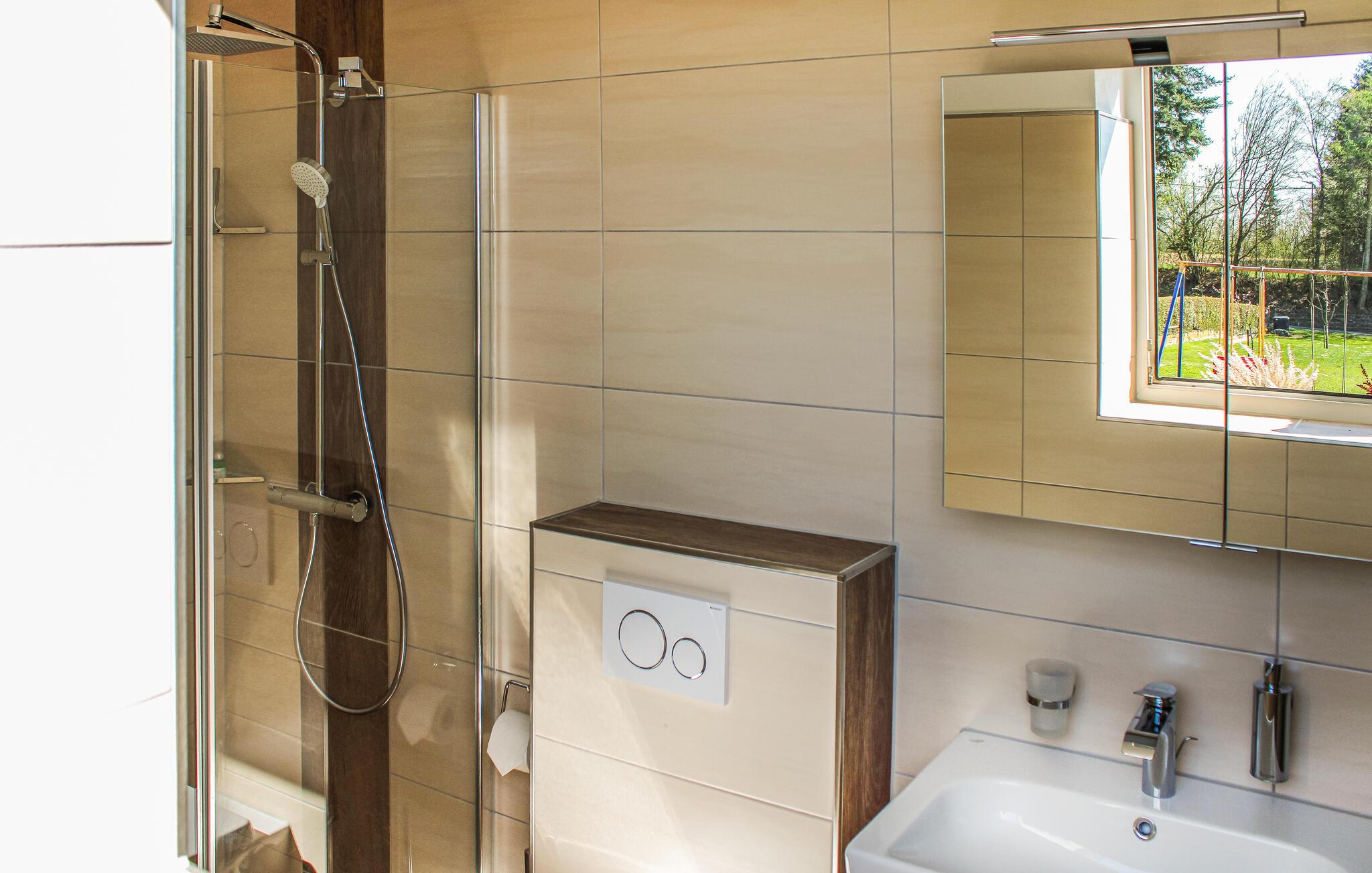 Denne ferielejlighed ligger i Reifferscheid i Eifel. Denne lille landsby ligger på en af de høje bakker, som der er mange af i regionen, og herfra har I en vidunderlige udsigt. Der er ca. 7 km til byen Adenau med sine typiske, smukke bindingsværkshuse. I de nærmere omgivelser er talrige borge (som Kasselburg), men også mange smukke byer og kratersøer. Den berømte racerbane Nürburgring ligger ca. 17 km fra jeres bolig. Med sine mange seværdigheder er ringen klart et besøg værd. Desuden kan I, på en times kørsel, nå slottene og borgene langs Mosel og Rhinen, Phantasialand i Brühl og maareområdet i Eifel. I bor i en lejlighed i stueetagen af dette hus. Lejligheden er hyggelig og velplejet, hvor den gamle bindingsværksstil er bevaret på nogle steder. Fra den store have kan I direkte gå op i bakkerne. De venlige ejere, der bor ovenpå, vil sørge for at I har alt, som I kan få brug for. Ferieljeligheden er egnet til 2 til 3 voksne eller et forældrepar med et barn.