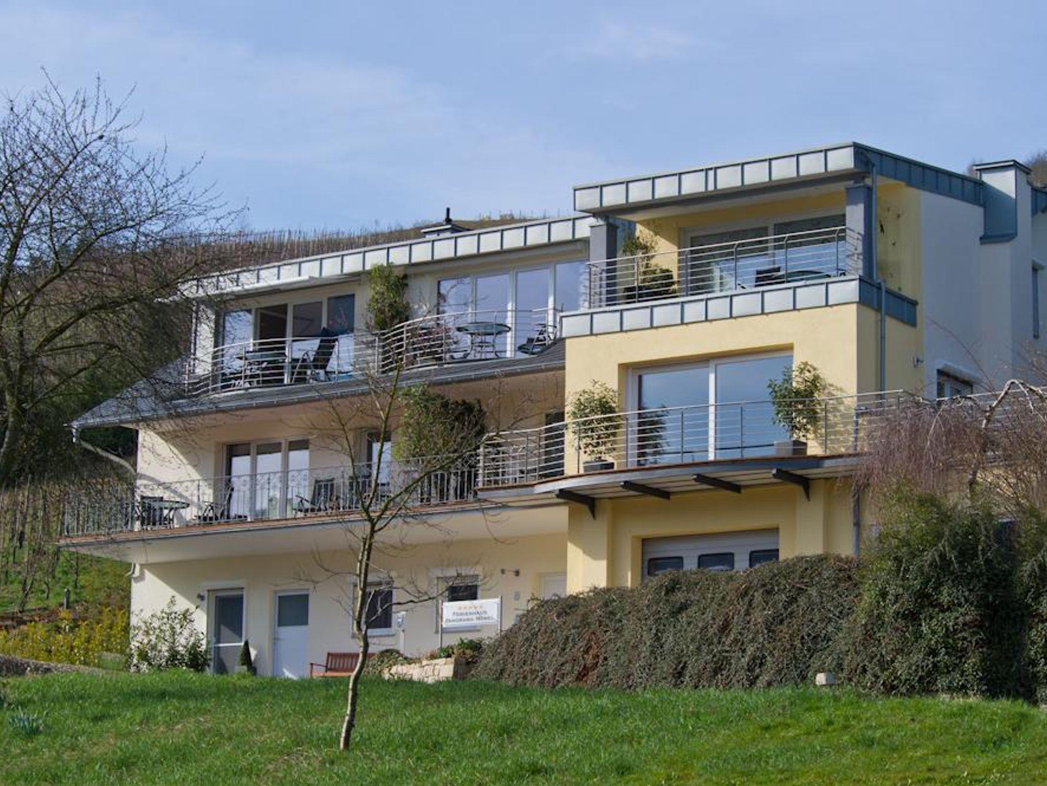 Die Wohnung verfügt über eine eigene, überdachte Loggia mit spektakulärem Panoramablick ins Moseltal. Im Garten stehen Gartenmöbel und Liegen bereit zur Nutzung. Eigene, kostenfreie Parkplätze sind direkt am Haus. Es handelt sich um eine Nichtraucherwohnung. Auf den Terrassen oder im Garten kann gerne geraucht werden. Haustiere sind nicht erlaubt. Hund auf Anfrage. Die Wohnung befindet sich im 2.Stock. Im Flur steht ein Schrank mit Putzmitteln, Staubsauger, sowie Brettspielen, Spielkarten und Büchern bereit für unsere Gäste.