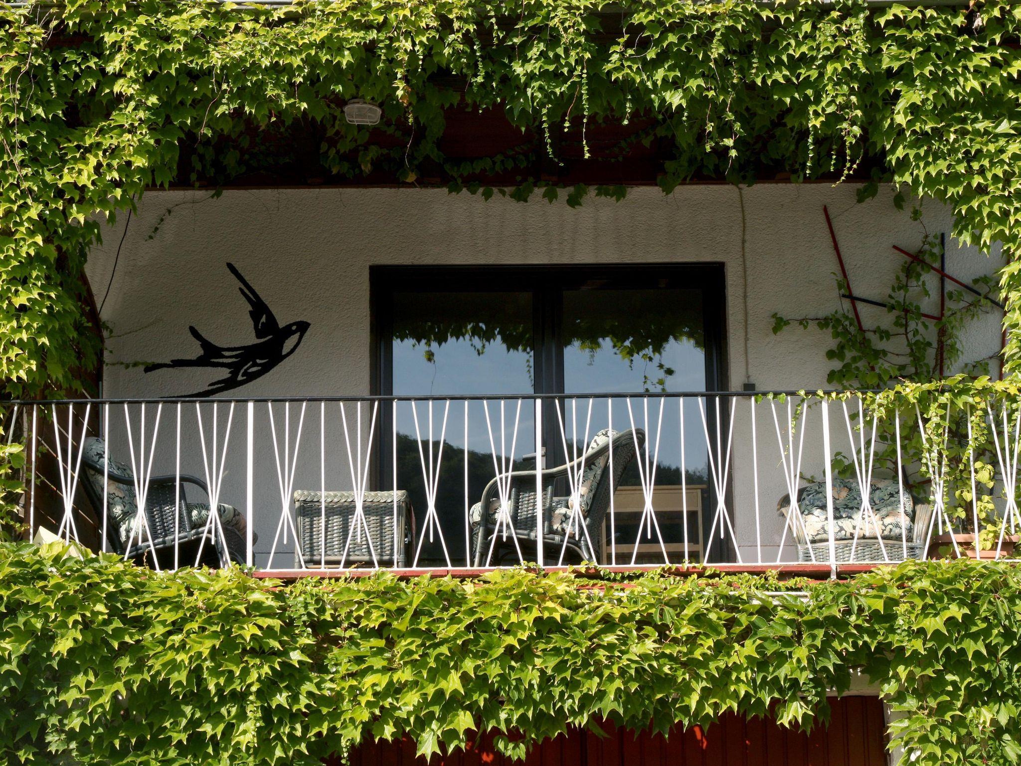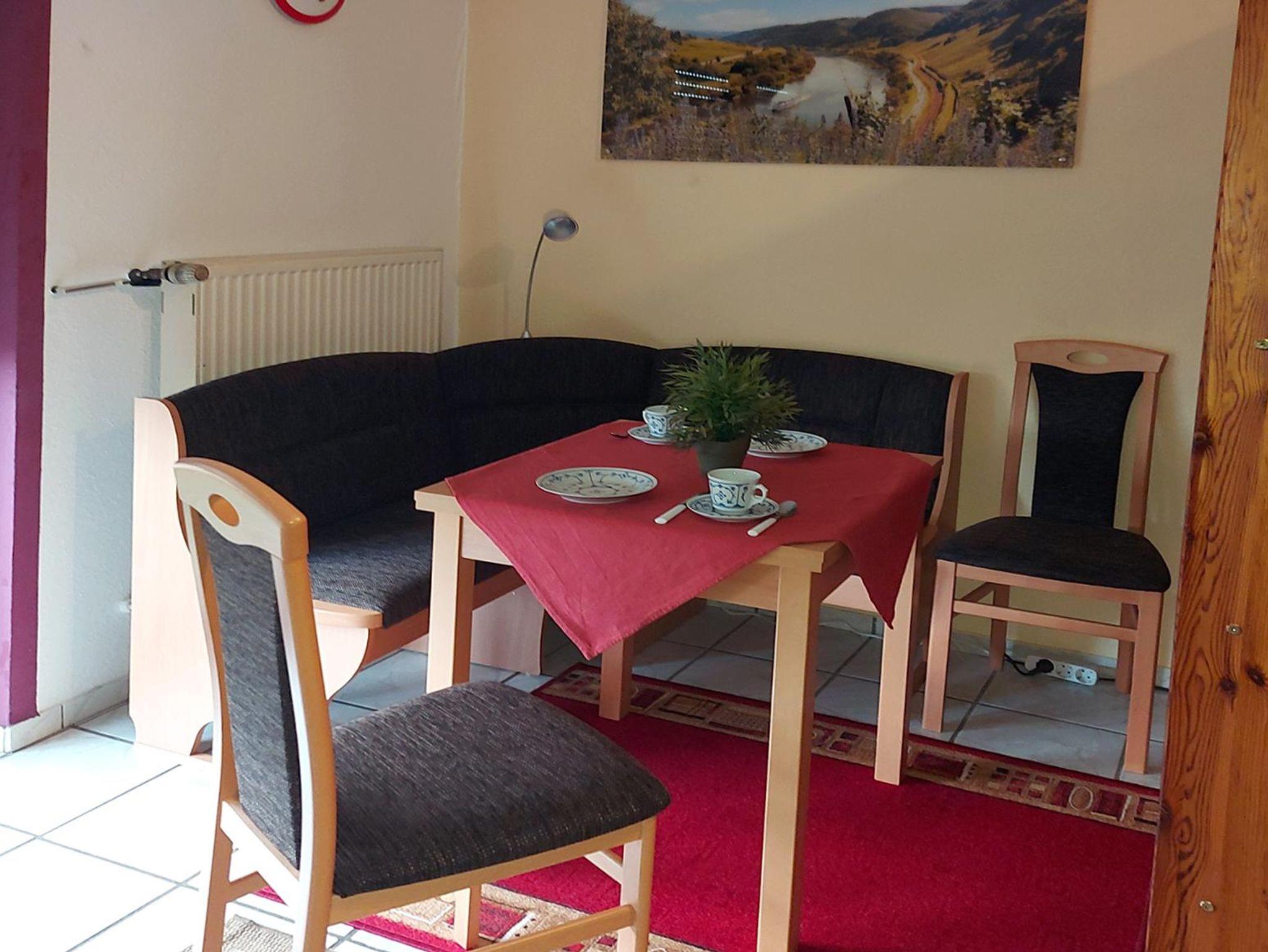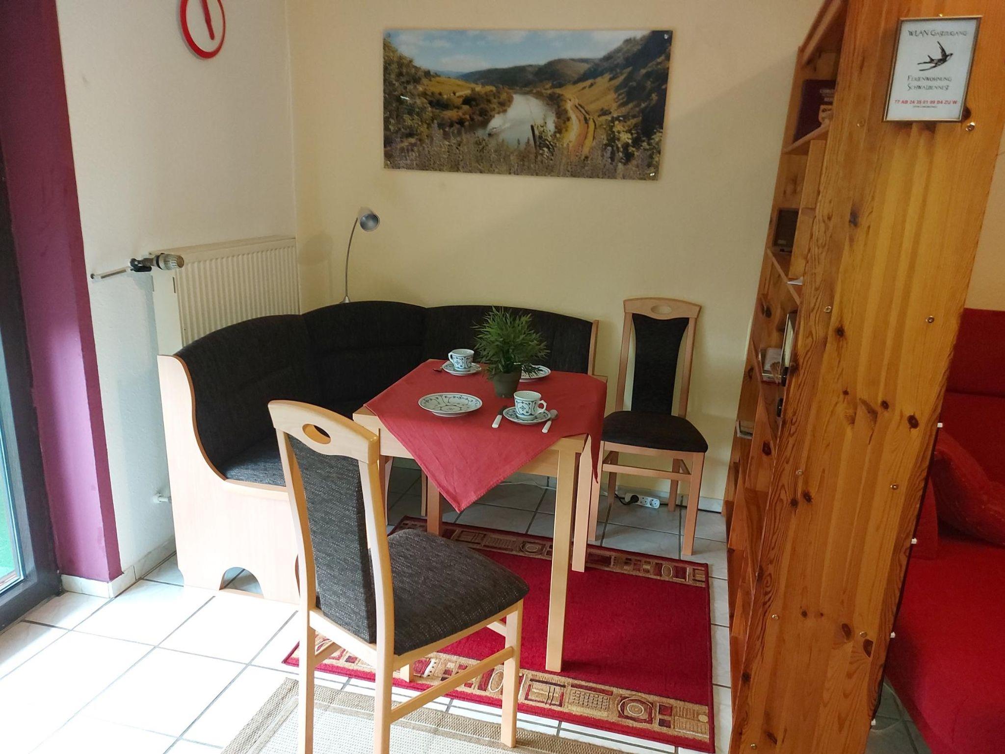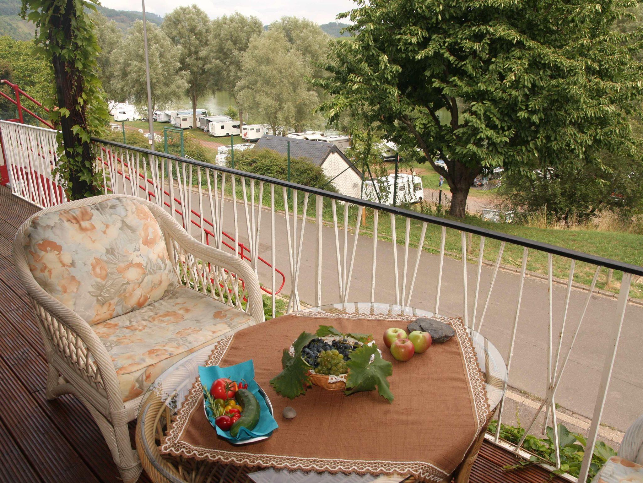 Sie wohnen in einer gemütlich eingerichteten ca. 45 qm großen Ferienwohnung für 2 Personen mit Wohnküche, Schlafzimmer, Dusche/WC, WLAN-Zugang sowie einer überdachten Terrasse herrlichem Blick auf das Moseltal mit seinen Weinbergen.