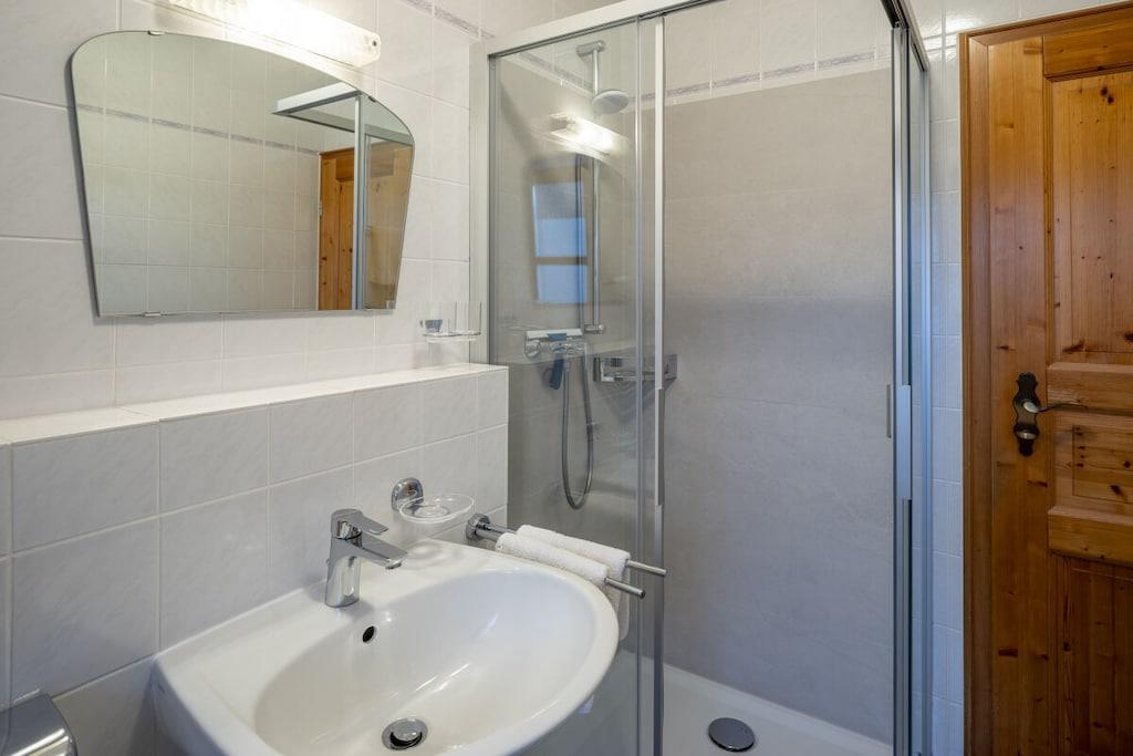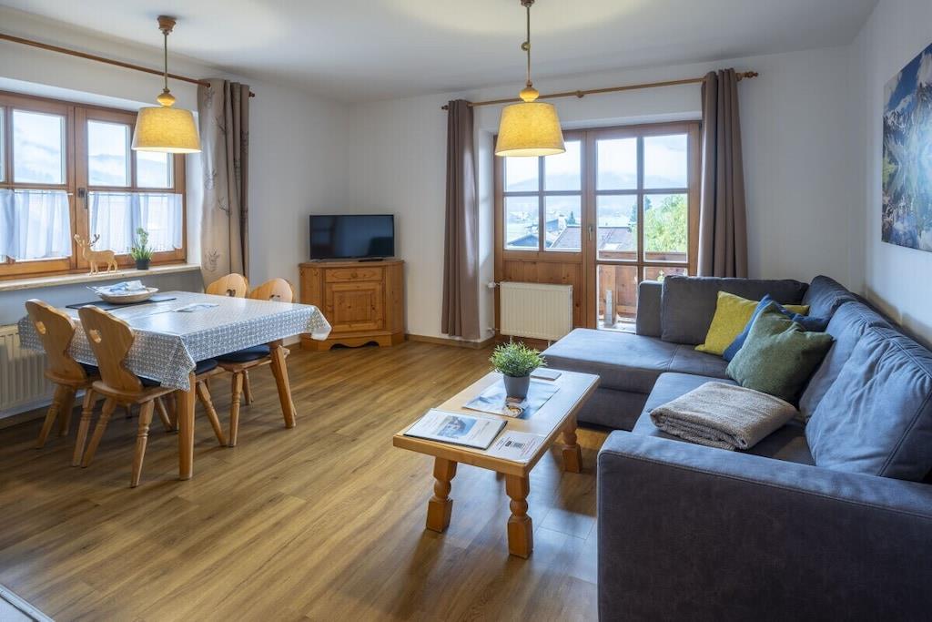 Walmberg-ferielejligheden har et nyt køkken, en kombineret stue/soveværelse (med sovesofa), et nyt soveværelse i massivt træ med en dobbeltseng (hotelkvalitet/allergivenligt sengetøj), et lyst badeværelse med vindue, en praktisk entré og en stor sydvendt altan. Det åbne køkken/opholdsrum tilbyder rigelig plads til en familie på fire. En barneseng og højstol kan lejes gratis efter anmodning. Bygningen tilbyder også en sauna (mod gebyr), et bordtennisrum, et skiopbevaringsrum og, nyt i den tilstødende partnerbygning, en aflåselig cykelgarage med en elcykel-ladestation og en gæstevaskemaskine/tørretumbler (mod gebyr). Vi udlejer også fire ekstra ferielejligheder i Landhaus St. Markus.