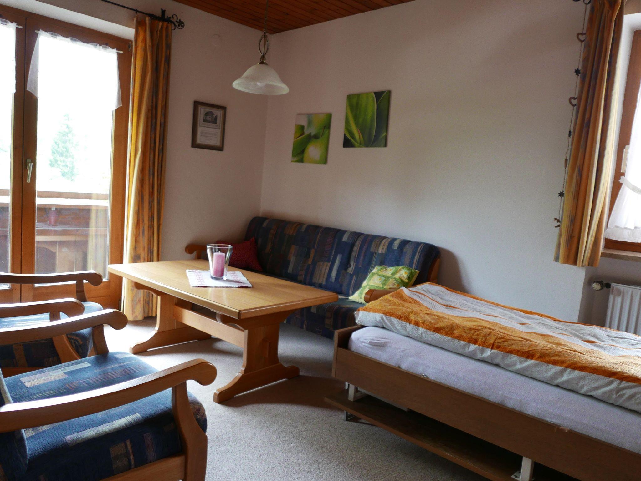Gemütliche Zwei-Zimmer-Ferienwohnung für bis zu 4 Personen. Die Wohnung verfügt über einen eigenen Eingang und Dusche/ WC, Schlafzimmer, Wohnzimmer mit zwei Schrankbetten, W-Lan, Küche und Balkon. Parkplatz direkt am Haus. Handtücher und Bettwäsche werden gestellt.