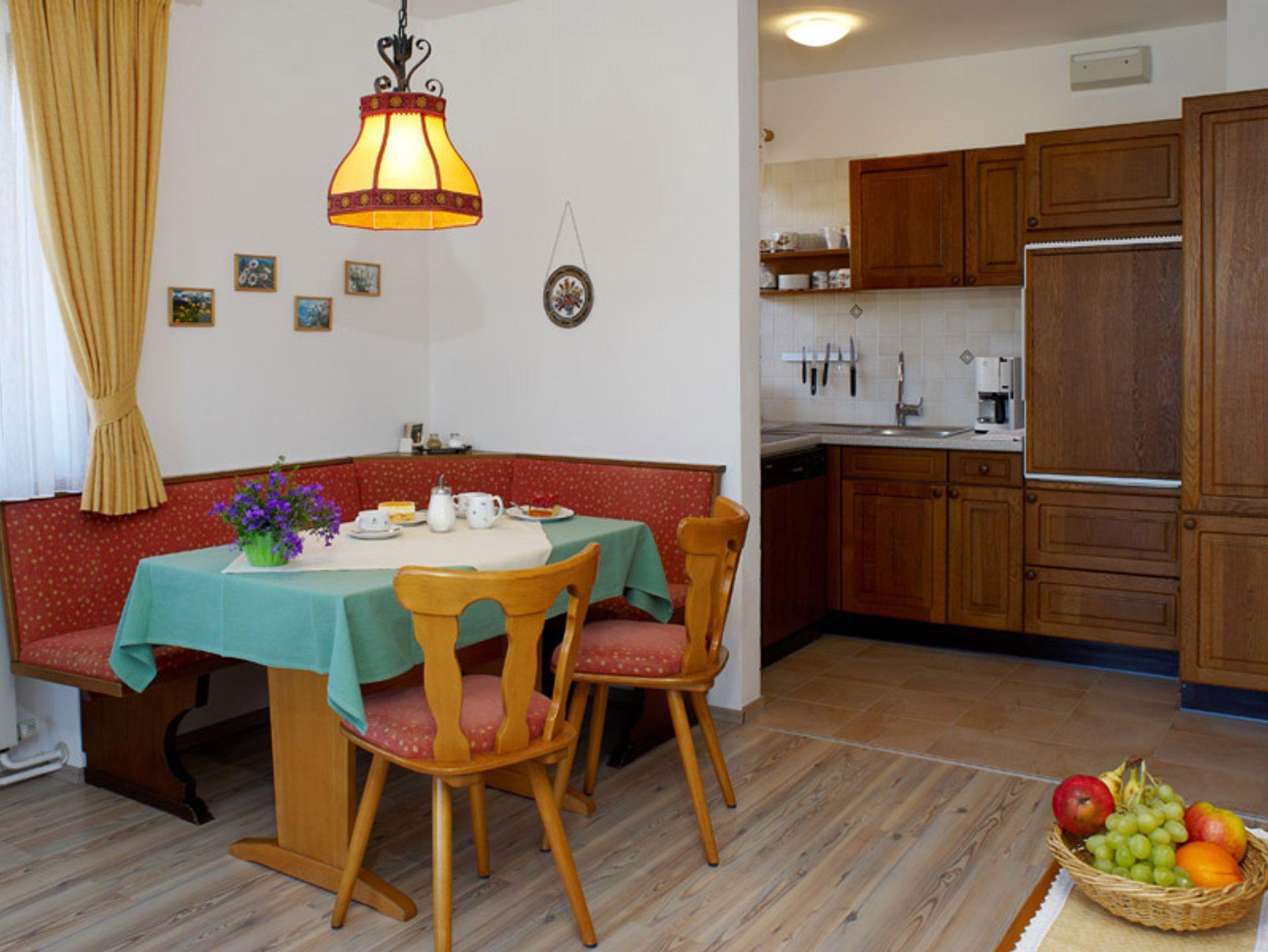 Gemütlich eingerichtete Drei-Raum Ferienwohnung (1Doppelzimmer/ 1 Einzelzimmer/ 1 Wohnzimmer mit Essecke und angrenzender Küche). Ideal für 3 Personen. Zur komfortablen Ausstattung gehört Kabel-Fernsehen, eine Stereoanlage (Radio, CD, Kassette) und ein Telefonanschluß mit der Möglichkeit zur Internetanbindung mit mitgebrachtem Modem PC. Die Küche verfügt neben einem Vierplattenherd über eine Kaffee- und Spülmaschine. Toaster und Wasserkocher sind ebenfalls vorhanden. Das Badezimmer ist mit einer vollwertigen Badewanne ausgestattet. Zwei Balkone. Südbalkon mit Gartenmöbeln und Sonnenschirm. Freier Blick ins schöne Bergpanorama.