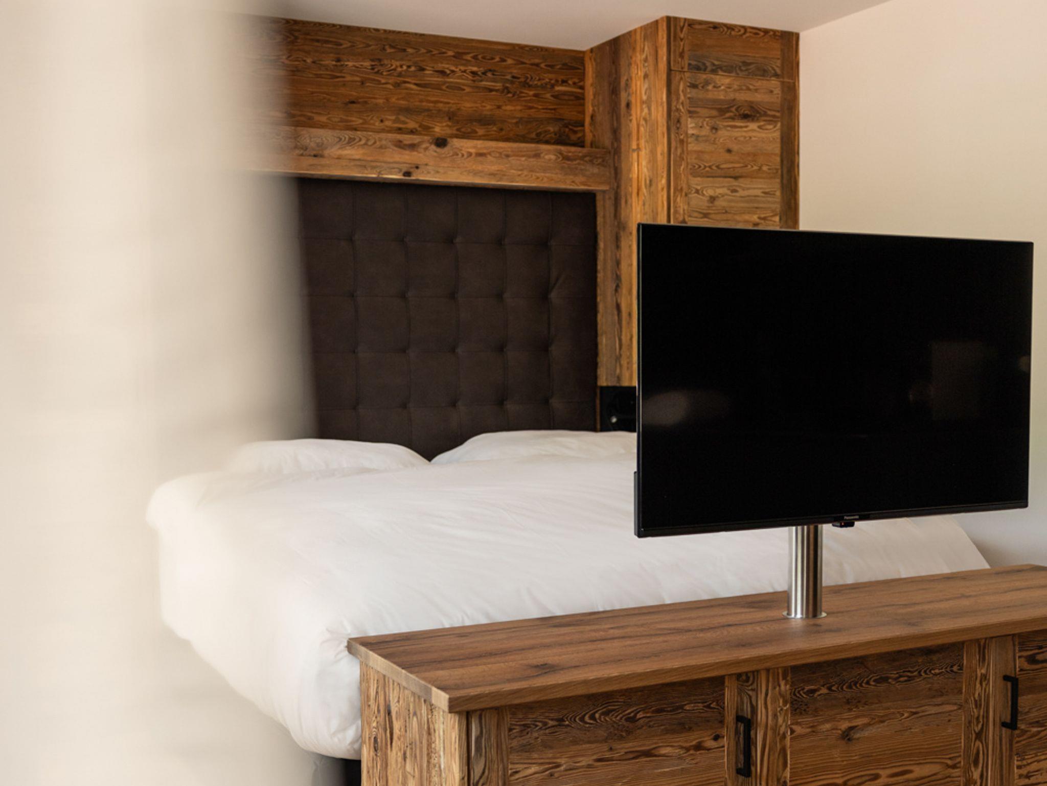 Boxspring-Doppelbett, Schrank, mit um 180° drehbarem TV (digitaler Sat-Empfang)