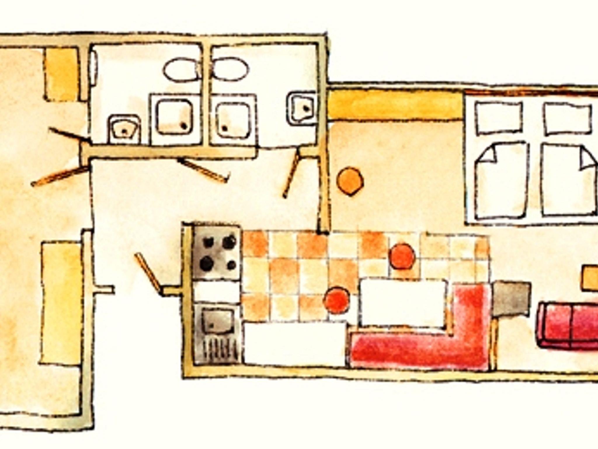 Diese Ferienwohnung kann auf Wunsch auch als 1-Raum-Wohnung gebucht werden (insg. 30 qm).