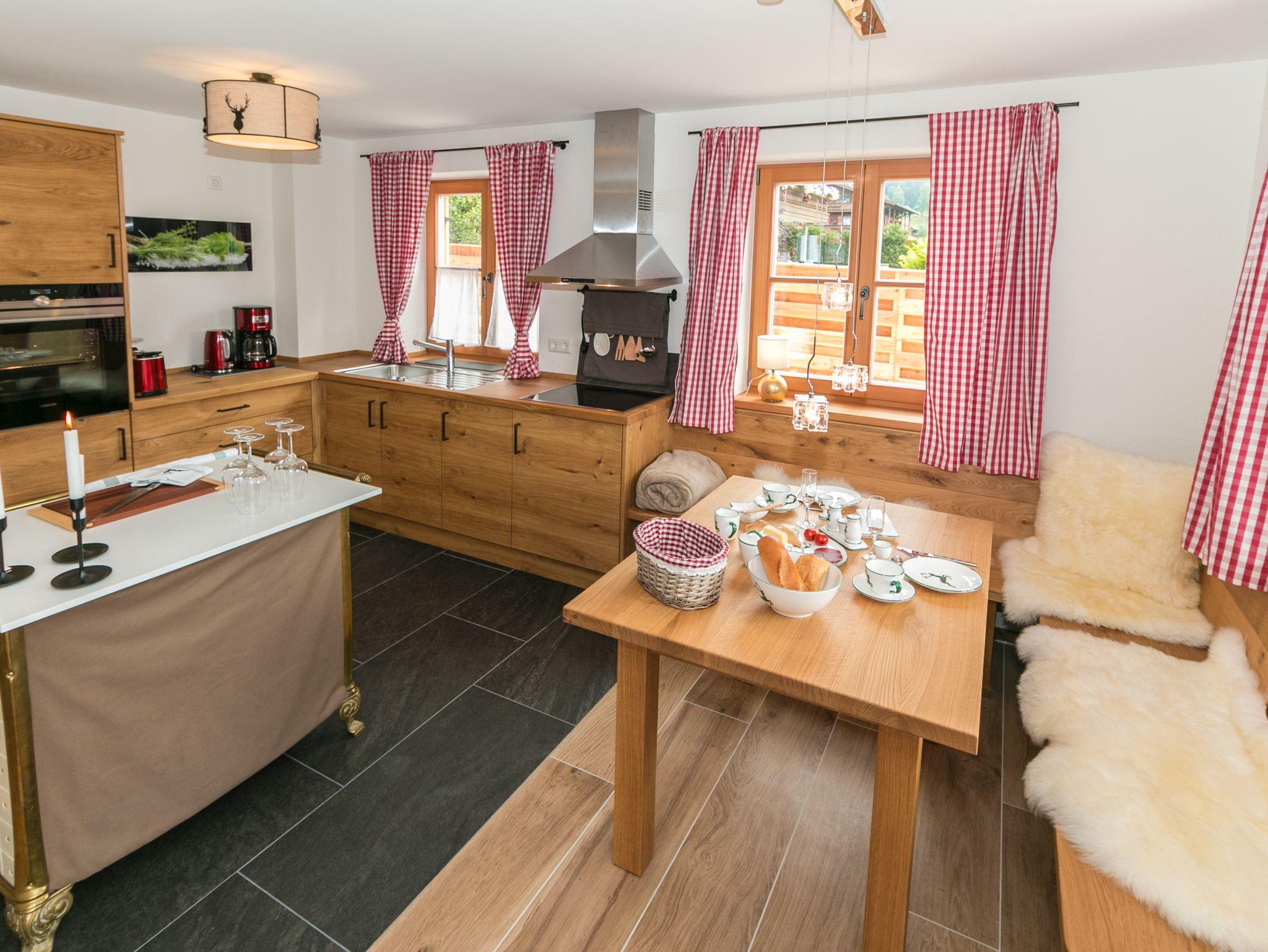 Beim Betreten unseres Luxus-Chalets Rehkitz fällt Ihr Blick zunächst auf den gemütlichen und hochwertig eingerichteten Koch- und Wohnbereich, der mit seiner exklusiven Ausstattung Ihr Herz höher schlagen lässt.