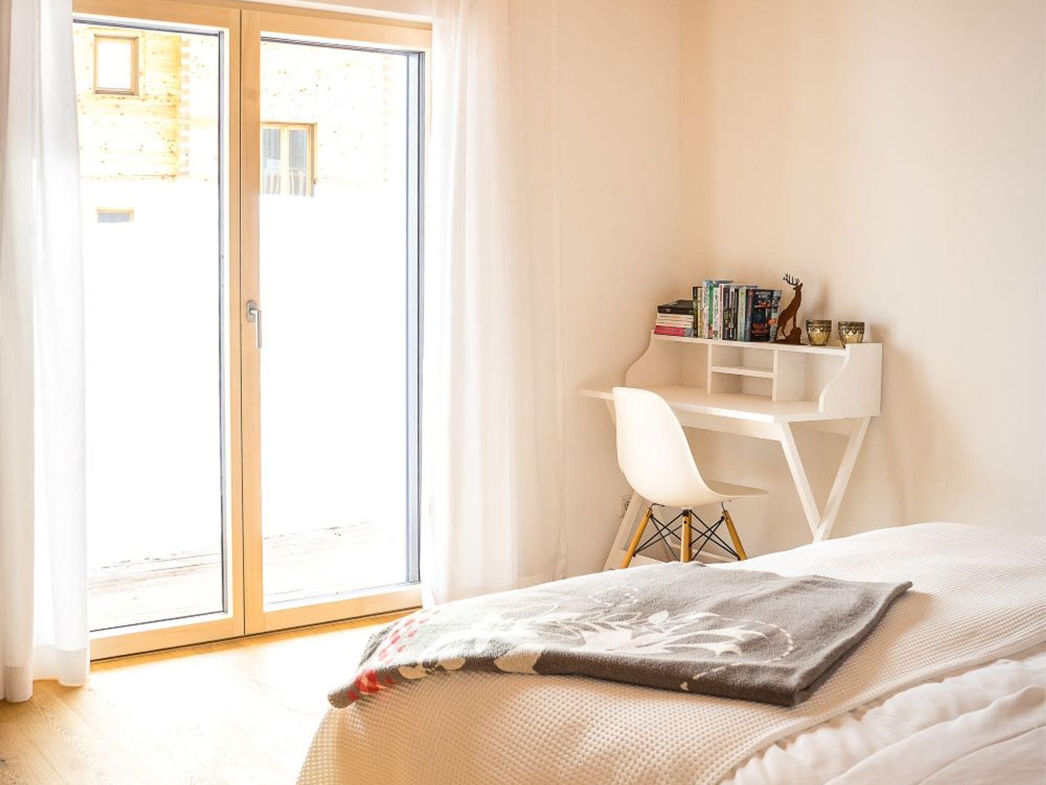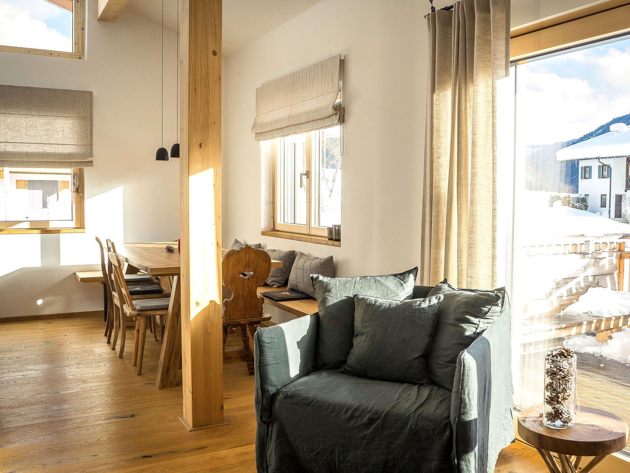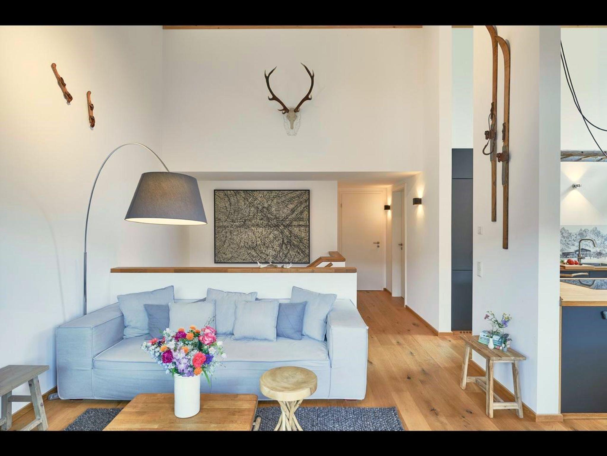 Die nahe dem Zentrum von Reit im Winkl gelegene, moderne und doch gemütliche Doppelhaushälfte Villa Wanderlust bietet höchsten Komfort auf 130 m² für bis zu sechs Personen. Genießen Sie den großartigen Ausblick auf die umliegende Bergwelt vom geräumigen Balkon aus, welcher mit einem Esstisch und Stühlen ausgestattet ist. Die Villa Wanderlust verfügt insgesamt über drei Schlafzimmer, sowie zwei Bäder. Alle Wohn- und Schlafräume sind mit Fußbodenheizung und Eichenparkett ausgestattet. Im Erdgeschoss befinden sich neben der Eingangsdiele zwei mit großen Doppelbetten ausgestattete Schlafzimmer, welche direkten Zugang zur Terrasse und dem Garten bieten, sowie ein luxuriöses Bad mit ebenerdiger Regendusche und Badewanne. Für Kinder stehen zudem ein Reisebett und ein Hochstuhl bereit. Im Obergeschoss beeindruckt vor allem ein offenes Wohnkonzept, sowie eine große Raumhöhe. Die Küche verfügt über eine Kochinsel und hochwertige Elektrogeräte wie Kühlschrank, Gefrierschrank, Induktionsherd, Backofen, Geschirrspüler, Kaffeemaschine und Nespressomaschine sowie Koch- und Backutensilien. Im Wohnraum laden ein großer Esstisch und eine bequeme Sitzecke mit Sofa, Sesseln und TV (inkl. Kabel, Sat, Netflix, Bose Radio) zu gemütlichen und gemeinschaftlichen Abenden ein. Hier finden Sie auch das dritte Schlafzimmer mit Doppelbett sowie ein weiteres Badezimmer. Der Keller ist mit einer hauseigenen Sauna inklusive Dusche und Ruheliegen ausgestattet und bietet damit Entspannung pur. Hier steht Ihnen außerdem eine Waschmaschine und ein Trockner zur Benutzung. Im Außenbereich sind Liegestühle und eine Feuerschale, sowie ein Stellplatz für Ihr Auto vorhanden. Der malerische Ortskern von Reit im Winkl ist in nur wenigen Minuten zu Fuß bequem erreichbar. Einige der besten Restaurants und Cafés, sowie eine Vielzahl an Geschäften laden zu einem gemütlichen Ortsbummel ein. Auch Wanderer kommen hier auf ihre Kosten, denn viele der Wege starten direkt im Zentrum. WLAN und freier Eintritt ins Freibad sind einige der Vorteile bei uns. Die Villa Wanderlust ist ein Biohaus von Baufritz ®. Alle Baumaterialien sind baubiologisch geprüft und schadstofffrei. Bei der Einrichtung wurde auf Nachhaltigkeit geachtet. Die Küche besteht aus 100% recycelten Materialien. Viele Kunst- und Designelemente sorgen für eine hohe Wohnqualität.