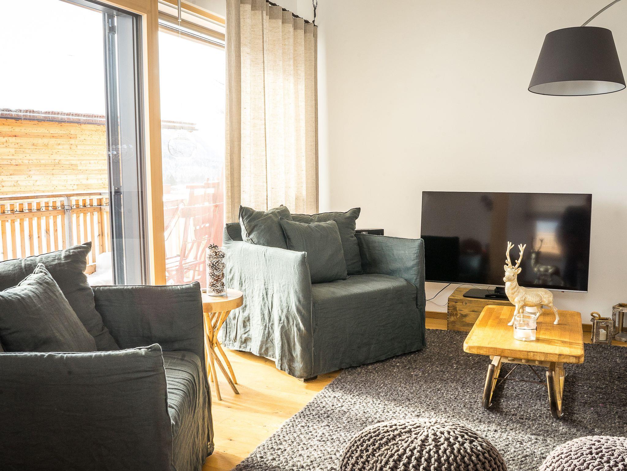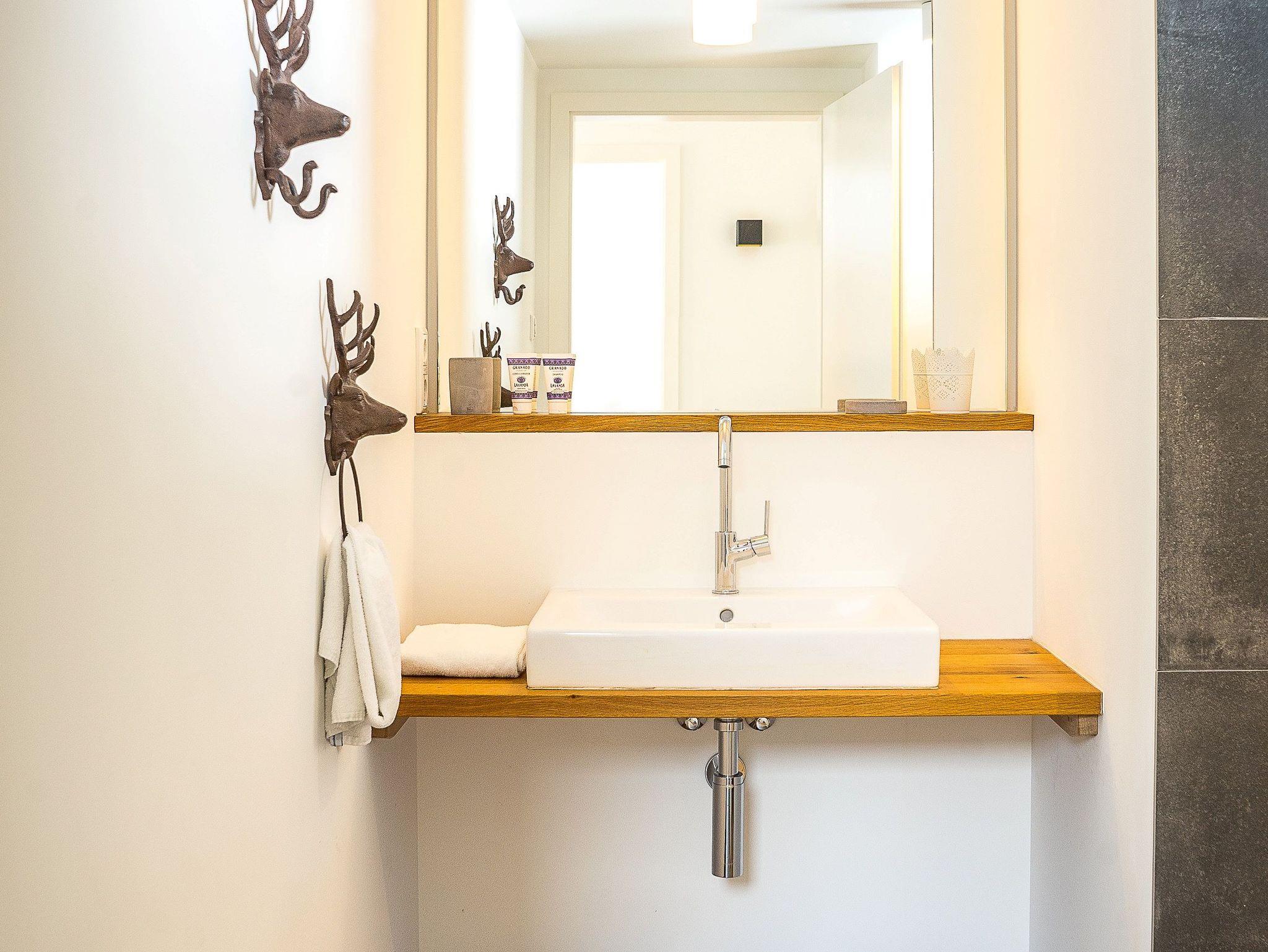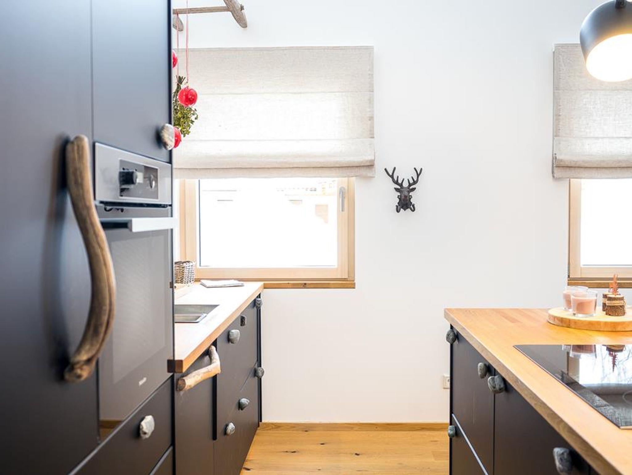 Die nahe dem Zentrum von Reit im Winkl gelegene, moderne und doch gemütliche Doppelhaushälfte Villa Wanderlust bietet höchsten Komfort auf 130 m² für bis zu sechs Personen. Genießen Sie den großartigen Ausblick auf die umliegende Bergwelt vom geräumigen Balkon aus, welcher mit einem Esstisch und Stühlen ausgestattet ist. Die Villa Wanderlust verfügt insgesamt über drei Schlafzimmer, sowie zwei Bäder. Alle Wohn- und Schlafräume sind mit Fußbodenheizung und Eichenparkett ausgestattet. Im Erdgeschoss befinden sich neben der Eingangsdiele zwei mit großen Doppelbetten ausgestattete Schlafzimmer, welche direkten Zugang zur Terrasse und dem Garten bieten, sowie ein luxuriöses Bad mit ebenerdiger Regendusche und Badewanne. Für Kinder stehen zudem ein Reisebett und ein Hochstuhl bereit. Im Obergeschoss beeindruckt vor allem ein offenes Wohnkonzept, sowie eine große Raumhöhe. Die Küche verfügt über eine Kochinsel und hochwertige Elektrogeräte wie Kühlschrank, Gefrierschrank, Induktionsherd, Backofen, Geschirrspüler, Kaffeemaschine und Nespressomaschine sowie Koch- und Backutensilien. Im Wohnraum laden ein großer Esstisch und eine bequeme Sitzecke mit Sofa, Sesseln und TV (inkl. Kabel, Sat, Netflix, Bose Radio) zu gemütlichen und gemeinschaftlichen Abenden ein. Hier finden Sie auch das dritte Schlafzimmer mit Doppelbett sowie ein weiteres Badezimmer. Der Keller ist mit einer hauseigenen Sauna inklusive Dusche und Ruheliegen ausgestattet und bietet damit Entspannung pur. Hier steht Ihnen außerdem eine Waschmaschine und ein Trockner zur Benutzung. Im Außenbereich sind Liegestühle und eine Feuerschale, sowie ein Stellplatz für Ihr Auto vorhanden. Der malerische Ortskern von Reit im Winkl ist in nur wenigen Minuten zu Fuß bequem erreichbar. Einige der besten Restaurants und Cafés, sowie eine Vielzahl an Geschäften laden zu einem gemütlichen Ortsbummel ein. Auch Wanderer kommen hier auf ihre Kosten, denn viele der Wege starten direkt im Zentrum. WLAN und freier Eintritt ins Freibad sind einige der Vorteile bei uns. Die Villa Wanderlust ist ein Biohaus von Baufritz ®. Alle Baumaterialien sind baubiologisch geprüft und schadstofffrei. Bei der Einrichtung wurde auf Nachhaltigkeit geachtet. Die Küche besteht aus 100% recycelten Materialien. Viele Kunst- und Designelemente sorgen für eine hohe Wohnqualität.