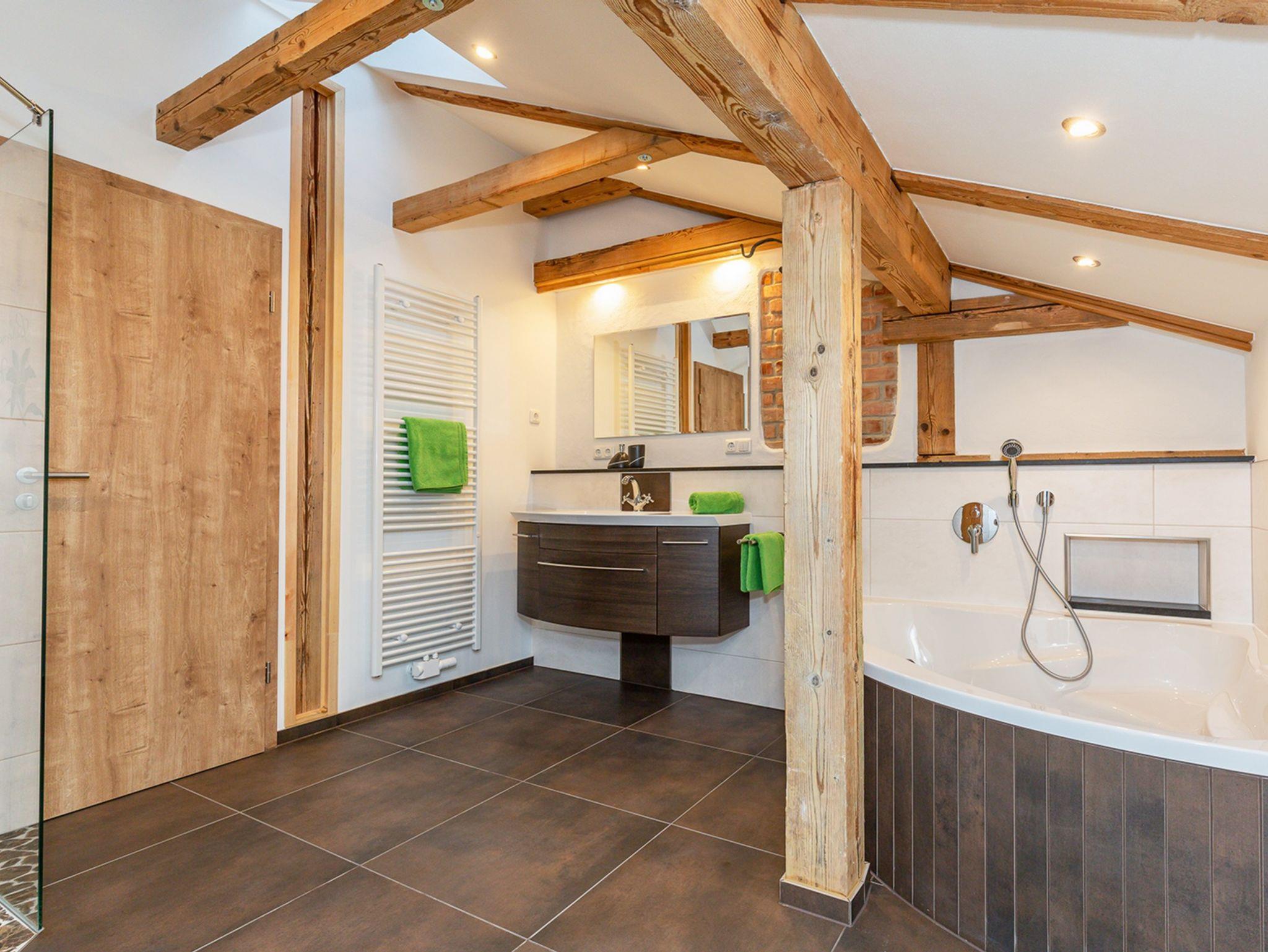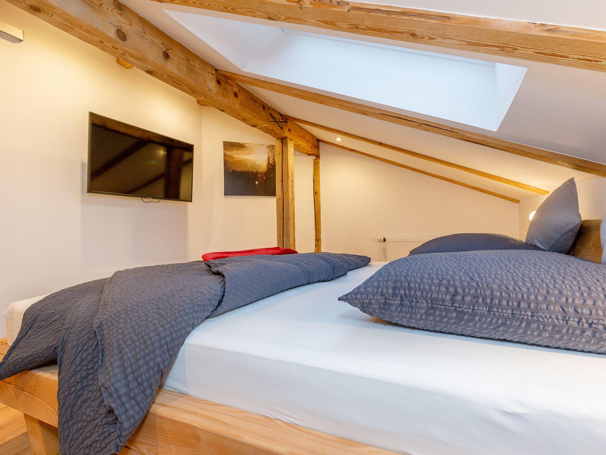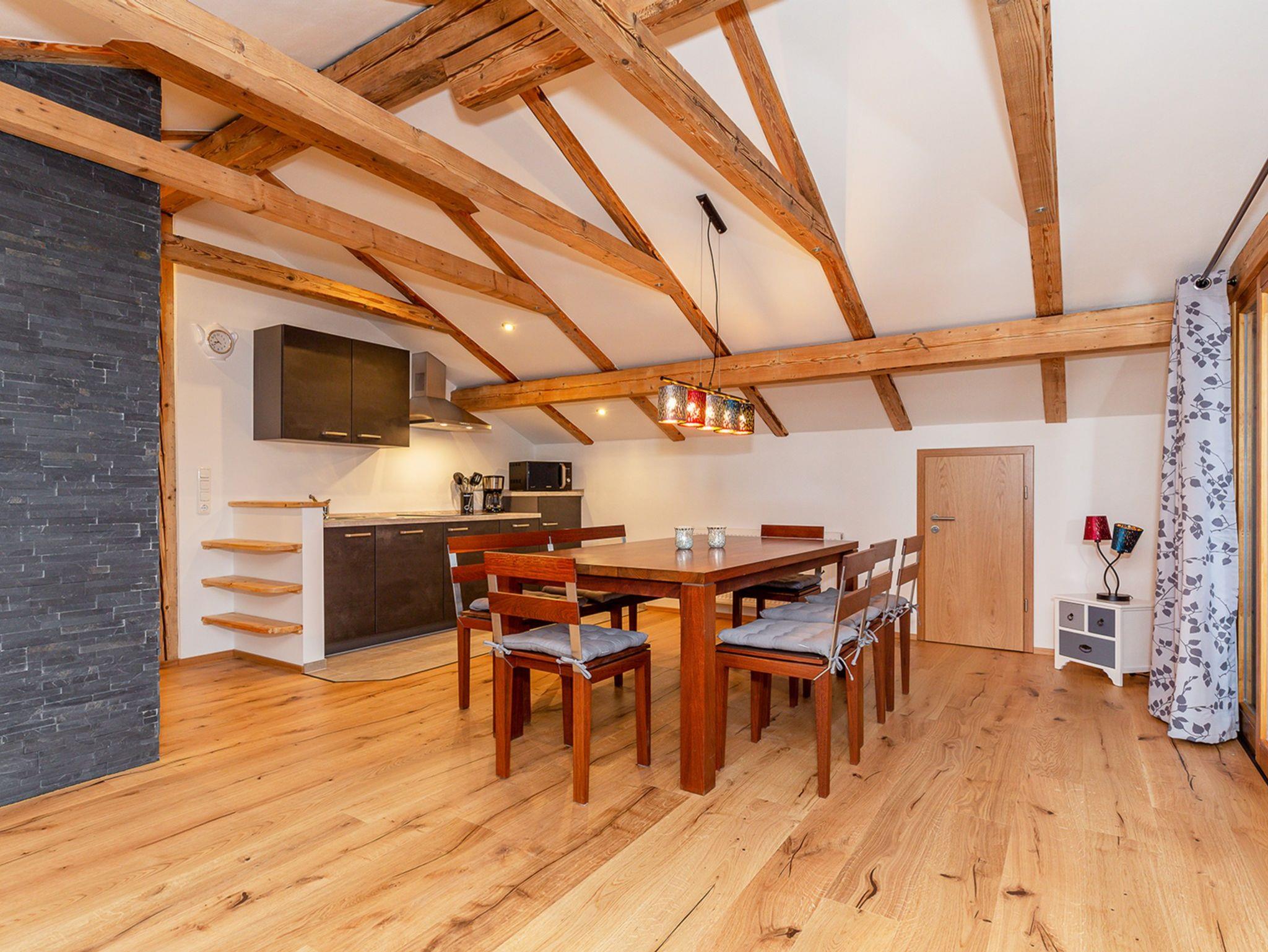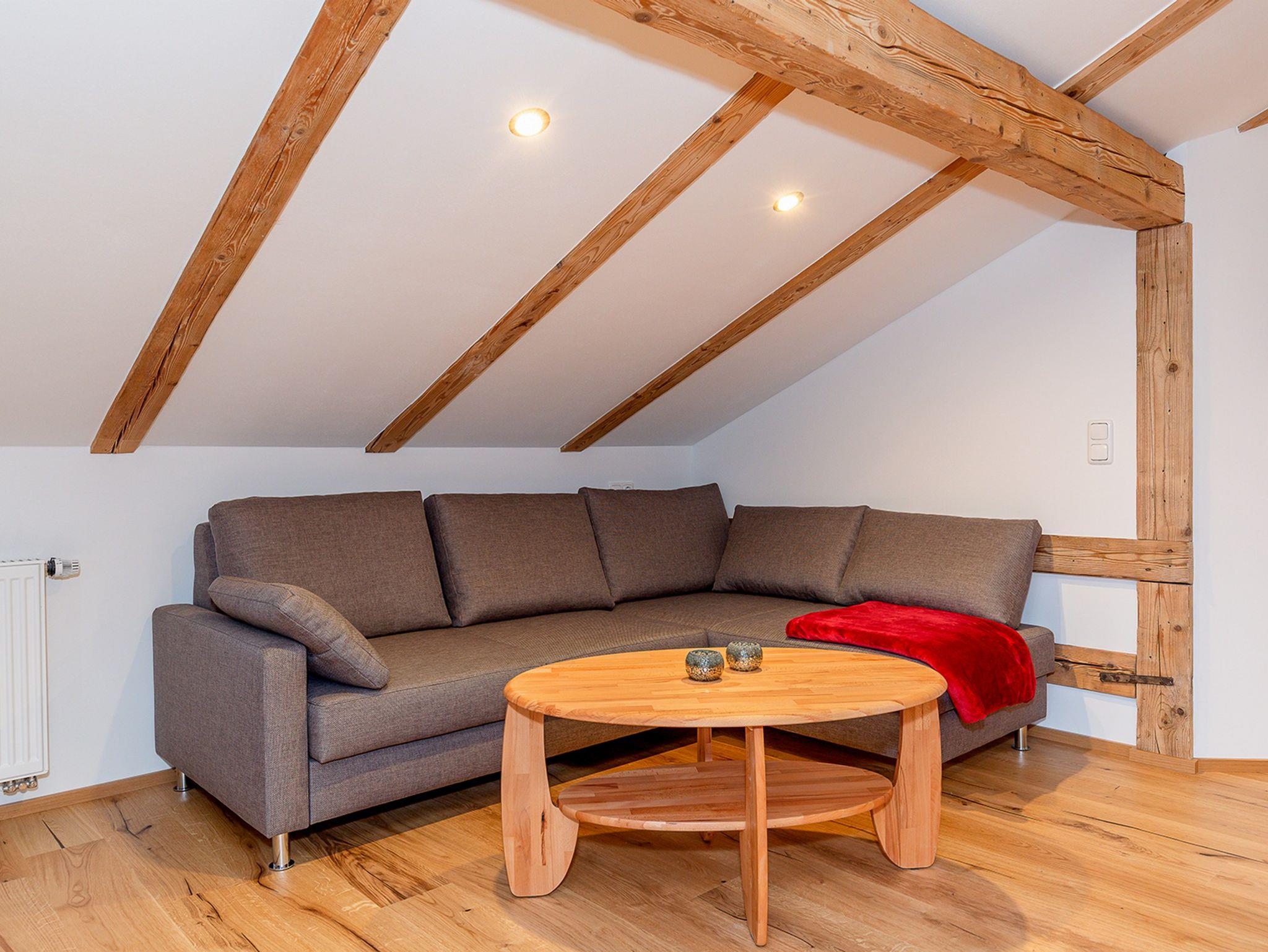 Unsere großzügige, helle 2-Zimmer-Ferienwohnung Panorama bietet Platz für 1-4 Personen und verfügt über einen Balkon mit herrlichem Blick ins Kaisergebirge und die Chiemgauer Alpen. Die Wohnung befindet sich im Dachgeschoss und wurde mit viel Liebe zum Detail 2019 aus- und umgebaut. Tradition und Moderne waren unser Leitfaden und so wurden z.B. alle Holzbalken per Hand abgeschliffen, um die natürliche Struktur zu erhalten. Die gemütliche Sitzecke mit der großen Eckcouch bietet genug Platz für entspannte Fernsehabende mit einem modernen HD-Flachbildschirm. In der vollausgestatteten Einbauküche mit 4-Platten-Herd, Spülmaschine und Mikrowelle finden Sie alles was der Küchenchef benötigt – so macht das Kochen auch im Urlaub Spaß. Auch am großen Esstisch genießen Sie einen wunderbaren Blick auf das Kaisergebirge. Oder vielleicht ein Gläschen Wein zum Sonnenuntergang auf ihrem Panoramabalkon? Im geräumigen Badezimmer finden Sie eine gemütliche Eckbadewanne sowie eine separate ebenerdige Dusche, Fön, Waschtisch und WC. Die Fußbodenheizung verspricht Ihnen warme Füße auch an kühleren Tagen. Im gemütlichen separaten Schlafzimmer können Sie durch das Dachfenster den Sternenhimmel betrachten oder Ihren Fernsehabend im Bett fortsetzen.
