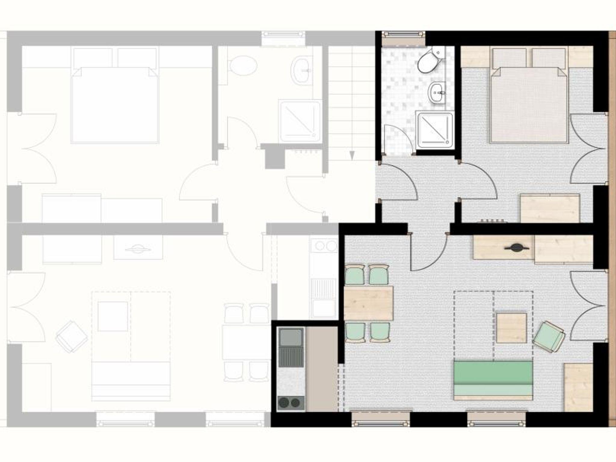 Haus Huber, Zwei-Raum-Ferienwohnung 40qm, Dusche/WC, Extra-Schlafzimmer, Küche, Balkon