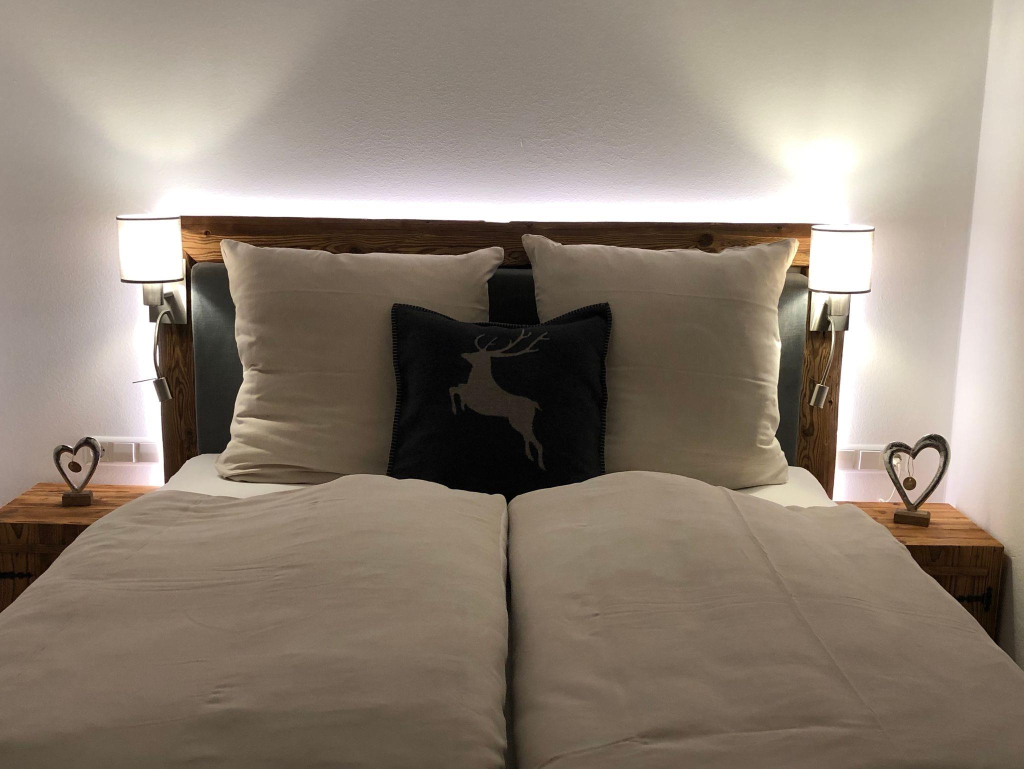 Highlights der Wohnung sind der Blick vom Essbereich und Balkon in die grandiose oberbayerische Bergwelt, zwei helle neue Bäder mit Walk-in Regenduschen in modernem Ambiente, eine moderne Einbauküche (incl. Induktionsherd) und zwei sehr komfortable Betten ( u.a. ein Boxspringbett mit LED-dimmbarem Hintergrundlicht). Zwei Flachbild-TV's ( 1 Smart-TV mit Netflix-App ), ein schnelles WLAN (HOME-OFFICE tauglich) und allergikerfreundliche Betten und Böden runden den Komfort ab.