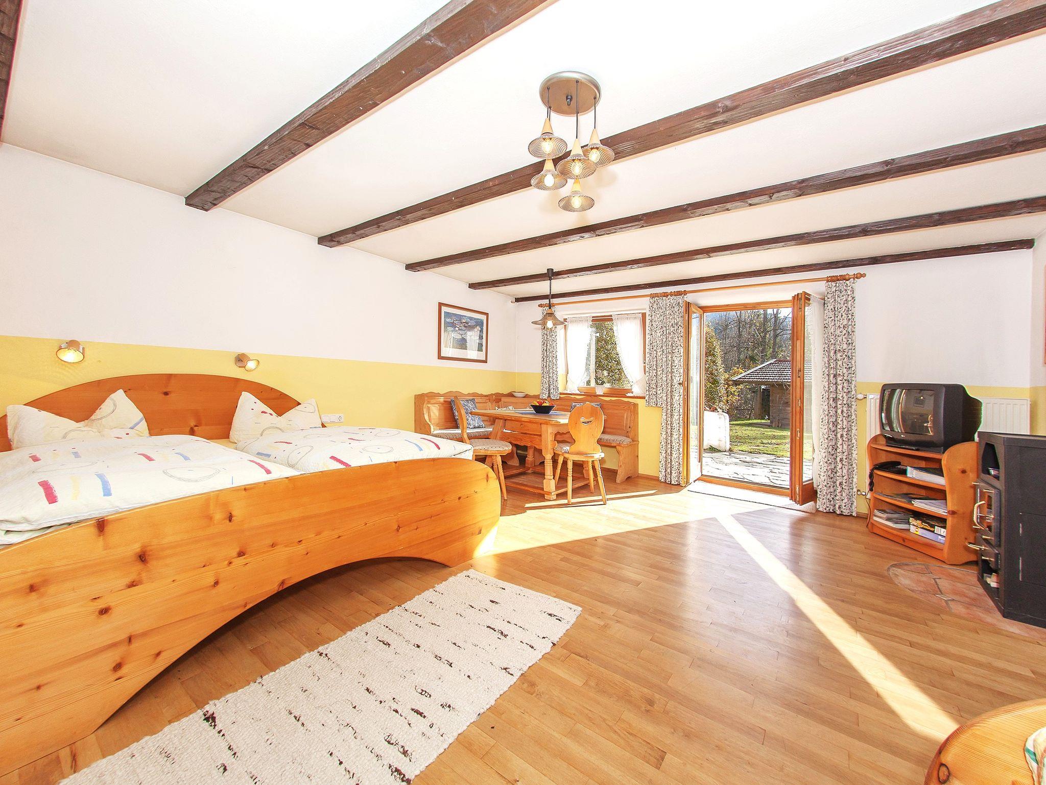 Diese charmante 1-Raumwohnung mit Terrasse und eigenem Eingang ist der perfekte Ort für Paare oder kleine Familien, die eine ganz besondere Atmosphäre suchen. Der offene Wohn-Schlafraum mit gemütlicher Eckbank, Kabel-TV und dem Schwedenofen (Brennholz auf Anfrage) schafft eine behagliche Stimmung. Hier können Sie den Tag in aller Ruhe beginnen oder bei einem gemütlichen Abend mit Blick auf den Garten ausklingen lassen. Das Doppelbett im Schlafbereich und die zusätzliche Schlafgelegenheit bieten Ihnen den Raum, den Sie brauchen. Das Badezimmer ist mit Dusche, WC und Fön ausgestattet, damit Sie sich frisch und erfrischt fühlen können. Die Terrasse mit Gartenmöbeln ist ein kleines Paradies für sich – hier können Sie den Tag in der Natur genießen.