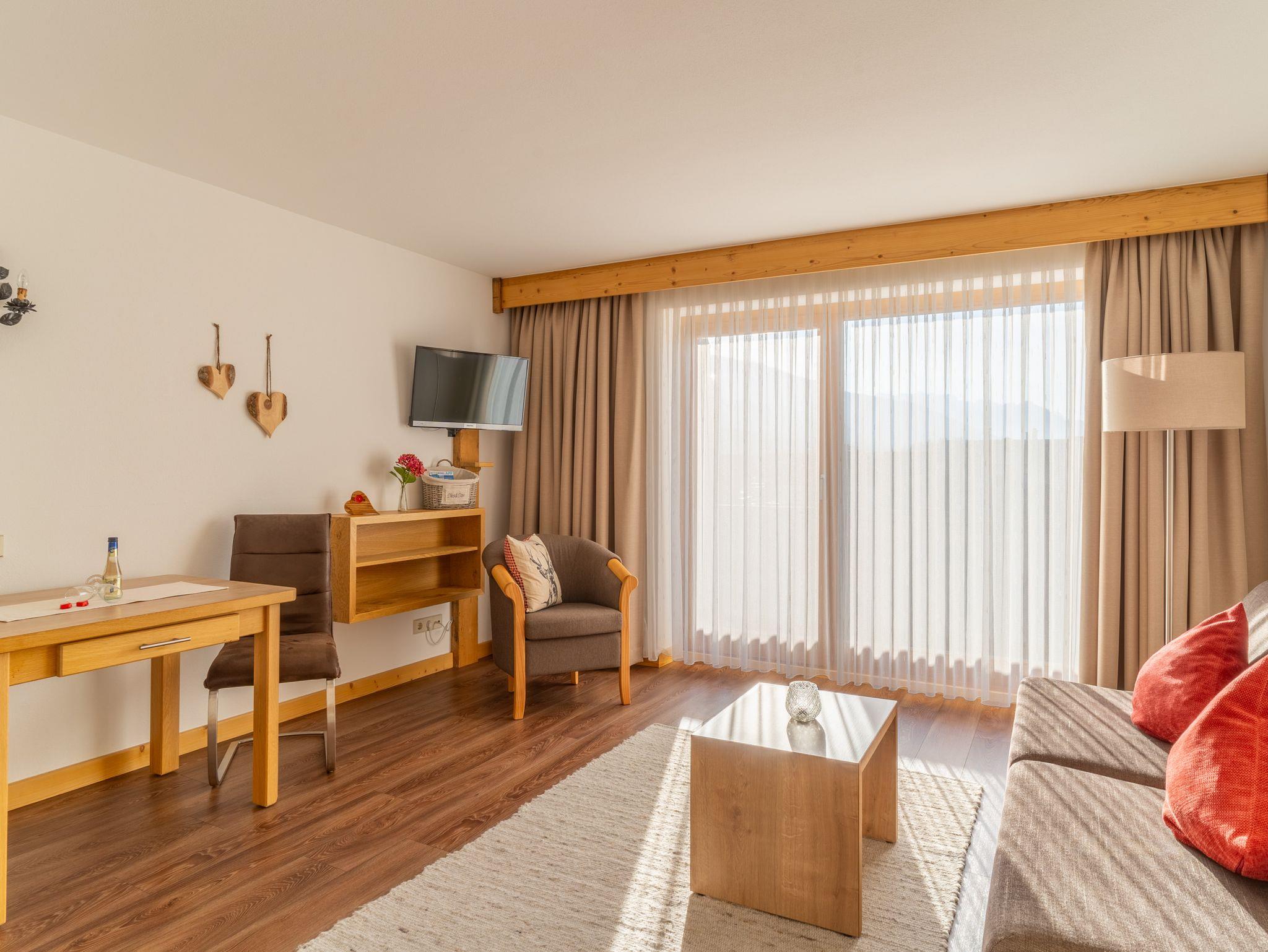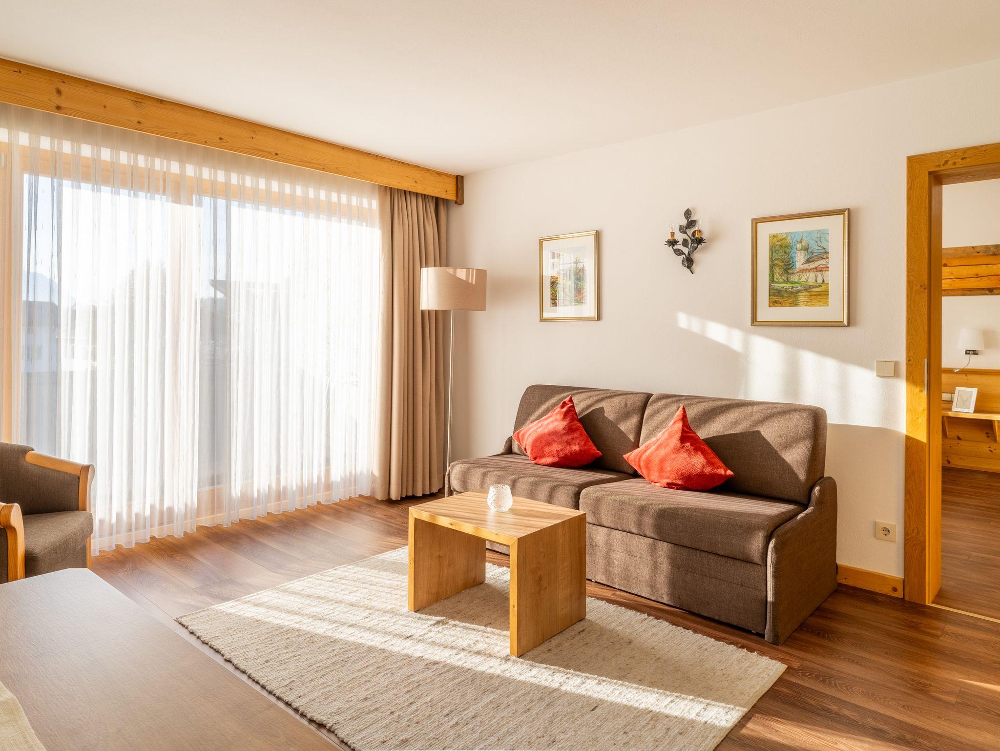 Wir verfügen über sonnige, große, mit viel Liebe zum Detail und Komfort komplett neu renovierte Ferienwohnungen mit Bergblick, die Sie einladen, sich zu entspannen und ein paar erholsame Tage in dieser herrlichen Gegend zu verbringen. Unsere Zweiraumwohnungen verfügen über Schlafzimmer mit Dusche/WC, die Dreiraumwohnungen über zwei separate Schlafzimmer mit Dusche/WC, nahezu alle zusätzlich mit Flat-TV im den Schlafzimmern. Alle neu renovierten Wohnungen haben moderne Einbauküchen mit Geschirrspüler, Backofen und 4-Platten-Cerankochfeld, gemütliche und sonnige Wohn-/Esszimmer, Flat-TV, große Balkone und vieles mehr.