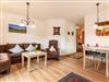 Die freundlich und modern eingerichtete 2-Zimmer-Wohnung verfügt über einen großen Wohn- und Essbereich, ein Schlafzimmer, ein Bad mit Dusche und WC, und einen schönen Balkon mit Bergblick.