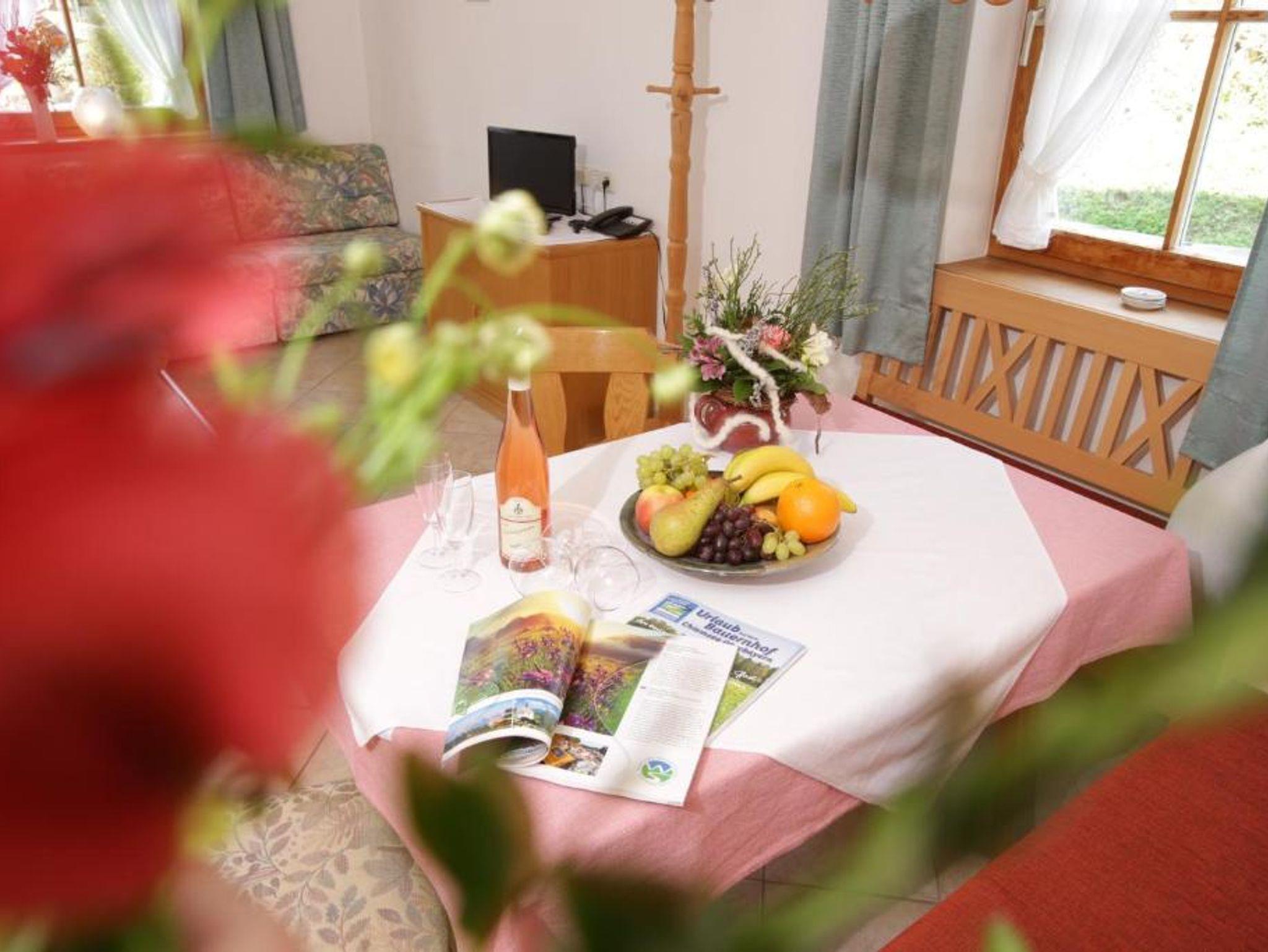 IIn unserem familienfreundlichen Bauernhof in ruhiger Südhanglage im Ortsteil Birnbach bieten wir Einraum– u. Zweiraumferienwohnungen für 2-4 Personen, eine Dreiraumwohnung für 2 Erwachsene und bis 4 Kinder. In den Zweiraumwohnungen im EG u. 1.OG ist die Küche mit einem 4 Platten E-Herd, Backofen, Kühlschrank und Spülmaschine ausgestattet. In den Einraumwohnungen befindet sich ein 2 Platten E-Herd, Mikrowelle und Kühlschrank. Einen Minibackofen können wir zur Verfügung stellen. In der Dreiraumwohnung befindet sich ebenfalls eine gut ausgestattete Küche mit 4 Platten E-Herd, Backofen Kühlschrank und Spülmaschine. Unseren Gästen steht ein Aufenthaltsraum zur Verfügung und mit einem Frühstück können Sie sich verwöhnen lassen oder mit Freunden bei einem gemütlichen beisammen sein den erlebnisreichen Tag ausklingen lassen. Im Garten oder auf unseren Terrassen findet sich Platz zum Grillen und sie können den Abend zu genießen. Zur Versorgung steht ein Brötchen-u. Getränkeservice bereit.