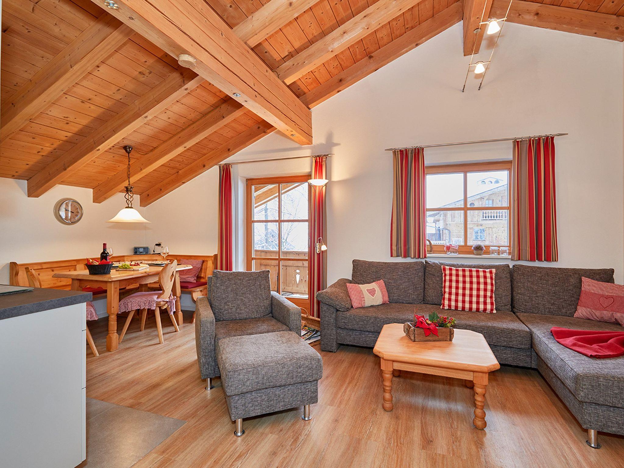 Dieses exklusive Appartement befindet sich im Obergeschoss in herrlicher und sehr ruhiger Wohnlage in unmittelbarer Zentrumsnähe. Die Wohnung ist im bayerisch-ländlichen Stil eingerichtet. Der Wohnraum verfügt über eine Sitzecke, (Doppelbett-Schlafsofa), Essecke, Kabel- TV / 32´ Flachbildschirm mit DVD, MP3 Anschluss und USB Anschluss, W-LAN und Stereoanlage. Der separate Schlafraum im Landhausstil, mit Doppelbett und Bauernschrank bietet richtige Atmosphäre für Ihren gesunden Schlaf. Ein kleiner Safe steht für Ihre Wertsachen zur Verfügung. Das Bad ist mit ebenerdiger Dusche, WC, Waschtisch und Fön ausgestattet. Die große Küchenzeile im Wohnraum mit Backofen, Mikrowelle, Kühlschrank, Geschirrspüler und vier Plattenherd reicht nicht nur für den kleinen Hunger. Diverse Küchenmaschinen stehen für Sie bereit. Der große, möblierte Balkon lädt jederzeit zum Verweilen ein. Ein Skiraum u. Abstellraum steht Ihnen zur Verfügung. Für Ihren Pkw steht ein Stellplatz bereit. Der Ortskern mit allen Einrichtungen liegt ca. 4 min. entfernt. In unmittelbarer Nähe befinden sich das Hallenbad, Luftgewehr-Schießstand, die Loipen, Kinderskischule, Spielplatz, Kurpark, Gaststätten, Apres-Ski - Schirmbar und die Tourist-Info, von wo aus die Busse zur Winklmoos-Gondelbahn abfahren. Vom Haus aus können Sie unmittelbar mit den Skiern zur Skischule und zu den Skibussen fahren.