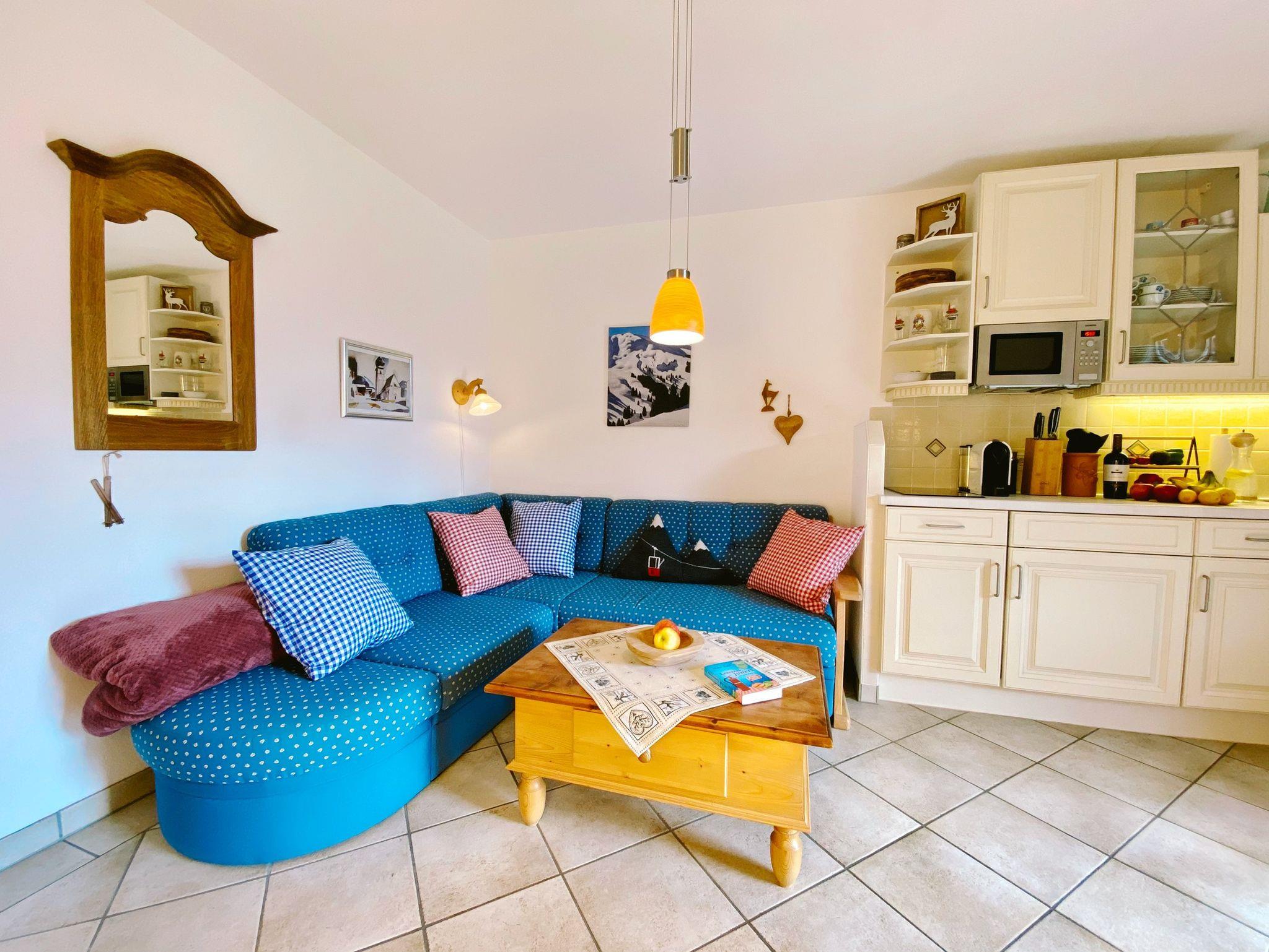 Genießen Sie vom Balkon aus die Abendsonne und den herrlichen Blick auf den Unterberg und das Kaisergebirge. Die stilvoll eingerichtete Wohnküche lädt zum Verweilen ein und lässt dank Ihrer guten Ausstattung mit Kochfeld, Mikrowelle, Kühlschrank, Geschirrspüler, Nespresso-Maschine und Digital-Radio nichts vermissen.
