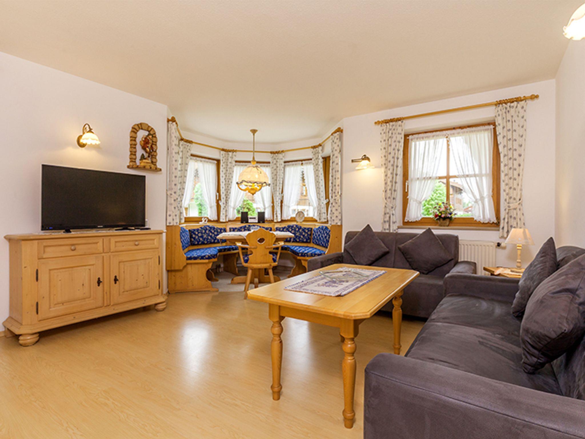 Die im ruhigen Ortsteil Groißenbach (nur 1,5 km zum Zentrum) gelegene Ferienwohnung „Nefen“ befindet sich im Erdgeschoss und bietet mit etwa 74m² Platz für vier Personen. Das geschmackvoll eingerichtete Wohnzimmer verfügt über eine Essecke und ein bequemes Sofa. Der klassisch bayerisch gestaltete Wohnraum strahlt vor allem dank des Kamins Wohligkeit aus und lädt zu gemütlichen Abenden ein. Die Küche ist voll ausgestattet, lässt keine Wünsche offen und bietet zudem noch einen kleinen Frühstücksplatz. Die zwei separaten Schlafzimmer sind mit einem Doppelbett, beziehungsweise mit zwei Einzelbetten ausgestattet und versprechen erholsamen Schlaf. Das moderne Badezimmer der Wohnung verfügt über eine Wanne, WC und Dusche. Die sonnige Terrasse lädt besonders an sonnigen Tagen zum Verweilen ein und bietet einen herrlichen Blick auf die umliegende Bergwelt. Weiters steht für Gäste ein Parkplatz zur Verfügung und auch das hauseigene W-LAN, sowie der Skiraum können kostenfrei genutzt werden.Sehr ruhig, am südwestlichen Ortsrand von Reit im Winkl gelegen, stellt die Wohnung den optimalen Ausgangspunkt für sämtliche Aktivitäten in der Umgebung dar. Das Langlaufstadion mit Einstieg in die Loipen und der Festsaal sind zu Fuß in wenigen Gehminuten erreichbar. Genießen Sie die Natur und entdecken Sie die unzähligen Wanderwege rund um das wunderschöne Flussgebiet der Lofer. Auch das Zentrum von Reit im Winkl, sowie einige Restaurants und Supermärkte zu Fuß in 15-20 Minuten erreichbar. Zudem befindet sich die Bushaltestelle, an der auch der Skibus hält, in unmittelbarer Nähe, was Ihnen eine autofreie Anreise ins Skigebiet ermöglicht. Als Geheimtipp können wir einen Besuch im nahegelegenen Kunsthandwerkhaus Weber empfehlen.