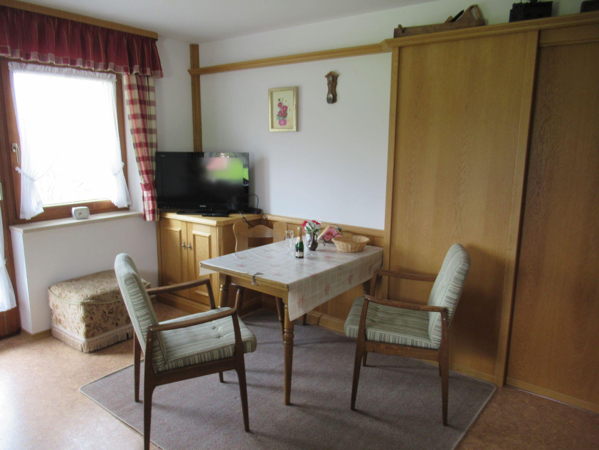 Unsere Ferienwohnung bis zu 3 Personen besitzt eine große Wohnküche (14 m²) mit TV und Stereoanlage. Schlafzimmer (20 m²) mit Dusche und WC sowie ein großer Südbalkon.