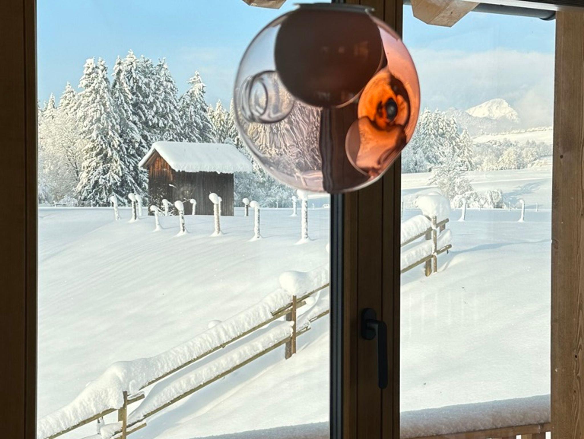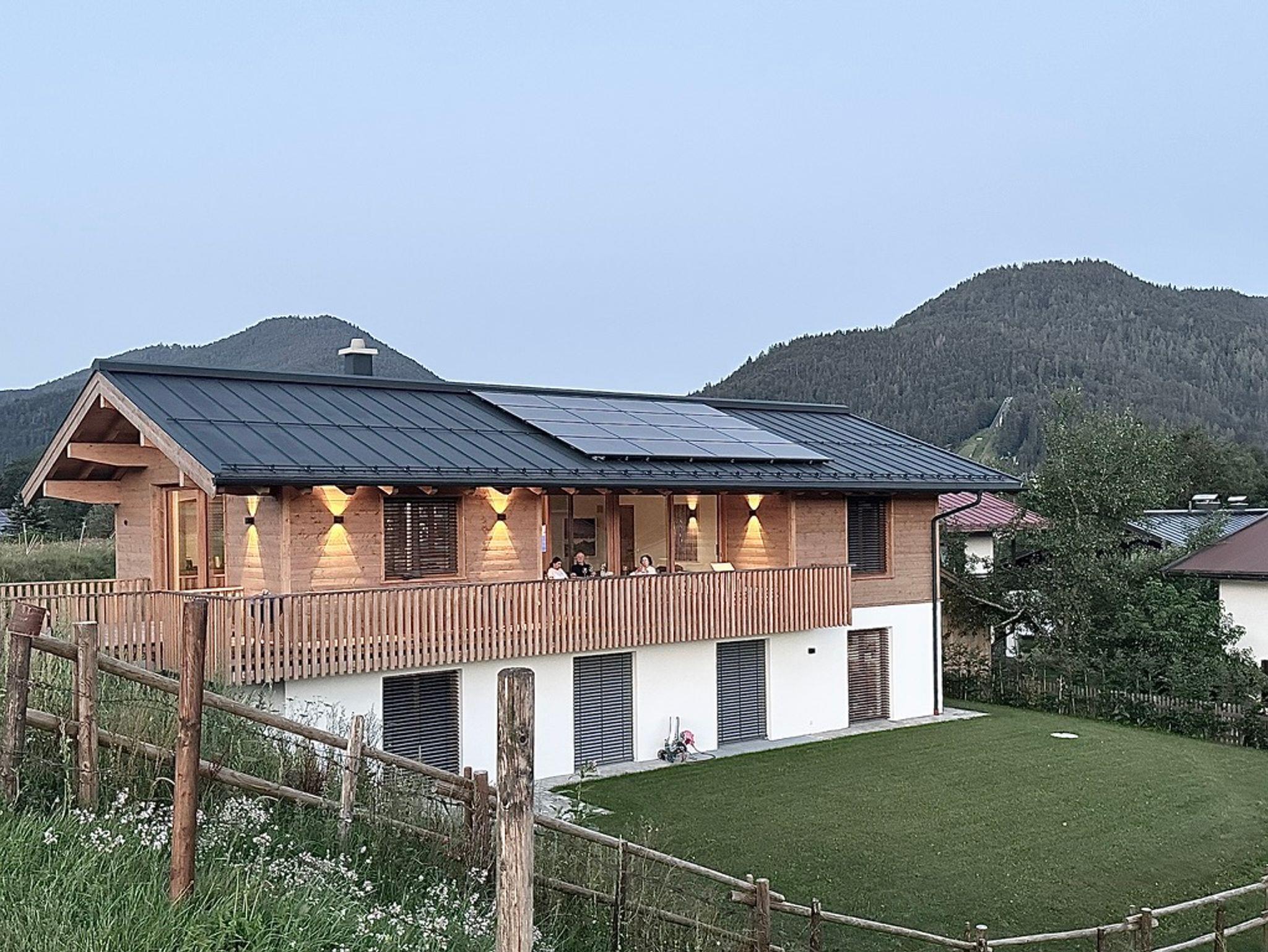 Die besondere Lage vis-a-vis des Ortes mit der Kirche im Mittelpunkt, nur getrennt durch eine Auenfläche mit Wiesengrün, schafft reizvolle Ausblicke in die Landschaft, insbesondere auf das Massiv des Zahmen Kaisers, den Unterberg oder auf den Golfplatz von Reit im Winkl/Kössen. Österreich ist zum Greifen nahe. Der Ausblick in die Natur ist zu jeder Jahreszeit ein besonderes Erlebnis. Das Erwachen der Natur im Frühjahr mit den letzten Schneefeldern auf den Bergen, der Morgentau über den Feldern und Wäldern, das Erleben der sommerlichen Wärme mit saftigem Grün der Blumenwiesen, der goldene Herbst mit grasenden Kühen jenseits des Gartens oder die direkt am Haus vorbeiführende Langlaufloipe laden zu jeder Jahreszeit zum Verweilen in der Natur ein. Hinter dem Haus verläuft unmittelbar die Loipe der Ortsrunde, die Langlaufski können noch auf dem Grundstück angeschnallt werden. Viele Wandermöglichkeiten starten unmittelbar vor der Haustür und führen über Wiesen und durch Wälder vorbei am nah gelegenen Gewässer der Lofer mit seinem klarem Gebirgswasser. Der nächste Ski- und Rodelhang ist fußläufig in wenigen Minuten erreichbar. Auch die reizvolle Laufstrecke als Dorfrunde entlang der Lofer, über Wiesen, Pfade und Wege zum Ortsteil Blindau und zum Ausgangspunkt zurück, führen am Haus vorbei.