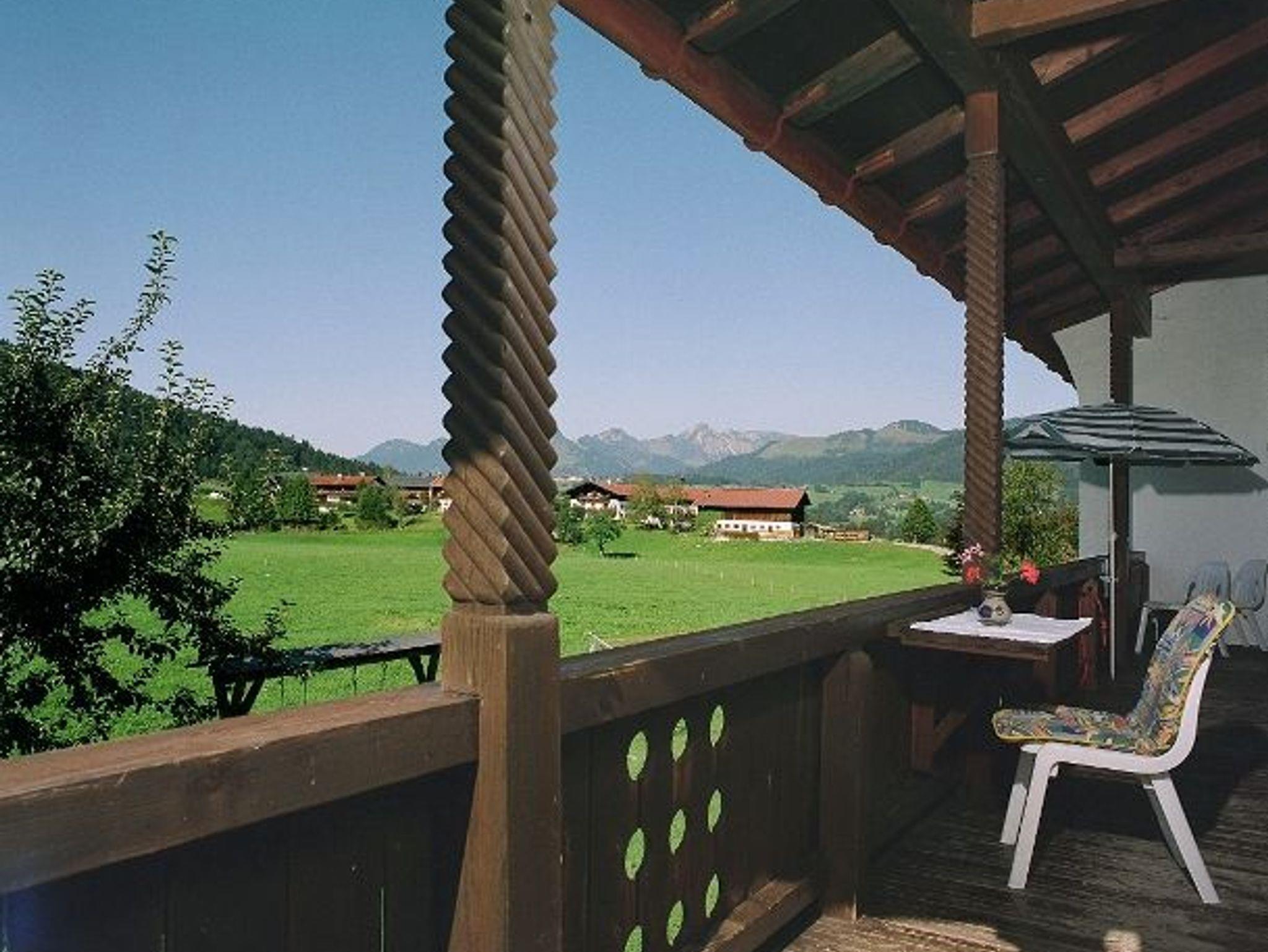 Unser Zimmer Hausberg befindet sich im 1. Stock, hat eine gemütliche Sitzecke und einen schönen Balkon mit wunderschöner Aussicht in Richtung Garten, Klausenberg, Unterberg und Geigelstein.