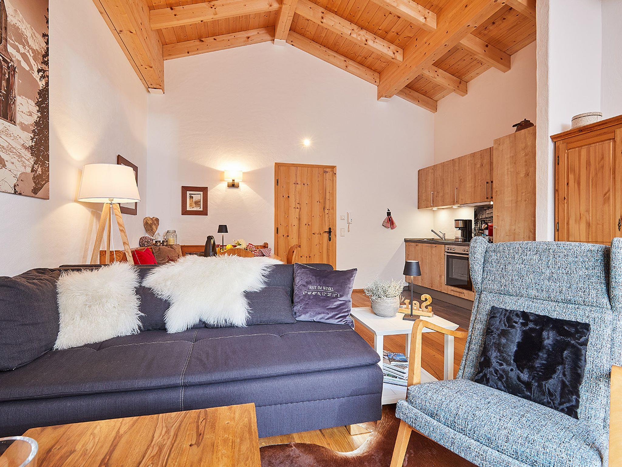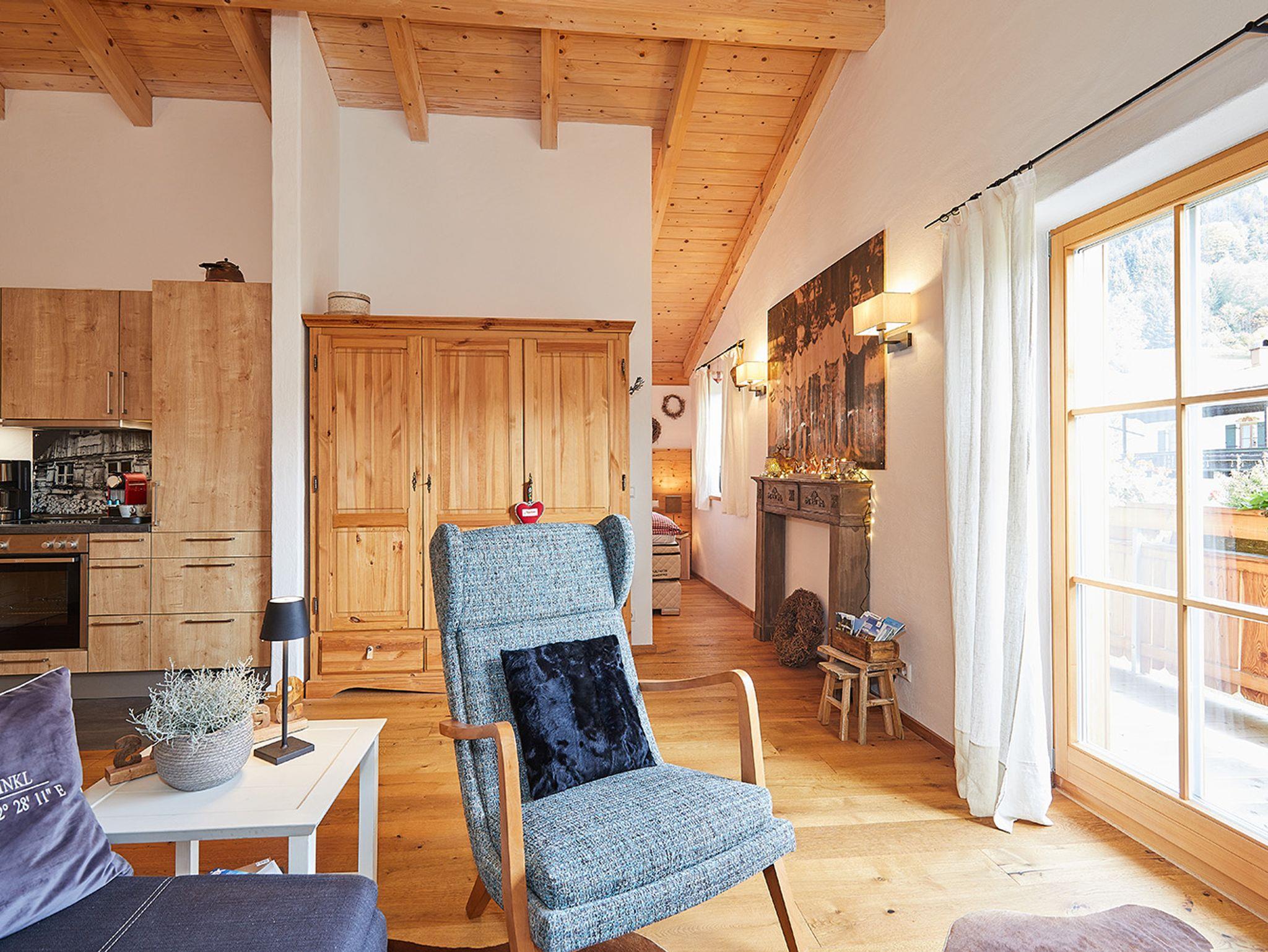 Ankommen und wie zuhause fühlen! Ihre Wohnung befindet sich in einem 2018 erbauten rustikalen Landhaus im ersten Stock. Die warme Atmosphäre der Holzböden, der offene Dachstuhl und die gemütliche Einrichtung wird Sie begeistern. Vom großzügigen Wohn-, Ess- und Kochbereich haben Sie Zugang zum eigenen Balkon mit Blick auf den Garten und die Berge. Geniessen Sie schon morgens hier einen Kaffee in der Sonne, bevor Sie in einen erlebnisreichen Tag starten.