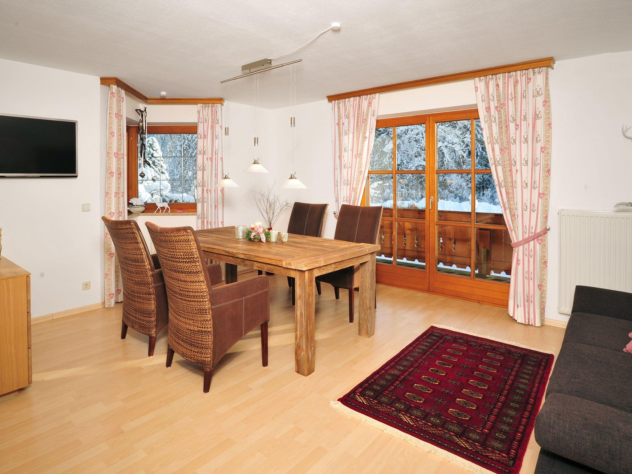Die Ferienwohnung Bär, geeignet für bis zu vier Personen, befindet sich im ersten Stock der ruhigen Siedlung Loferpark am Ufer der Schwarzlofer im schönen Reit im Winkl. Die Wohnung ist hochwertig eingerichtet und sehr gepflegt. Sie verfügt über ein Schlafzimmer mit großem Doppelbett und einem großen Wohnzimmer mit Essbereich. Eine vollausgestattete und moderne Küche gehört hier ebenso dazu wie ein modernes Bad mit Badewanne und Dusche. Zum Entspannen nach einer Wanderung lädt der schöne Südbalkon ein. Auch eine Waschmaschine steht Ihnen im Waschraum des Hauses zur Verfügung.
